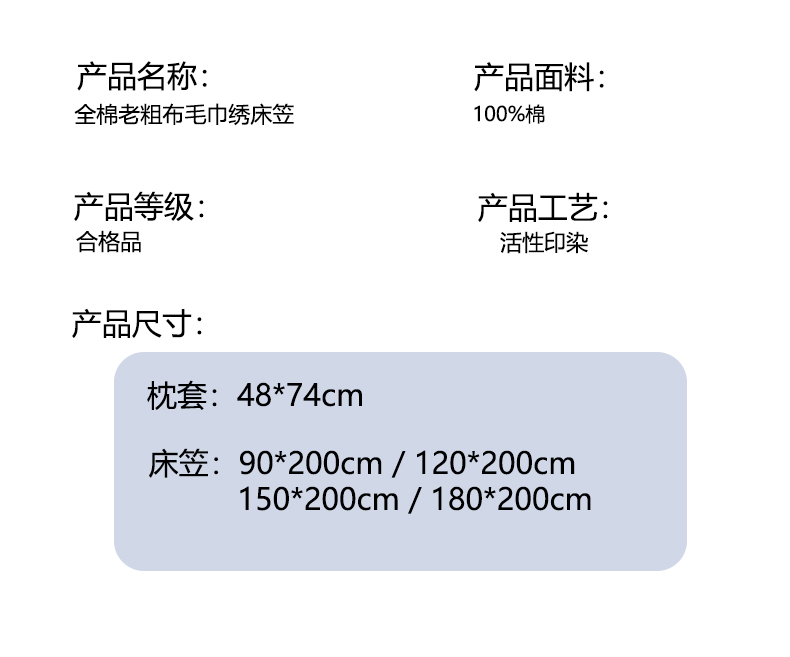 商品名称:沐棉家居 2026新款毛巾绣老粗布全棉纯棉床笠单品床笠单件 洗澡巴拉