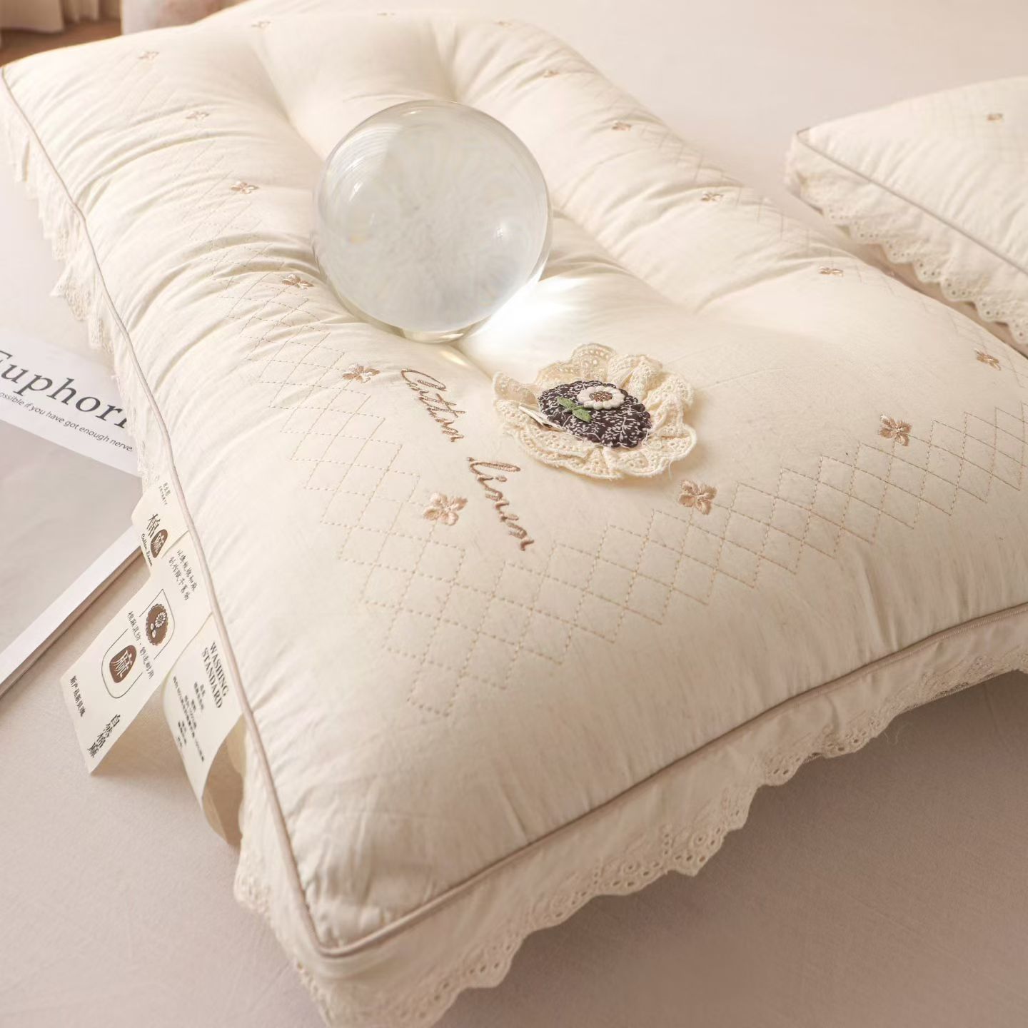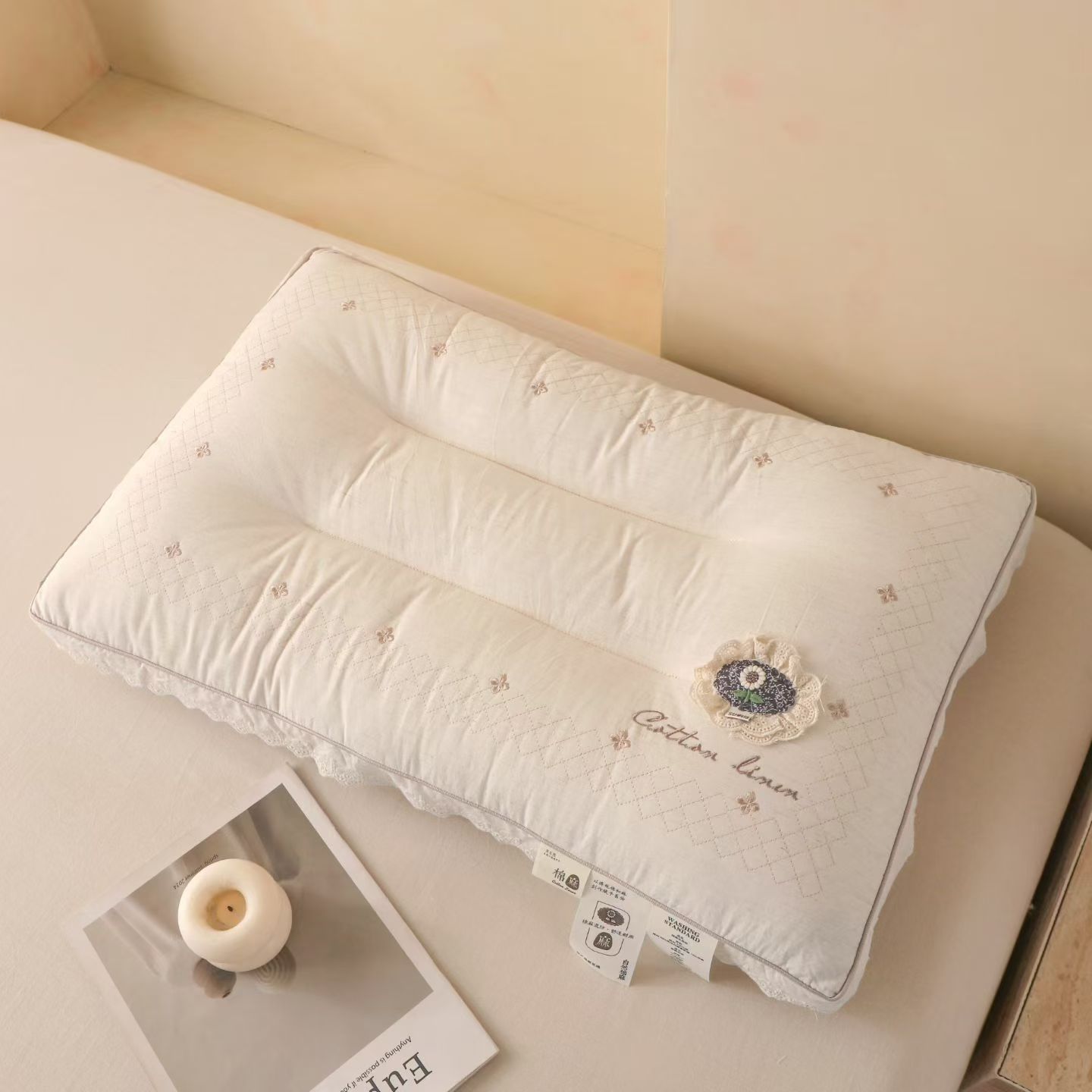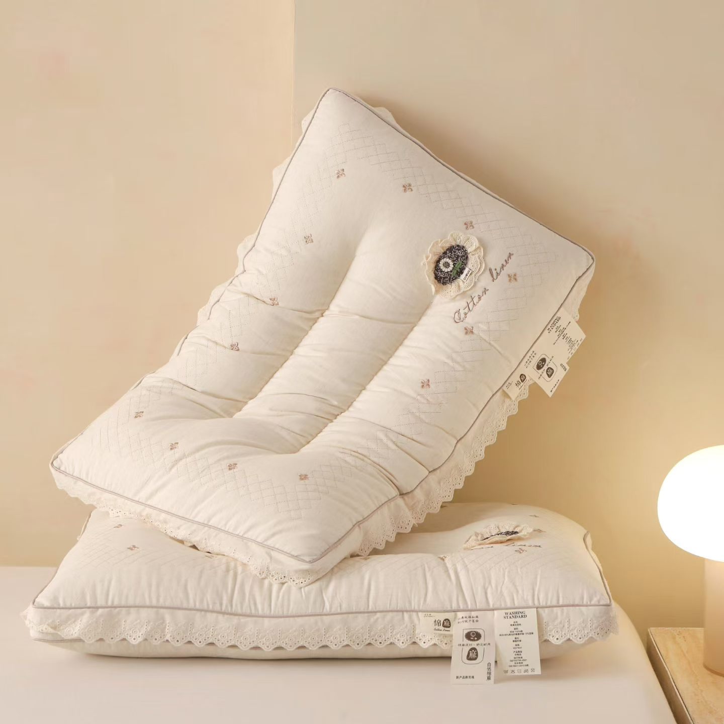(总)棉麻蕾丝护颈枕头 温柔包裹感助眠枕芯云朵触感 睡出好颈椎