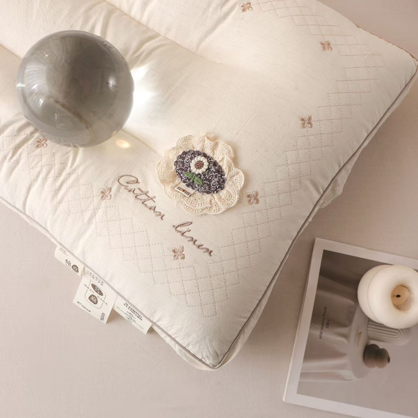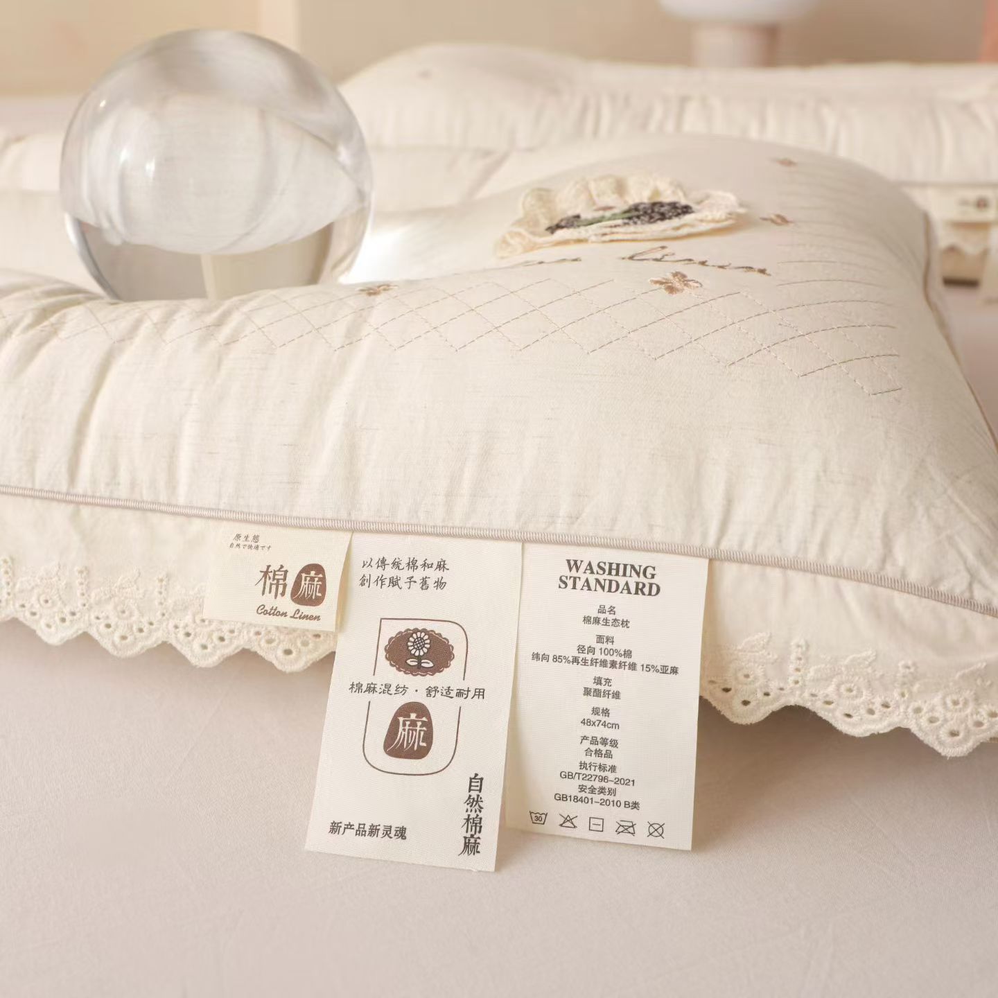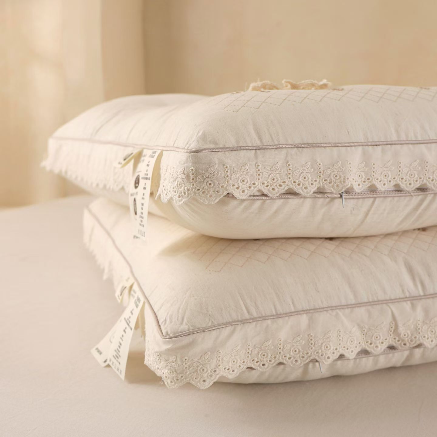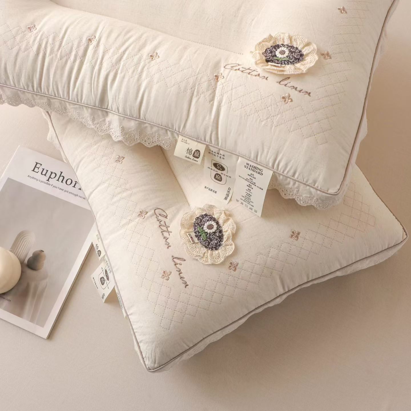 (总)棉麻蕾丝护颈枕头 温柔包裹感助眠枕芯云朵触感 睡出好颈椎