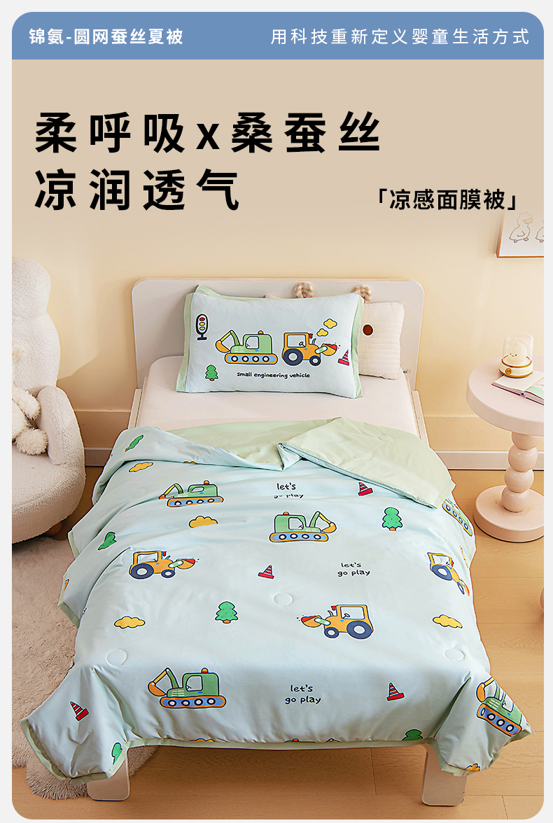 被子 > 夏被 > 御棉坊2026新款A类锦氨数码印花圆网蚕丝儿童夏凉被幼儿园午睡被宝宝夏季空调被薄被子 锦氨-森林工程队