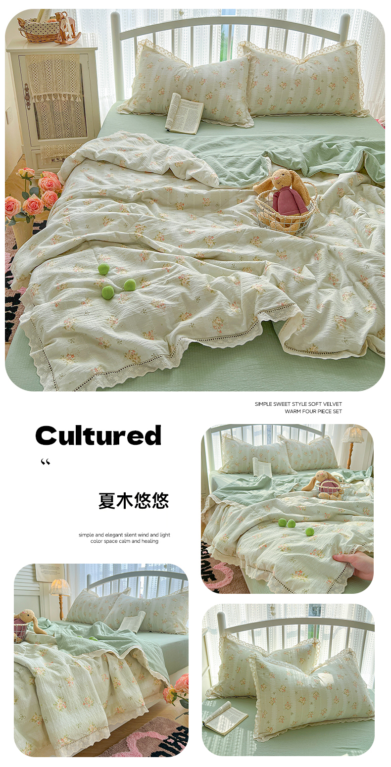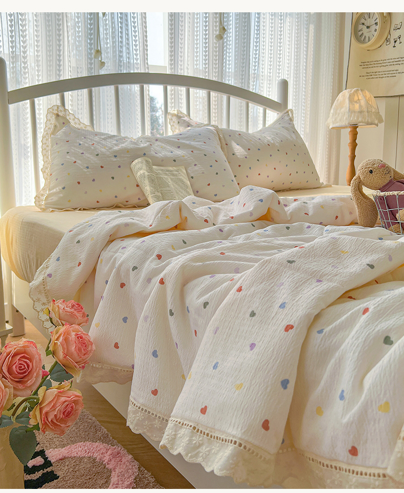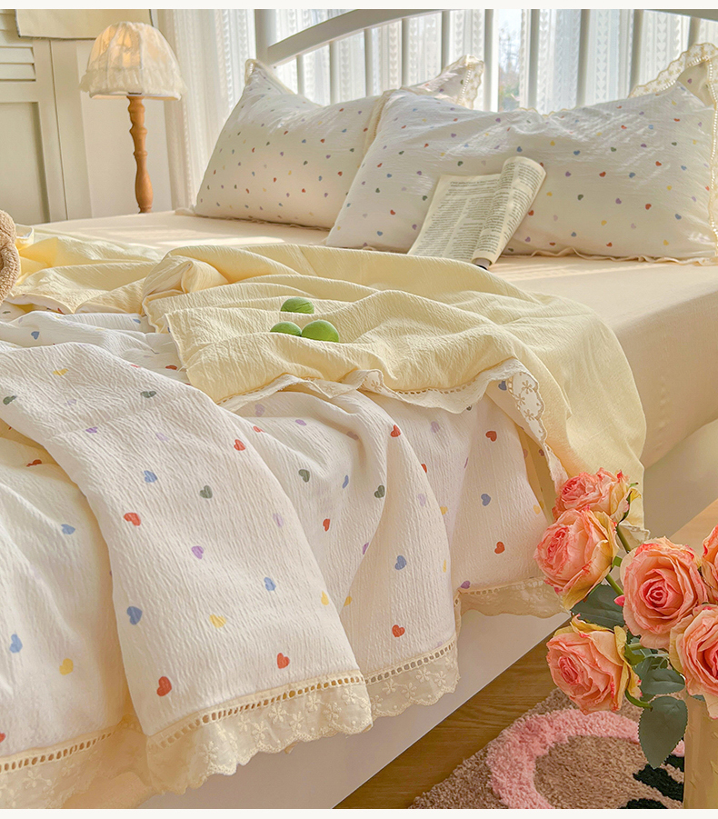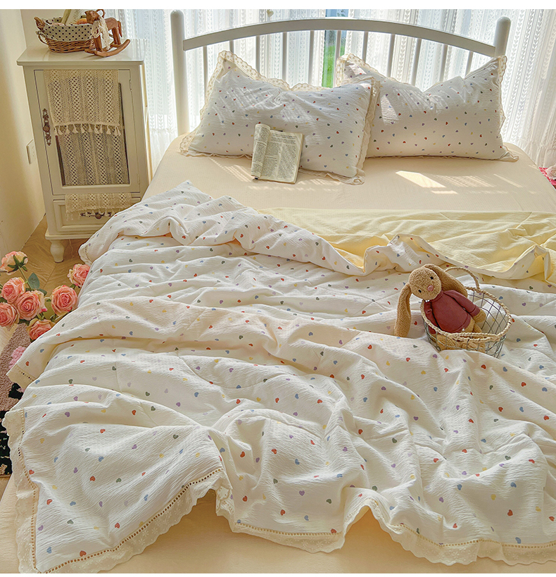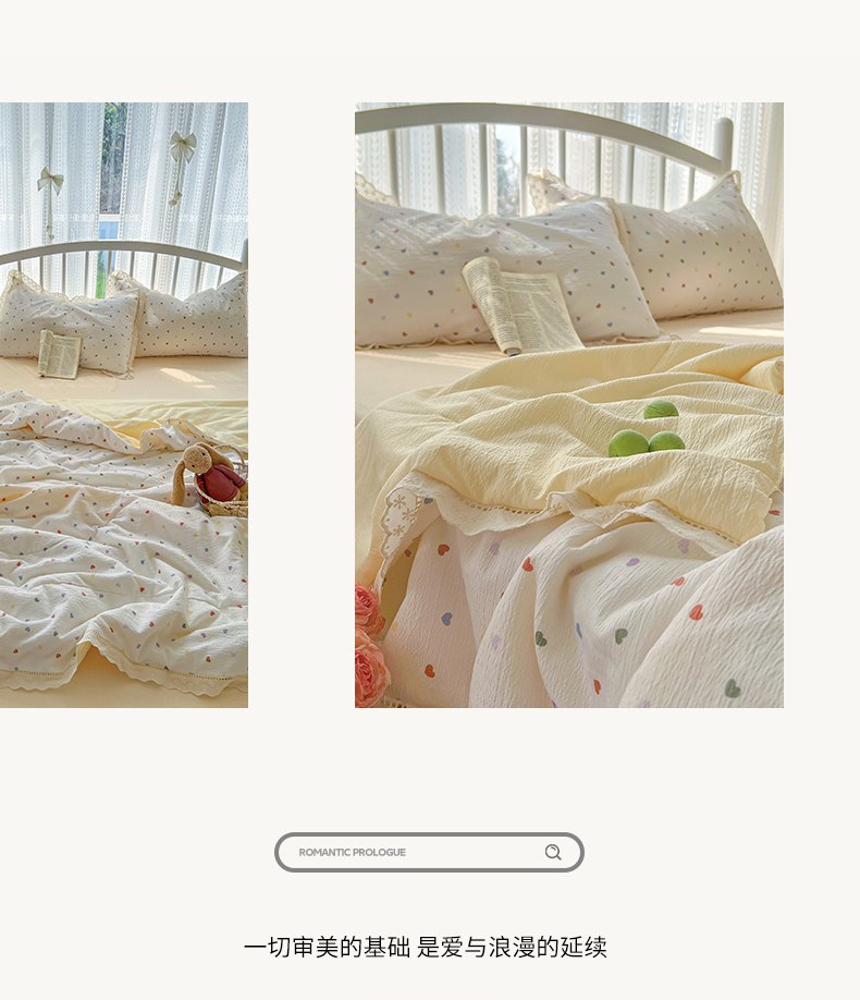 港岛妹妹 2026新款镂空花边夏被 夏被四件套 奶油小爱心