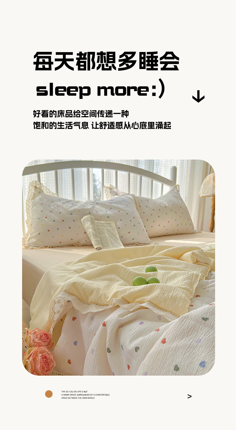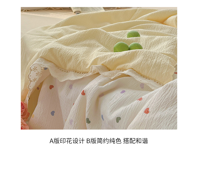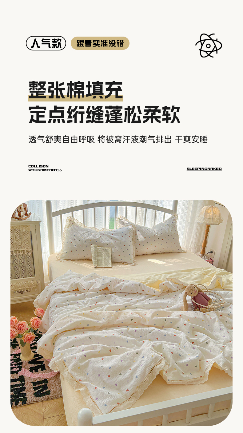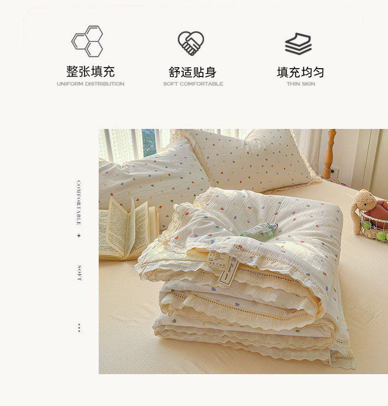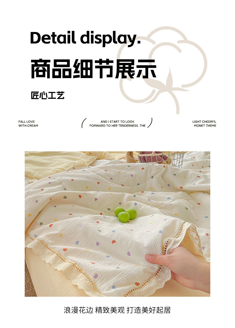 商品名称:港岛妹妹 2026新款镂空花边夏被 夏被四件套 奶油小爱心