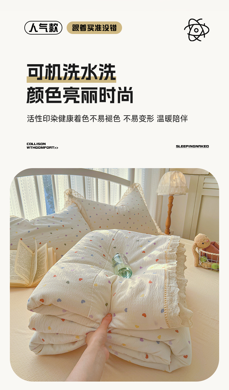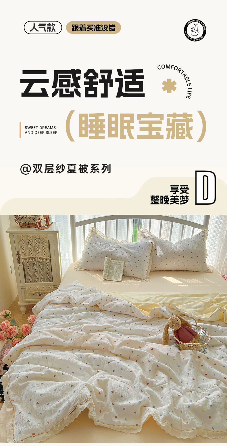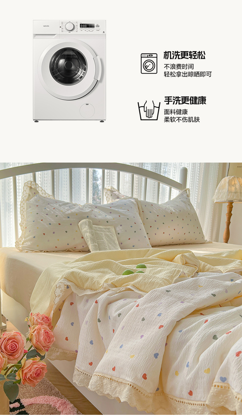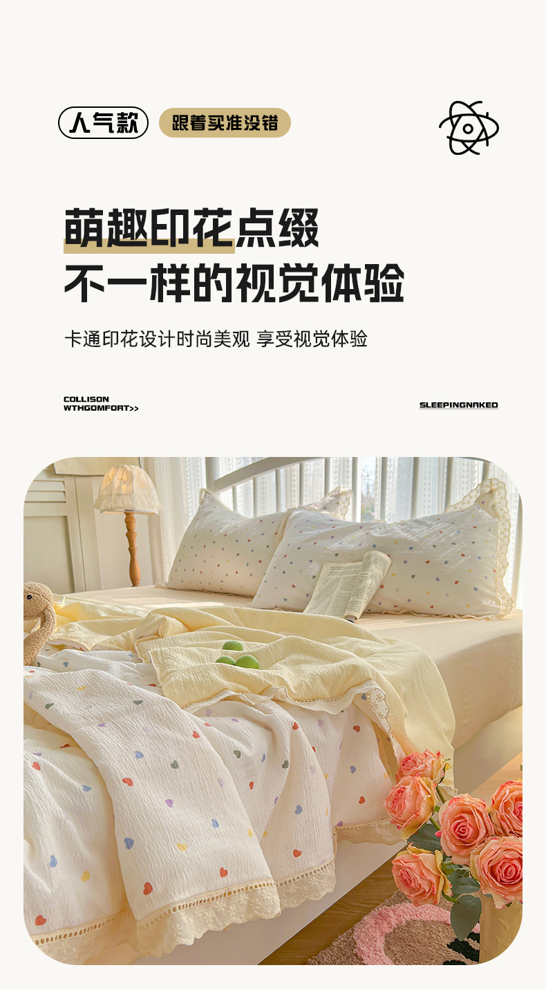 商品名称:港岛妹妹 2026新款镂空花边夏被 夏被四件套 奶油小爱心