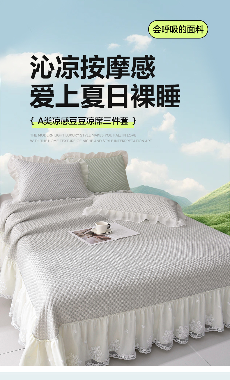 席匠 2026新款A类凉感豆豆凉席席子凉席三件套 灰色