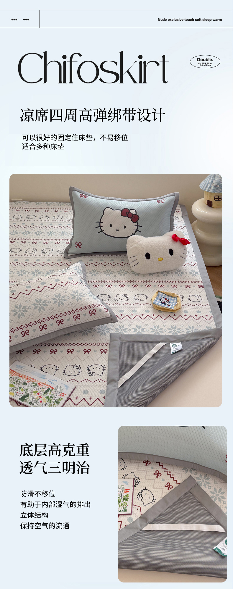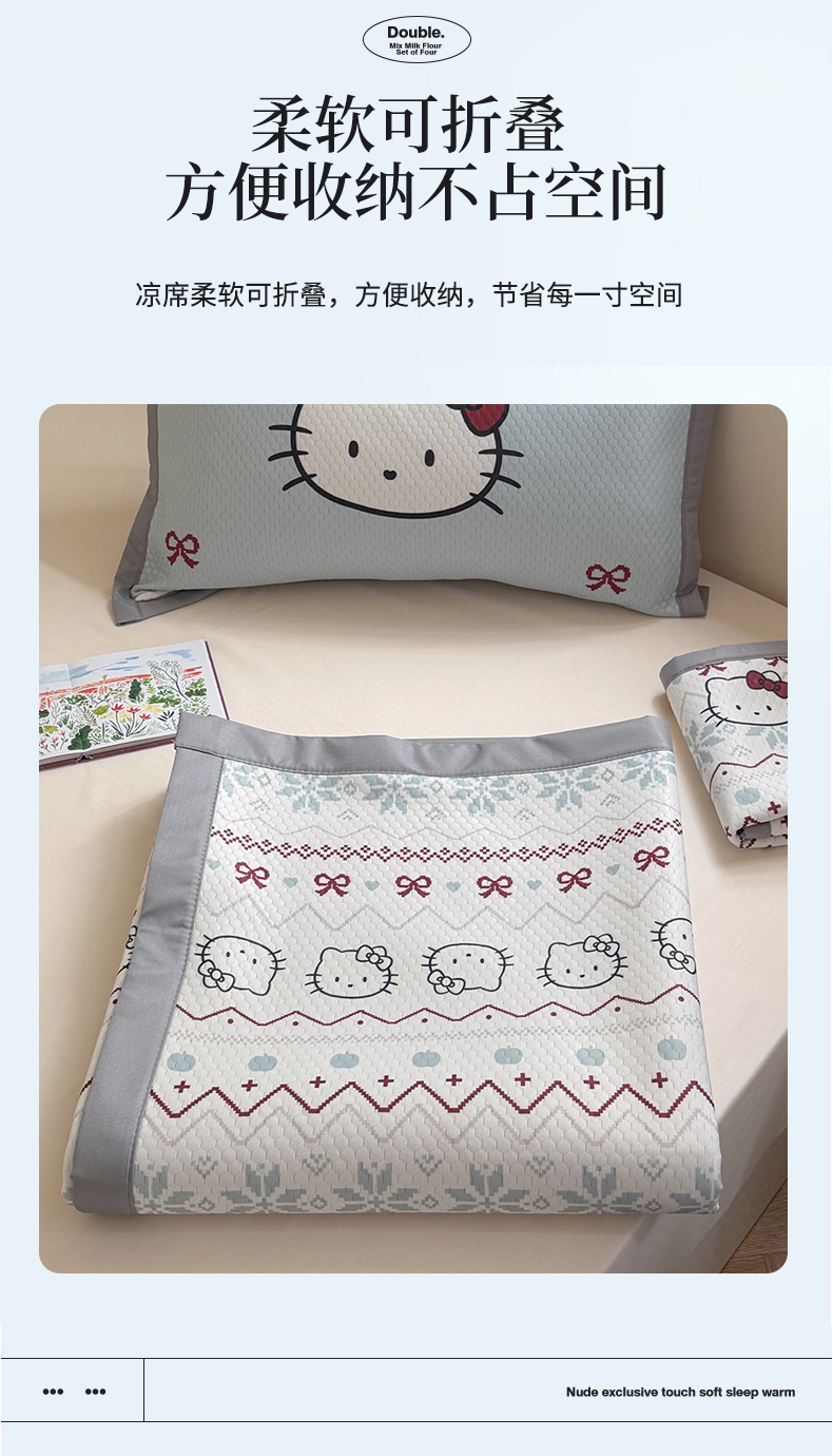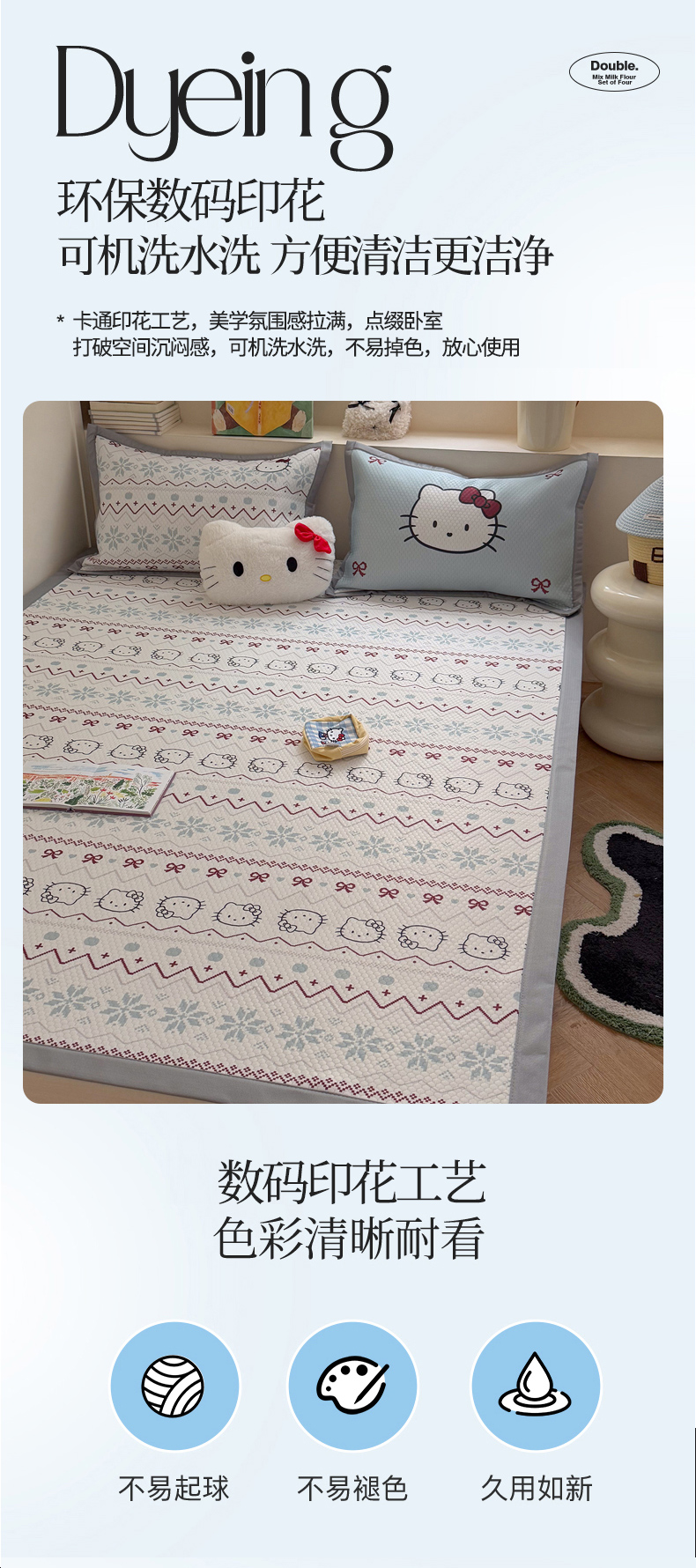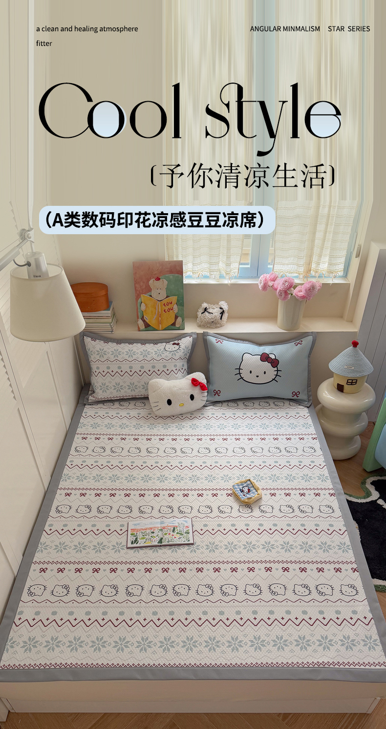 商品名称:Sweet dreams甜梦 2026新款数码印花小板凉感豆豆席 猫猫蝴蝶结