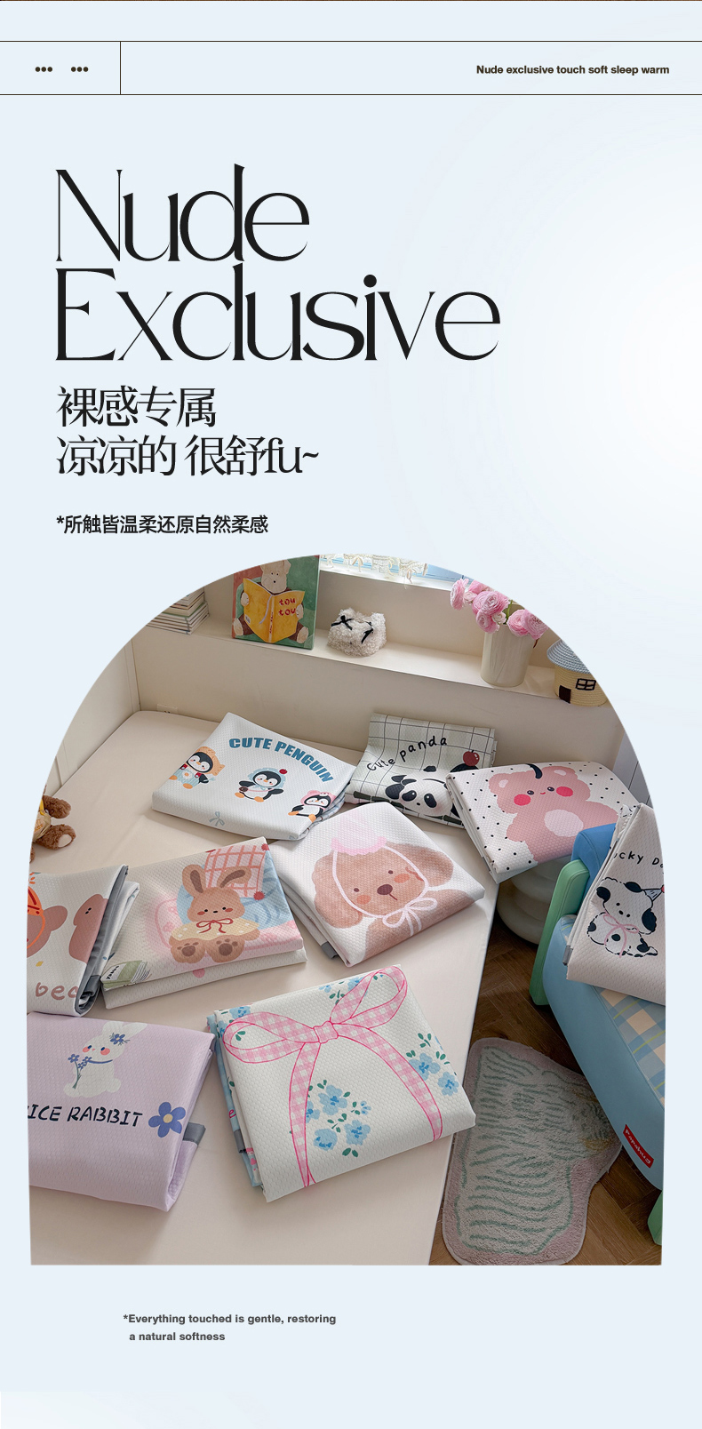 (总)Sweet dreams甜梦 2026新款A类锦氨异性贴布高端豆豆凉席-场景1,抱抱熊,调皮狗,嘎嘎鸭,哈哈蛙,美梦猫