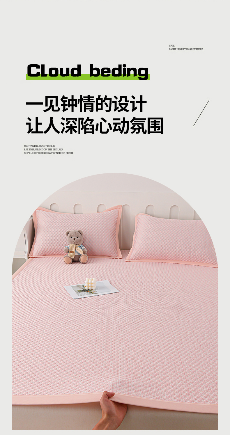 • 91家纺网 家纺一手货源 找家纺 席匠 2026新款冰豆豆床裙纯色款凉席席子凉席三件套 纯色渐变床裙款-粉