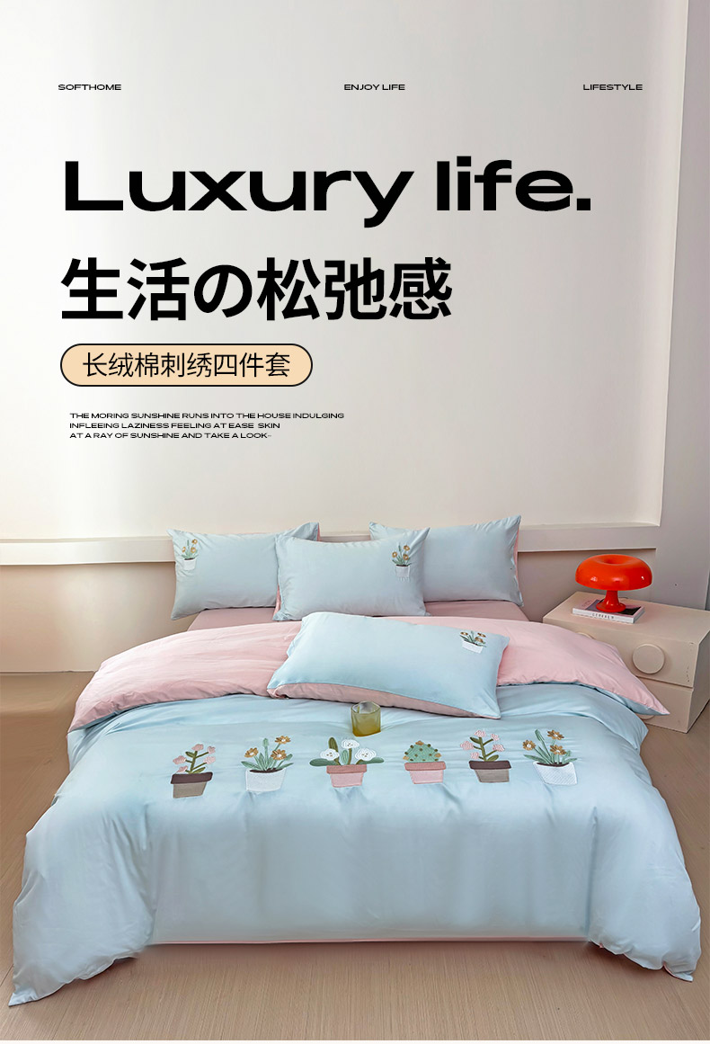 当前位置: 91家纺网 > 商品网购 > 床品套件 > 四件套 > 长绒棉四件套 > 合欢(原天一阁) 2026新款50s双股长绒棉纯棉刺绣四件套礼盒装-秘境花园 秘境花园-水军蓝+粉