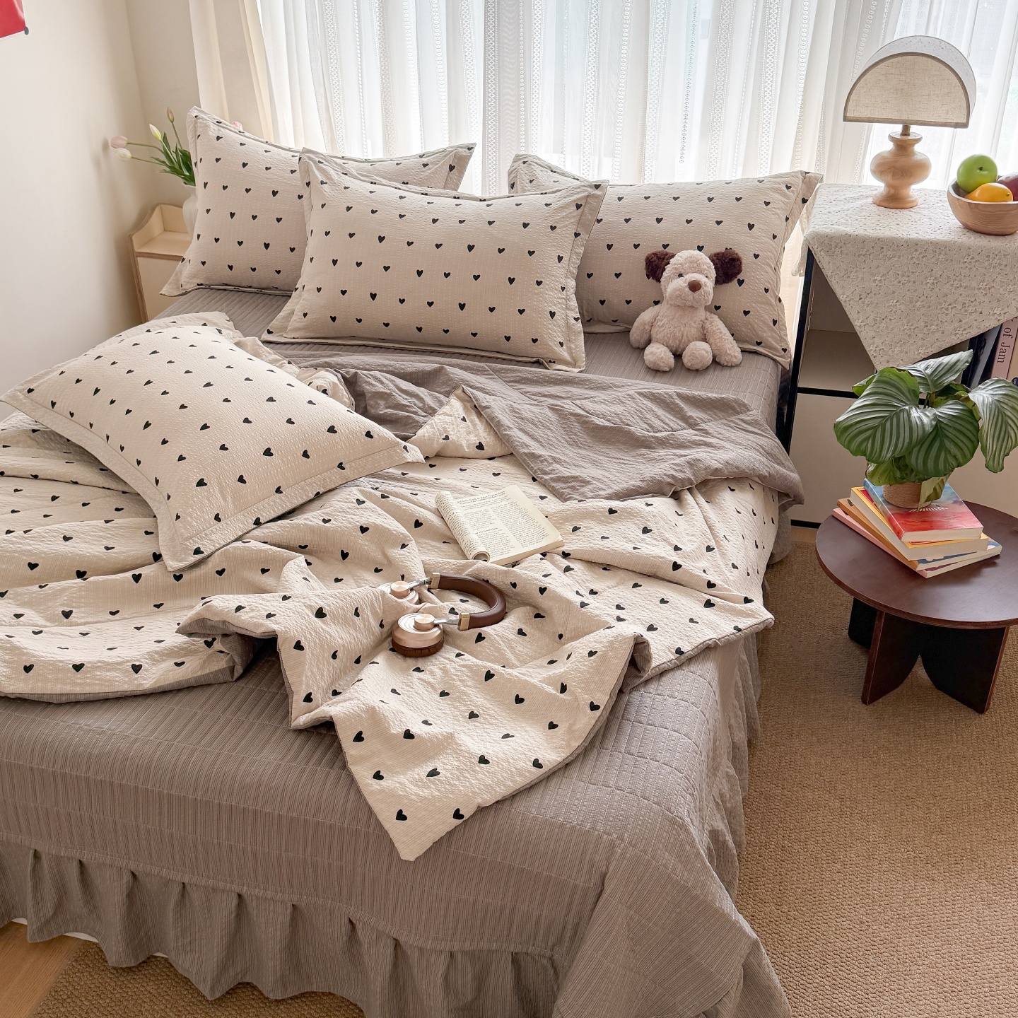 (总)禾沐 2026新款泡芙棉泡芙纱夏被四件套,爱心点点,波点,费尔岛小狗,古典格,红果兔兔,花间娃娃,灰爱心,丽莎,栗色木马纹,蜜桃小兔,描线猫,柔诗意,甜桃心,星芒凯蒂,秀妍,只闻花香,仲夏,组合