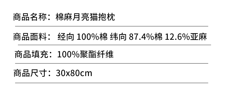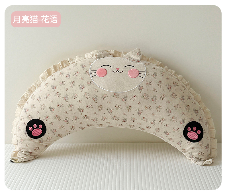 商品名称:蔻眠 多功能月亮猫棉麻大抱枕靠枕卡通枕芯异形枕头 月亮猫-花语