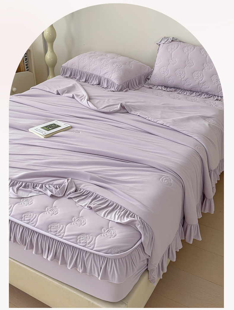(总)雯豆家纺 【10A抗菌】2026新款氨纶凉感丝花边床裙床盖夏季冰感床罩+花边夏被四件套,氨纶花边床裙-香芋紫,氨纶花边床裙-奶黄,氨纶花边床裙-浅粉,氨纶花边床裙-浅灰,氨纶花边床裙-水蓝,组合