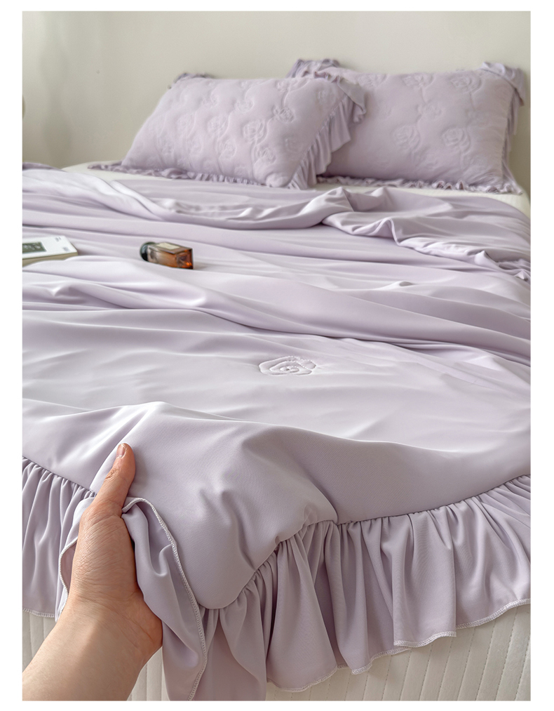 (总)雯豆家纺 【10A抗菌】2026新品氨纶凉感丝花边床笠三件套+花边夏被夏凉被四件套