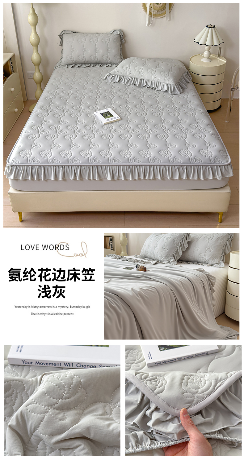 (总)雯豆家纺 【10A抗菌】2026新款氨纶凉感丝花边枕套单只一对装夏季冰丝枕芯保护套,氨纶花边床笠-水蓝,氨纶花边床笠-粉,氨纶花边床笠-奶黄,氨纶花边床笠-浅灰,氨纶花边床笠-香芋紫,组合