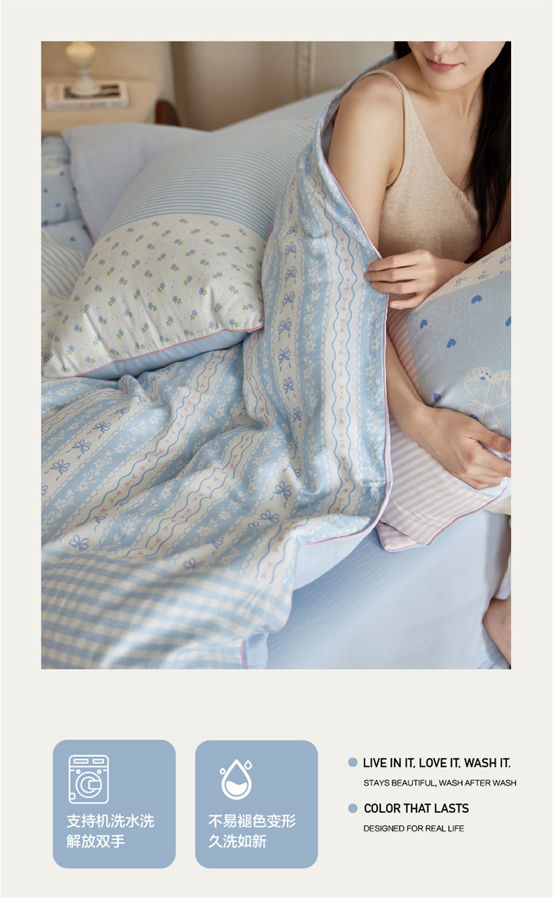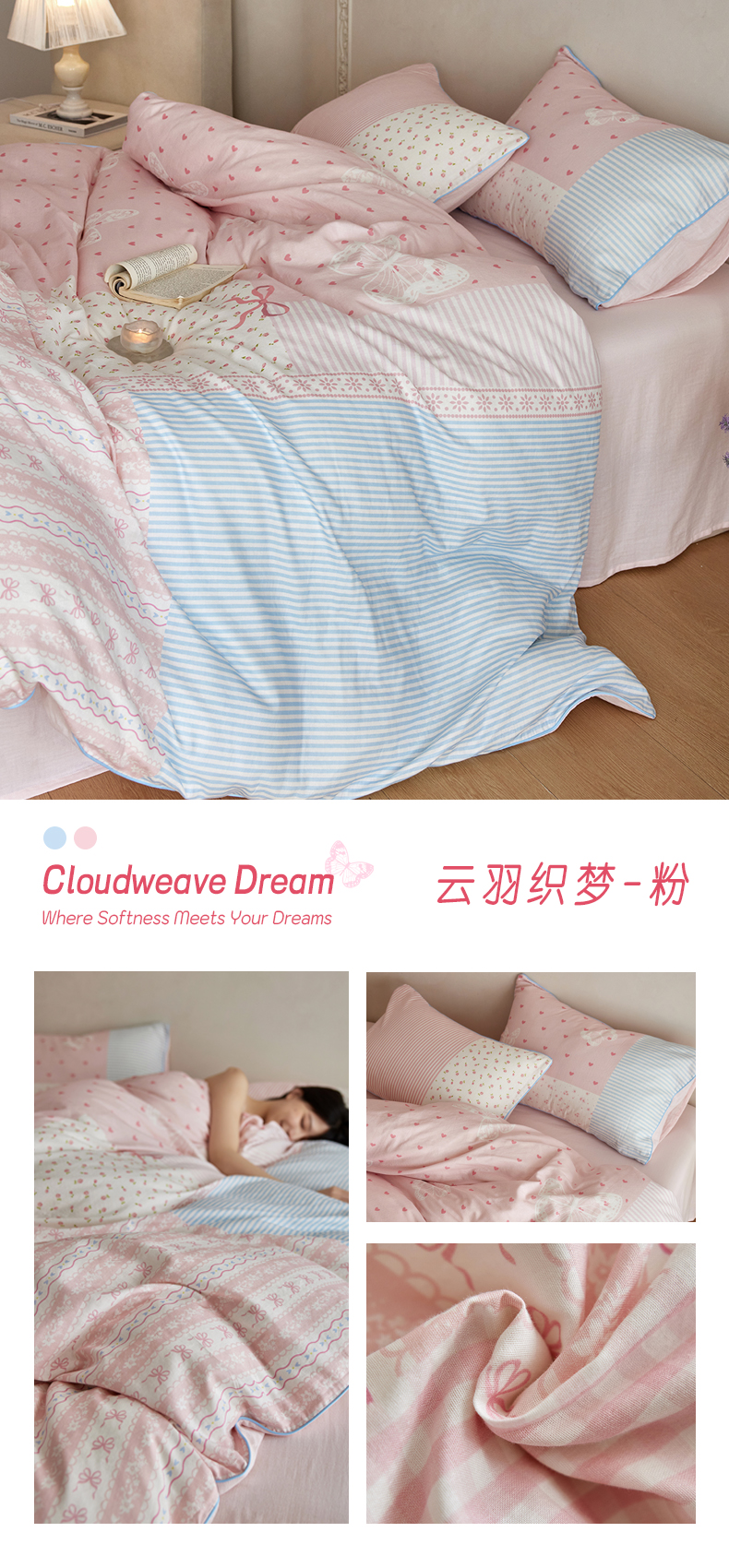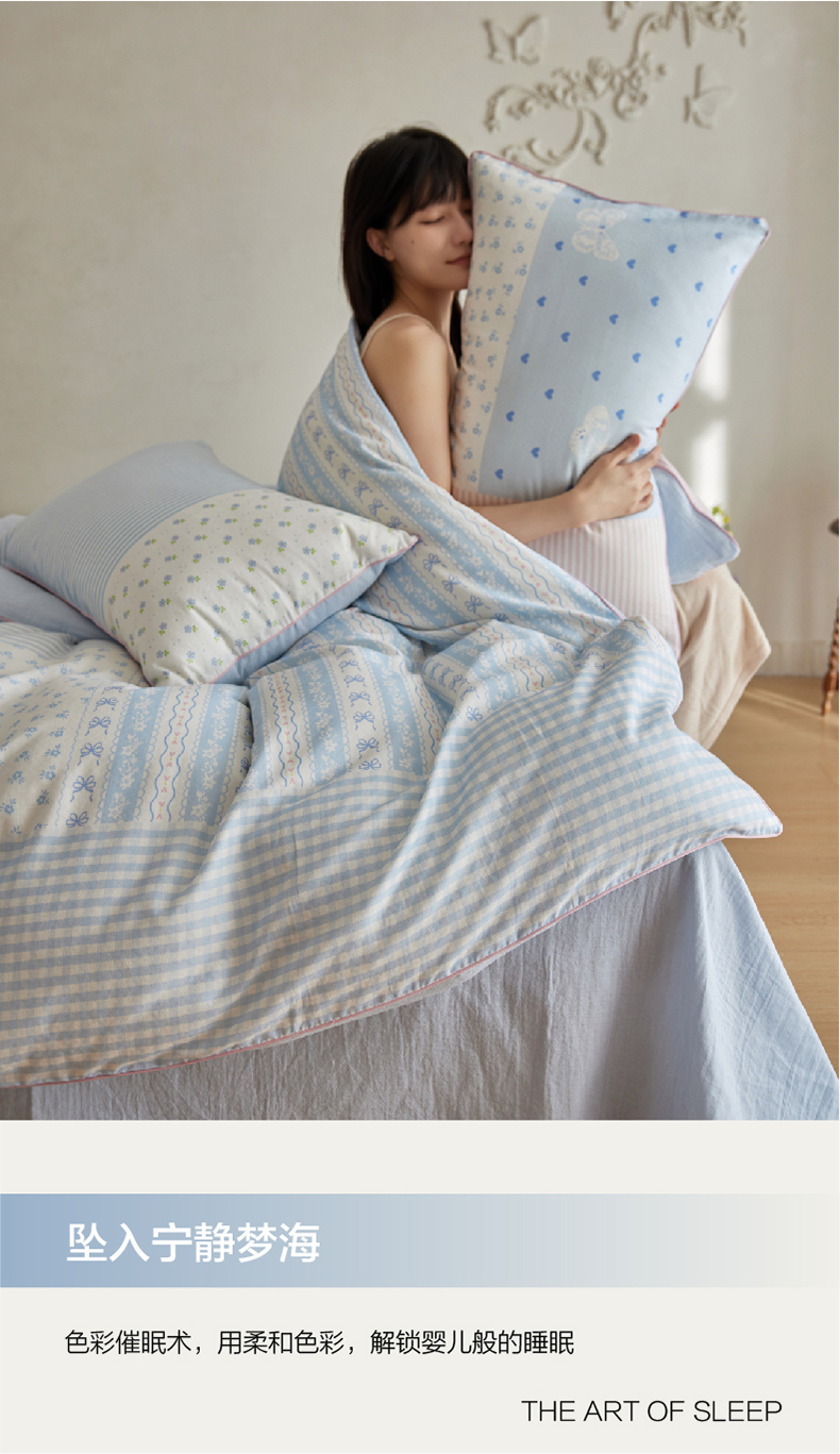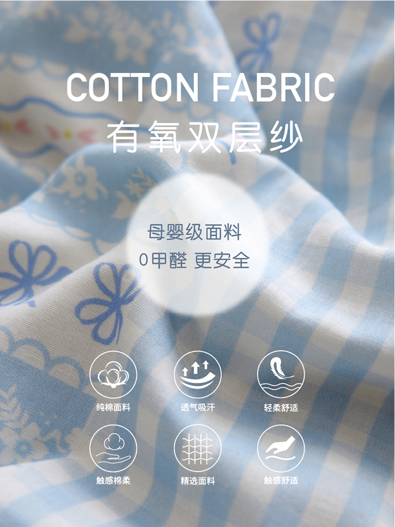 当前位置: 91家纺网 > 商品网购 > 床品套件 > 四件套 > 全棉普通四件套 > 风向标家纺 2026新款A类母婴级纯棉双层纱印花四件套-云羽织梦 云羽织梦—水蓝