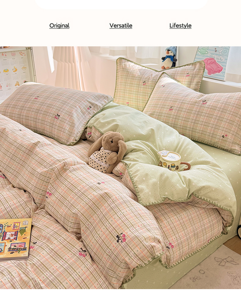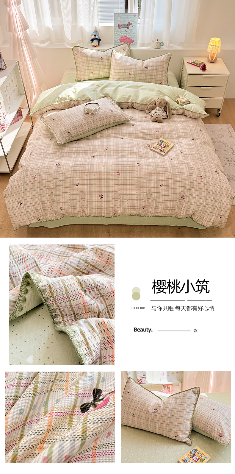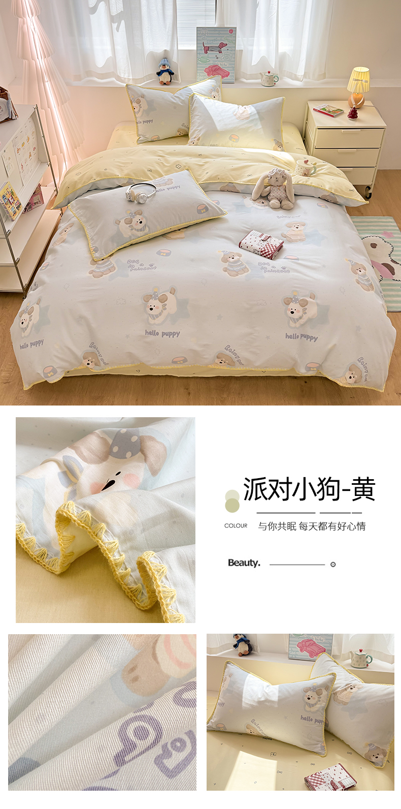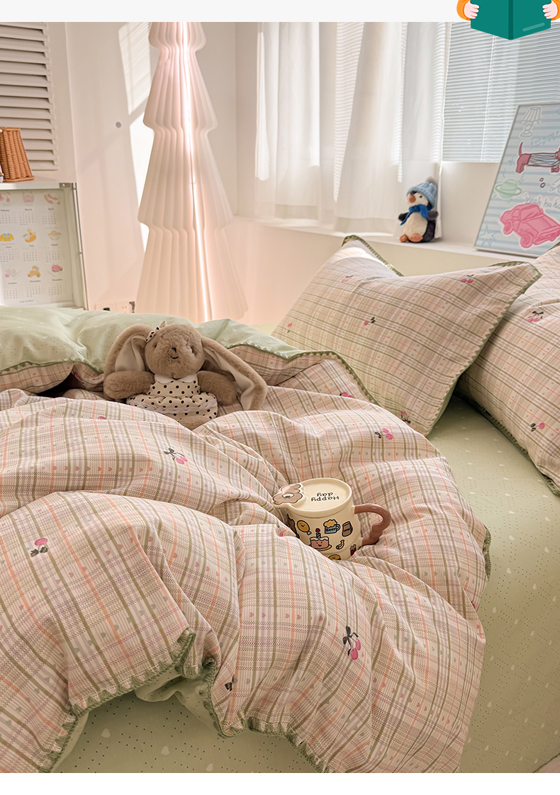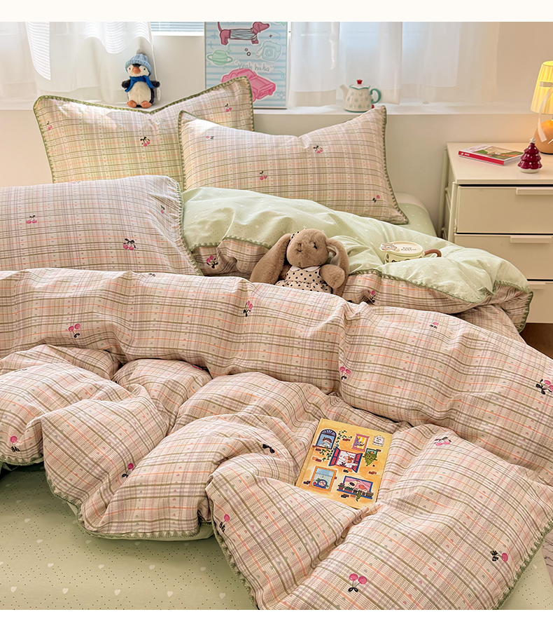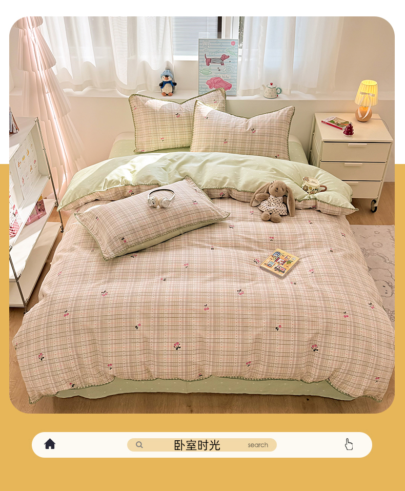 (总)简宜家居(朝初家纺) 2026新款全棉花卉卡通系列贝壳边夏被四件套,七彩星星,彩格爱心,粉格日记,红莓树屋,蓝格日记,萌友聚会,派对小狗-黄,苹果熊格子,星落灰条,星星熊语,樱桃小筑,棕格小熊,Nice狗狗-兰