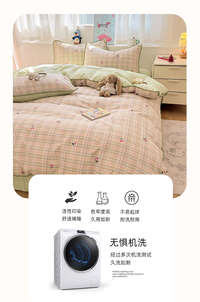 简宜2023新款13070纯棉全棉40支斜纹卡通小清新学生三件套四件套,花园兔,紫葡仙子,倩影粉,hello 萌熊,嘟嘟小车,简笔画,开心小黄鸭,梦幻城堡,浓情爱意
