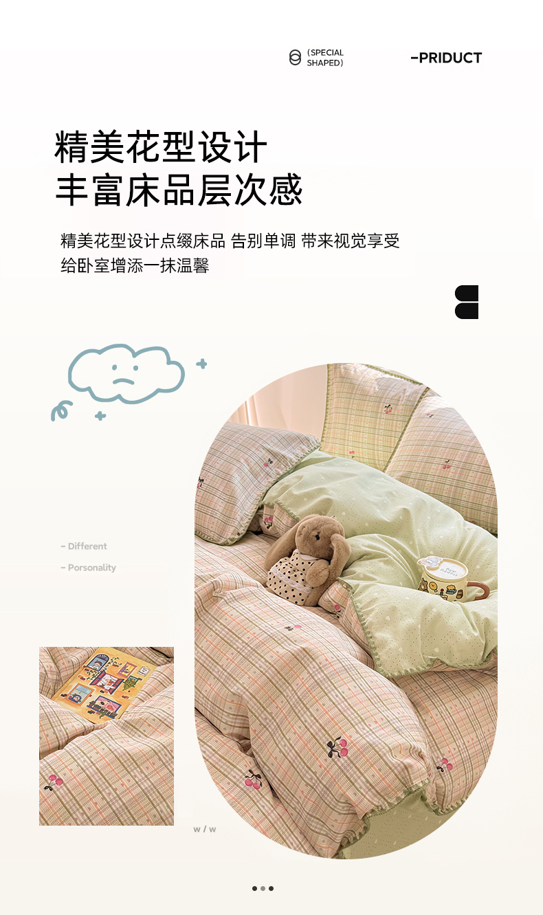 商品名称:(总)简宜家居(朝初家纺) 2026新款贝壳边卡通可爱纯棉全棉四件套