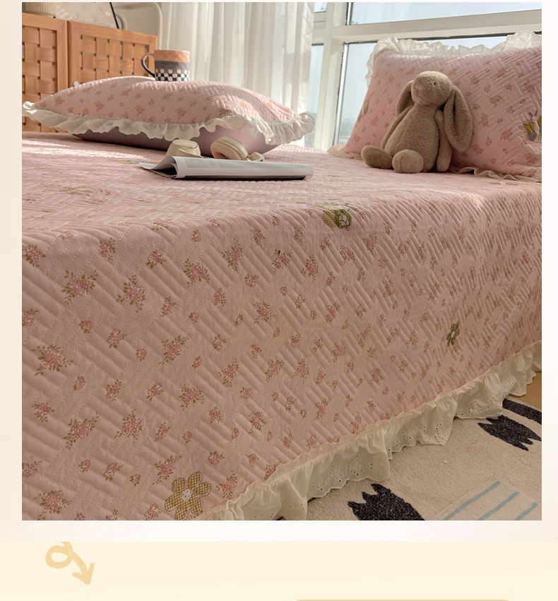 爱彼家纺 2026新款印花泡芙棉花边床盖三件套-泡芙床盖 花边-温馨时光
