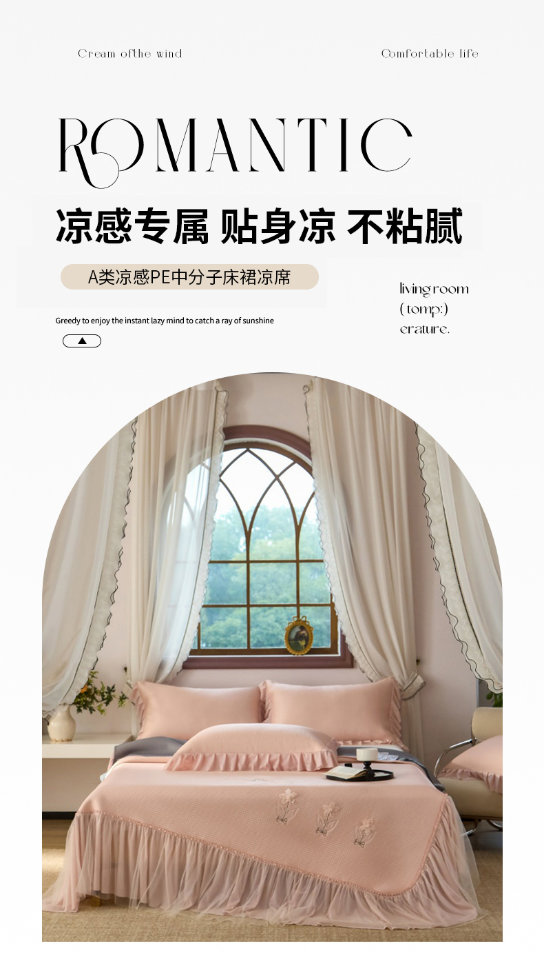 (总)金绣美居 2026新款PE高分子凉感席聚乙烯冰感床裙款凉席三件套-韩式系列,韩恋,花朝,棠梨,星落,迎风,郁香