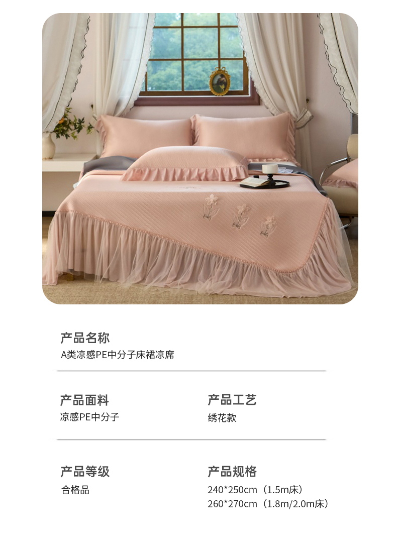 商品名称:金绣美居 2026春夏新款绣花款床裙凉席席子空调软席三件套-清裳 清裳-粉色
