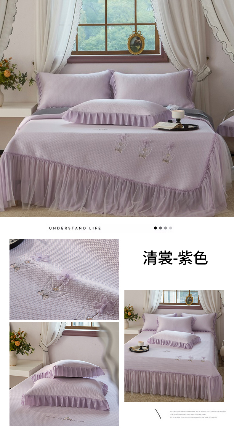 (总)金绣美居 2026春夏新款绣花款床裙凉席席子空调软席三件套-清裳,清裳-粉色,清裳-蓝色,清裳-绿色,清裳-紫色
