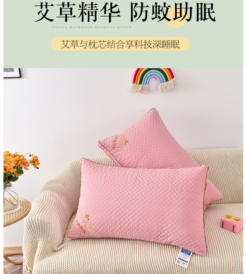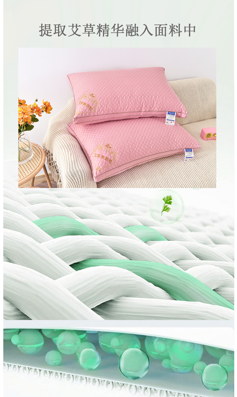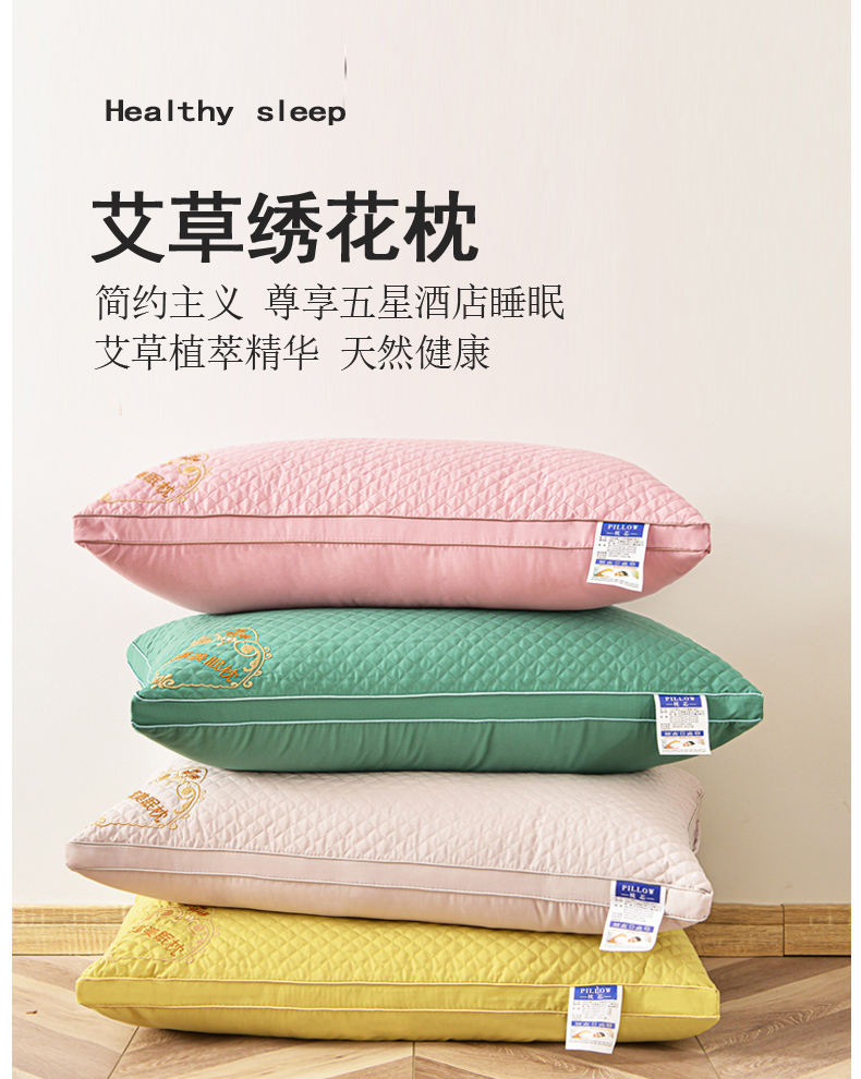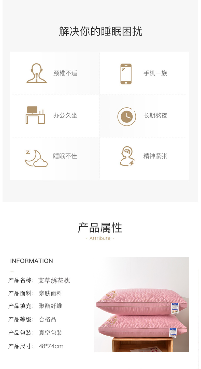 商品名称:兴丝露枕芯 立体艾草绣花枕 双边立体枕芯 羽丝枕头
