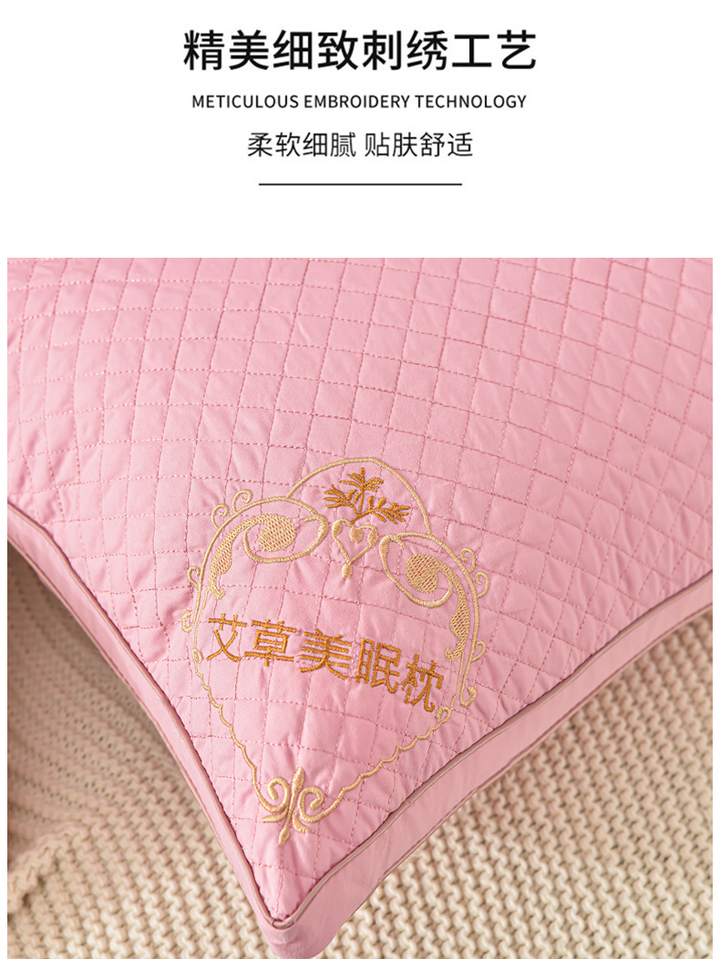 兴丝露枕芯 立体艾草绣花枕 双边立体枕芯 羽丝枕头