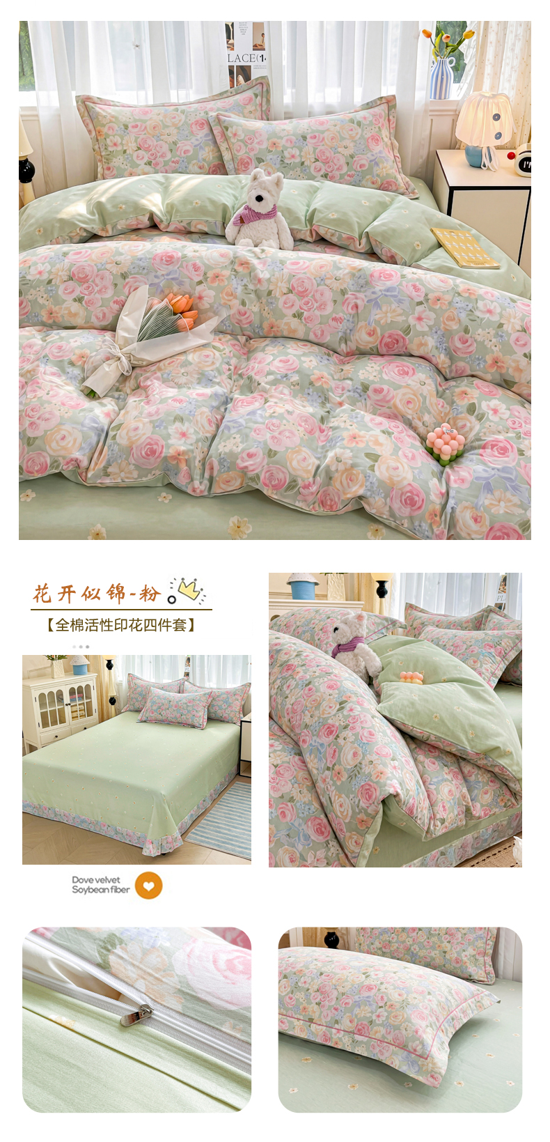 (总)美织缘家纺 2026直播爆款一字绣吊边床单款纯棉全棉四件套印花百分百(喷气高品质),艾美-粉,爱丽丝-蓝,初享时光-咖,春茶弥香-桔,春之序曲-粉,粉黛花园-米,花开似锦-粉,浣溪沙-粉,简爱-米,江南小调-绿,洛羽纷飞-咖,皮皮熊-蓝,浅影-蓝,俏皮狗-蓝,田园诗篇-米,甜梦精灵-米,小苹果-绿,嫣然花开-米,叶缦-蓝,依恋花韵-米