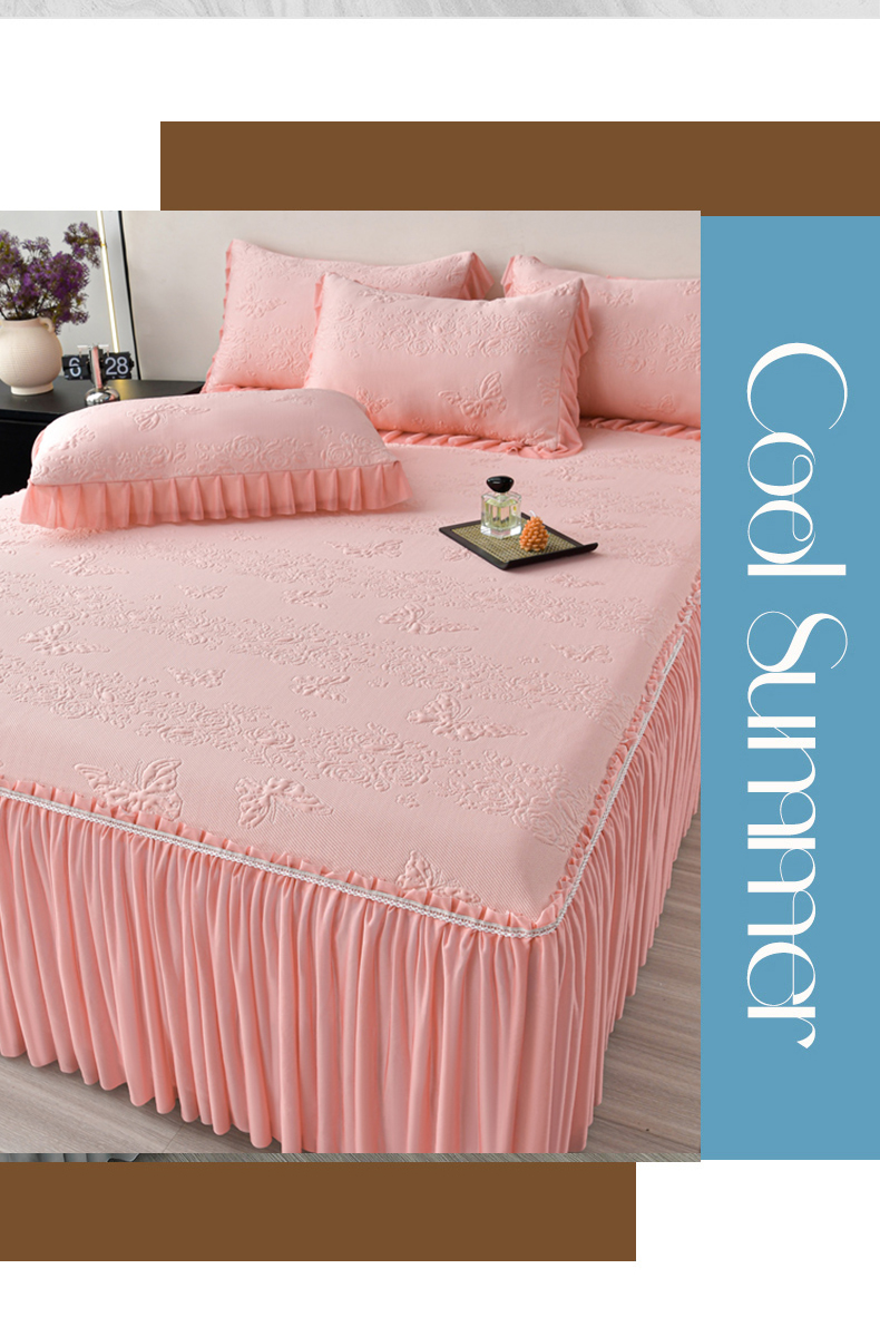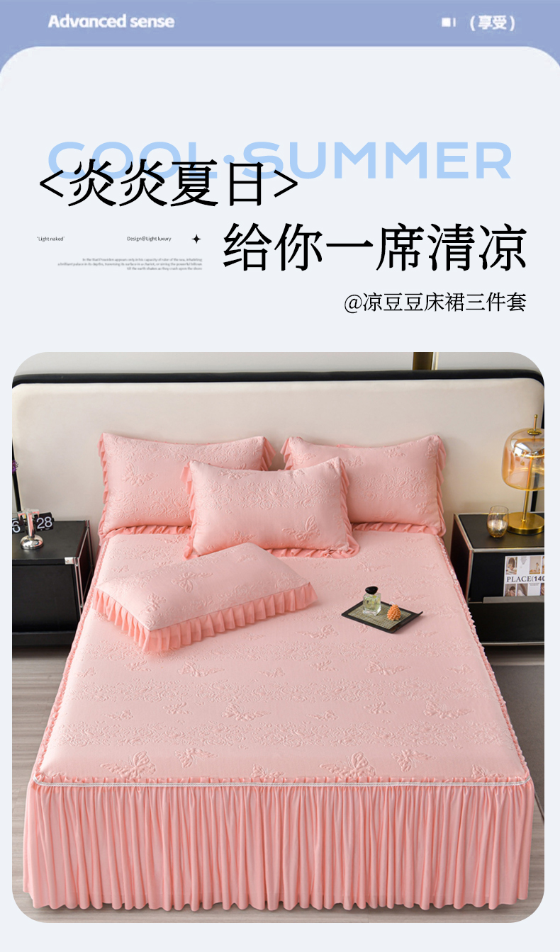 星窝家纺 2026新款冰豆豆床裙款凉席 粉蝶寻香