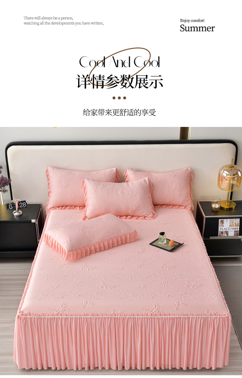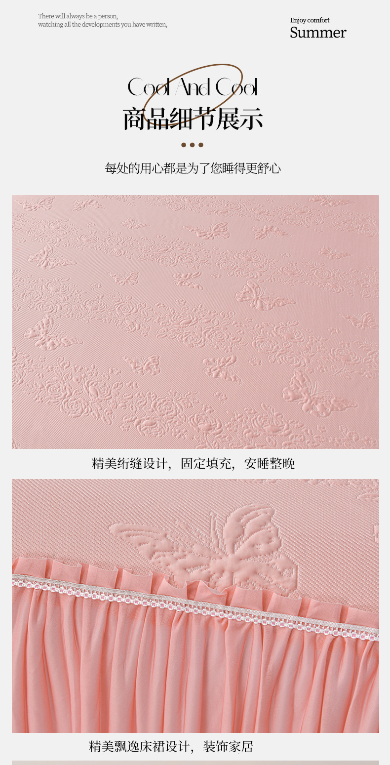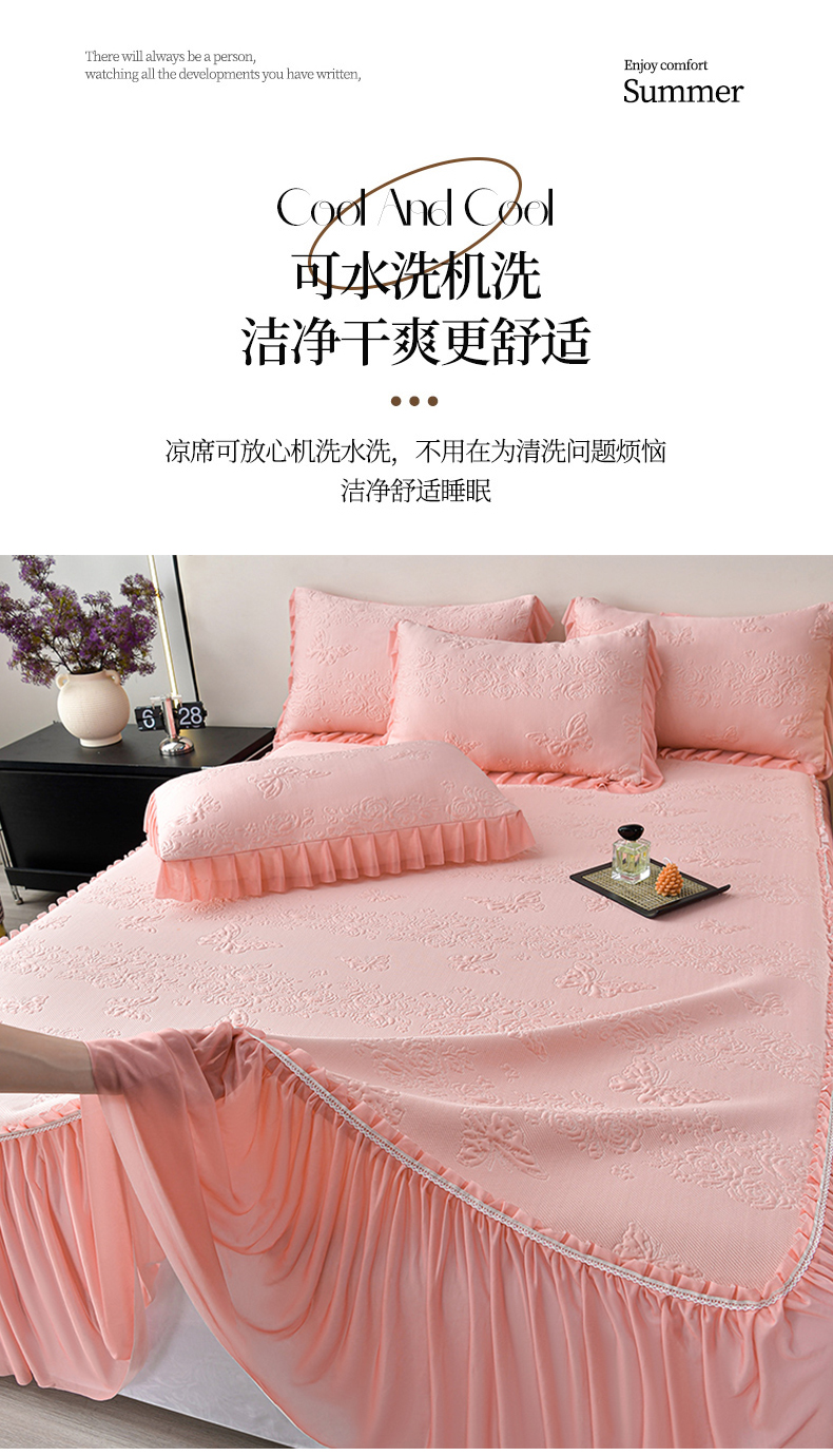 商品名称:星窝家纺 2026新款冰豆豆床裙款凉席 粉蝶寻香