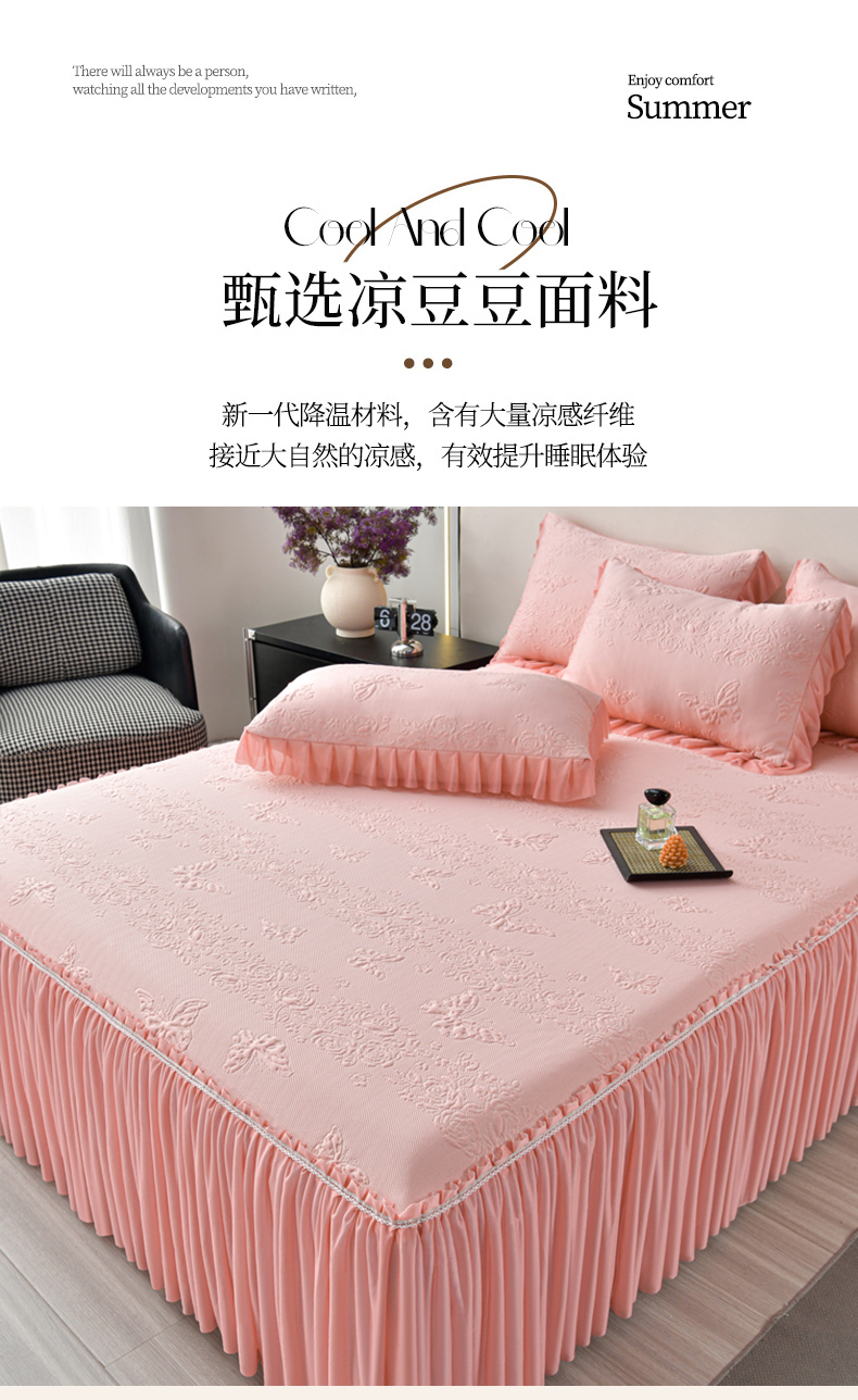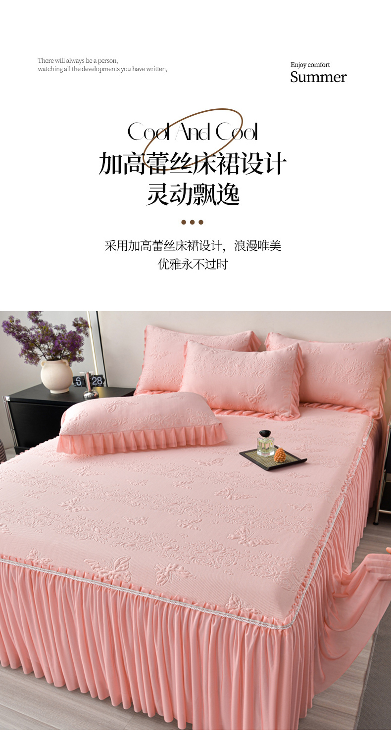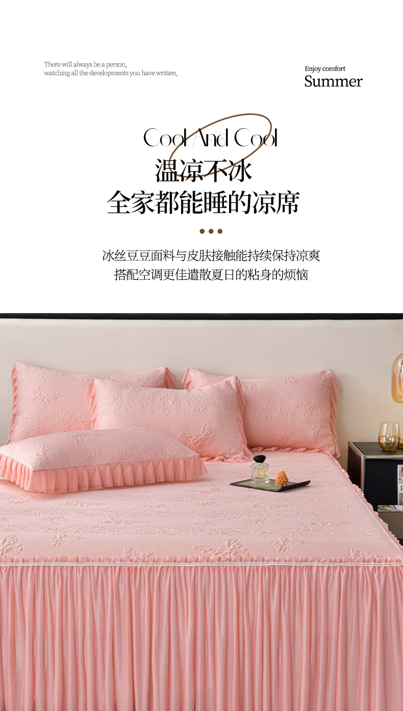 商品名称:星窝家纺 2026新款冰豆豆床裙款凉席 粉蝶寻香