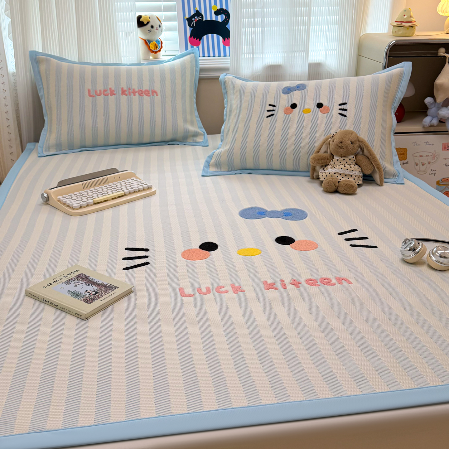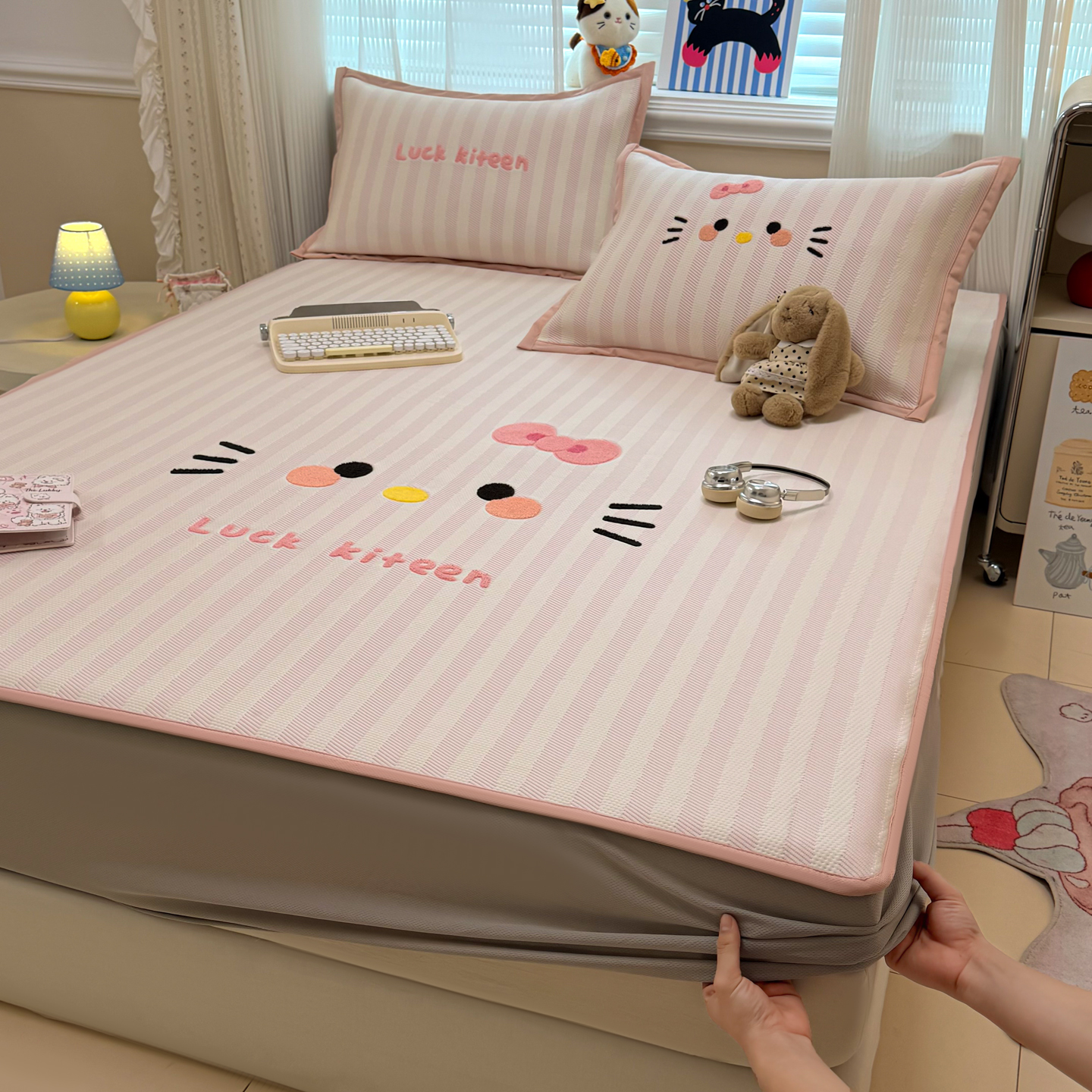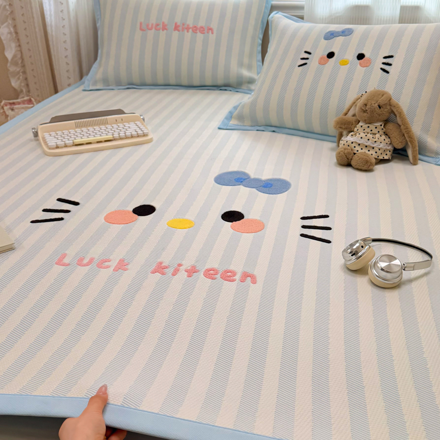 懒猫家纺 2026新款好运猫毛巾绣PE凉感中分子床席床笠凉席席子 芭乐-床笠款