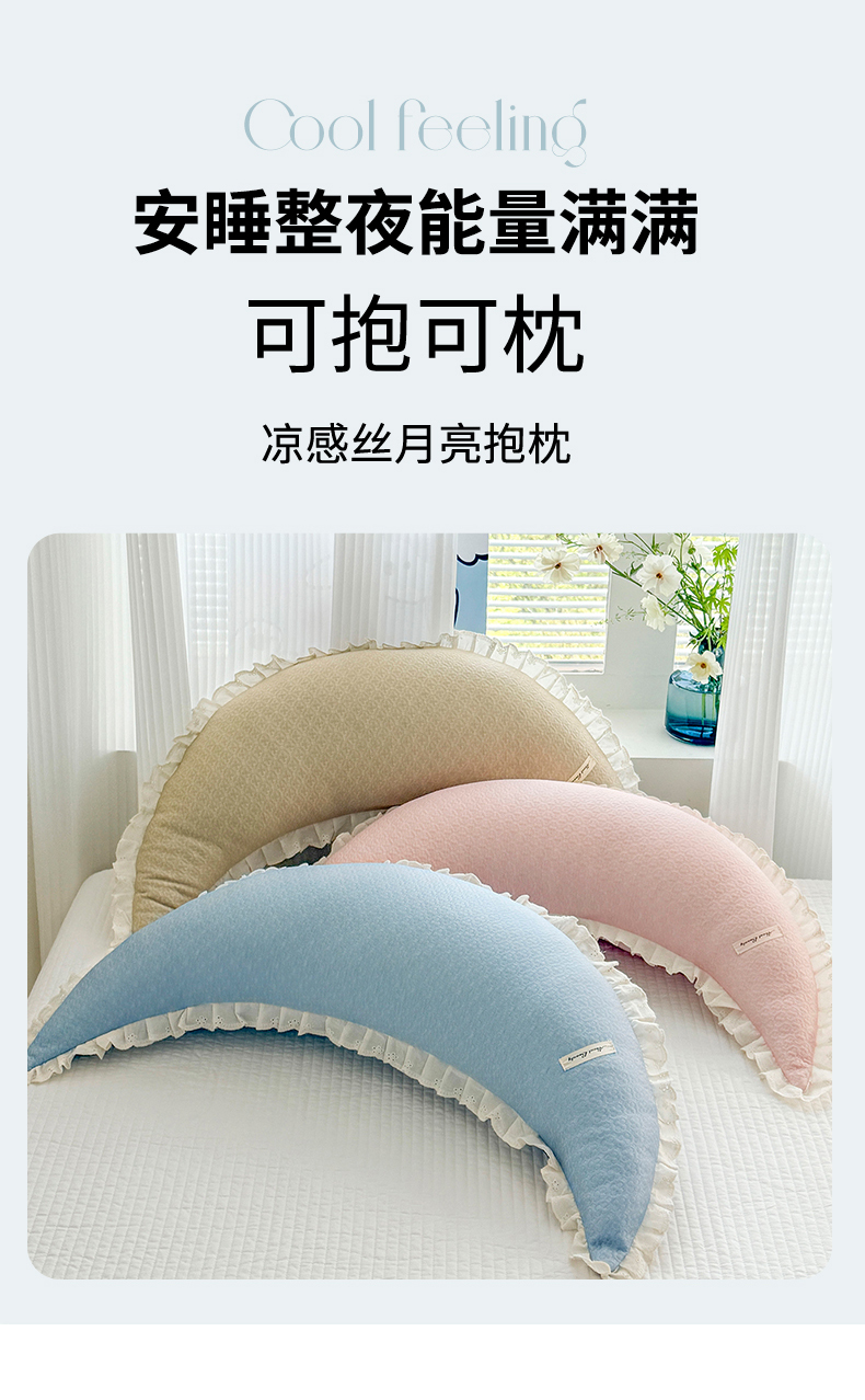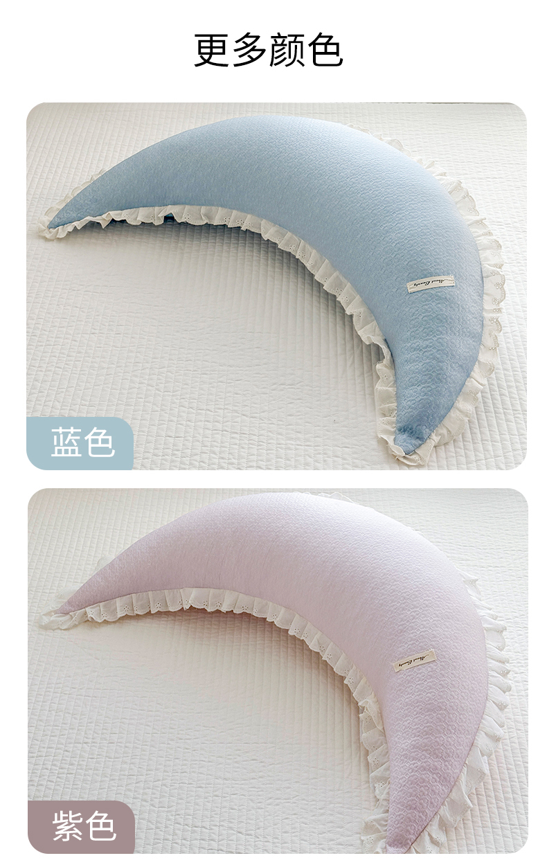 (总)蔻眠 凉感丝花边款月亮长抱枕夹腿抱枕凉豆豆枕芯多功能枕头,凉感丝月亮-蓝色,主图,凉感丝月亮-紫色,凉感丝月亮-卡其,凉感丝月亮-粉色,凉感丝月亮-灰色