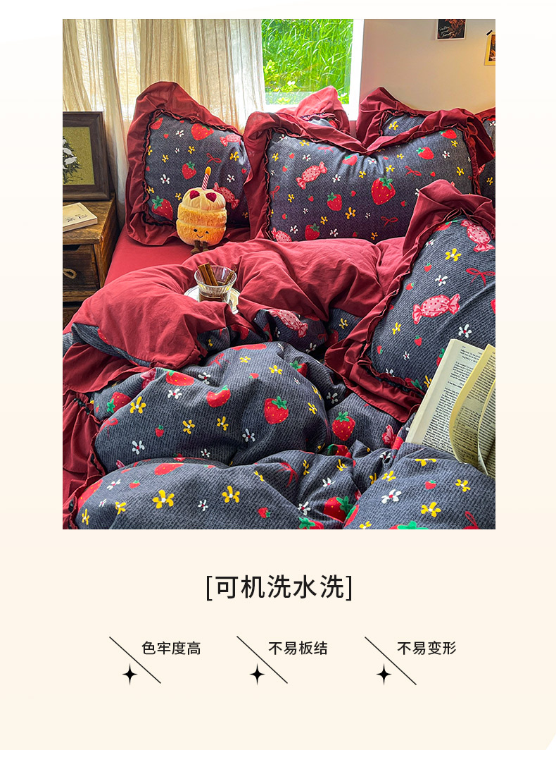 当前位置: 91家纺网 > 商品网购 > 床品套件 > 四件套 > 普通磨毛四件套 > 花伞家居 2026新款韩系大花边加厚磨毛四件套含买家秀 韩版-红冕