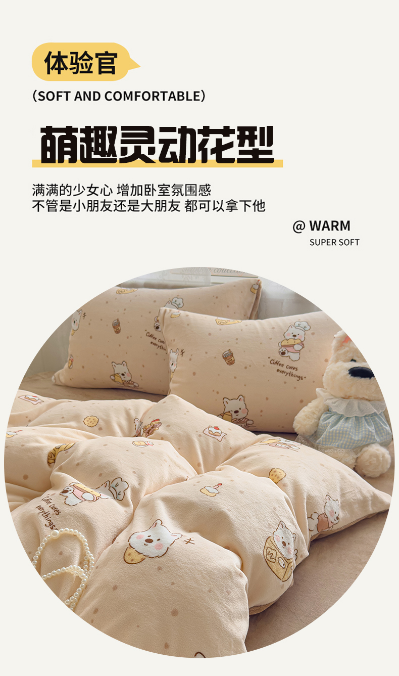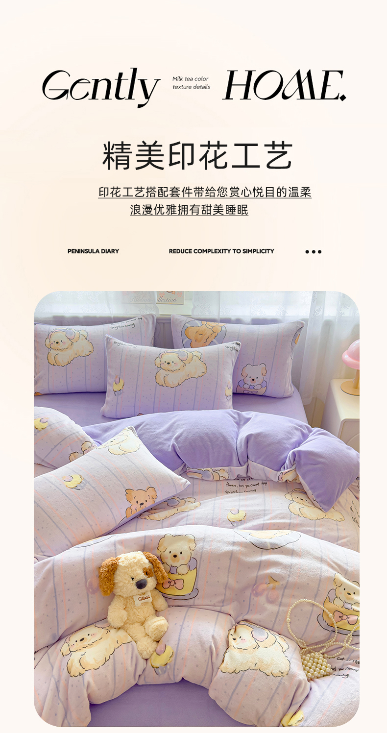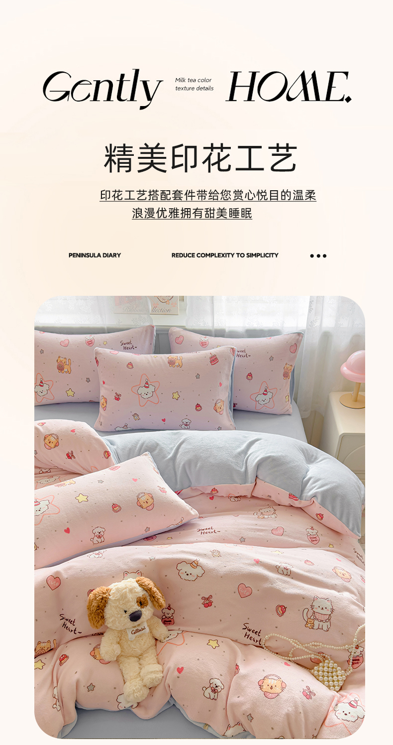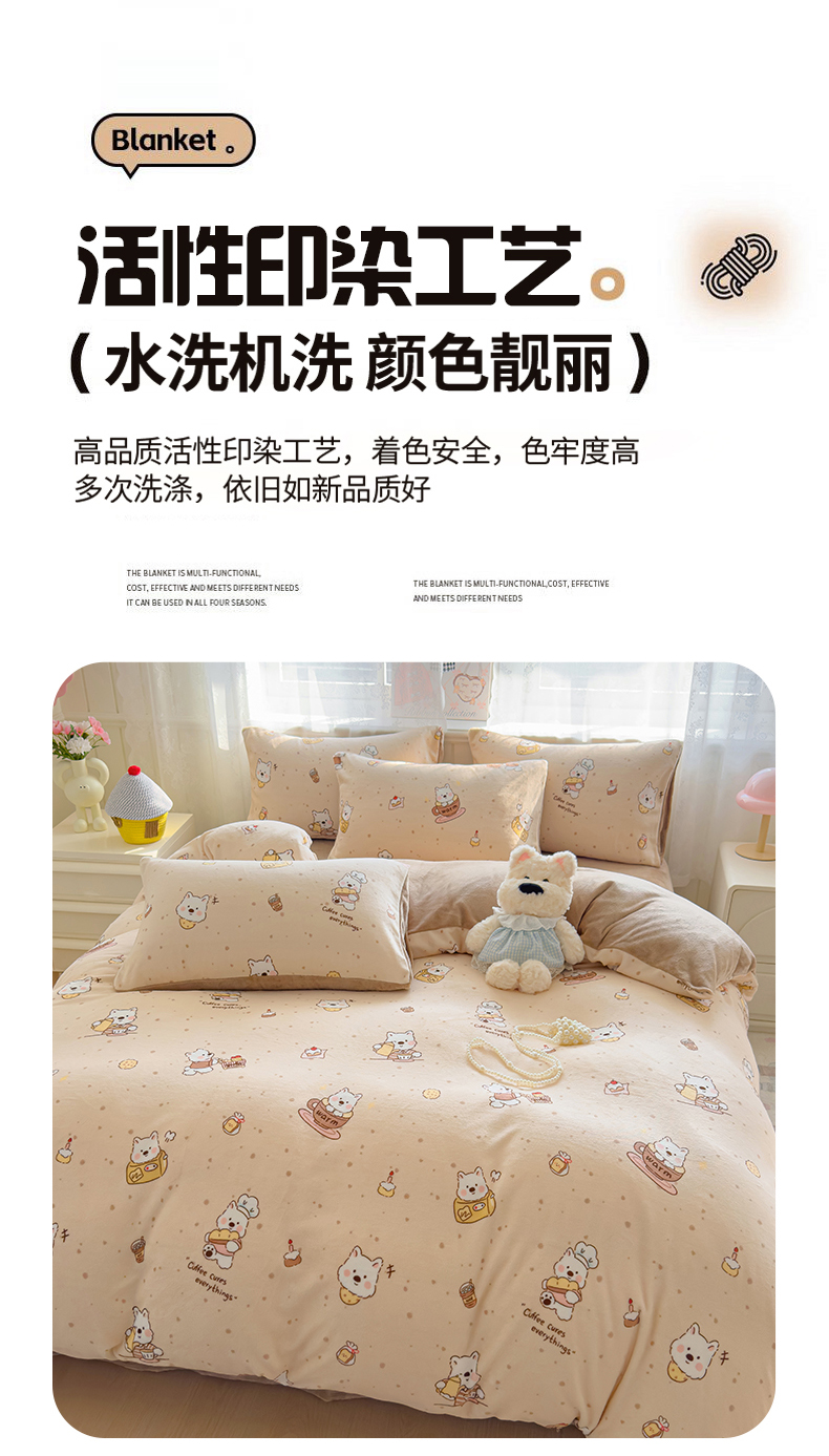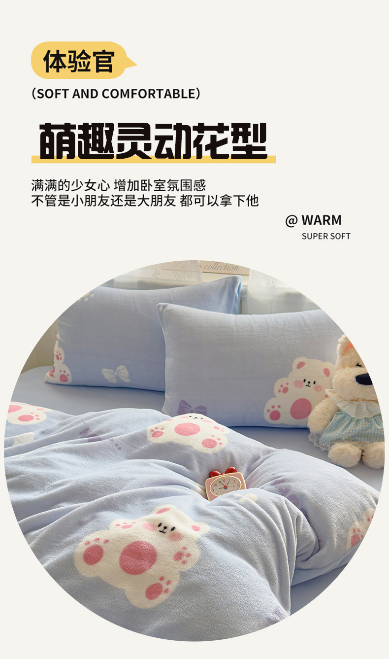 商品名称:灿哈家纺 2025新款200g加厚款小清新牛奶绒印花四件套