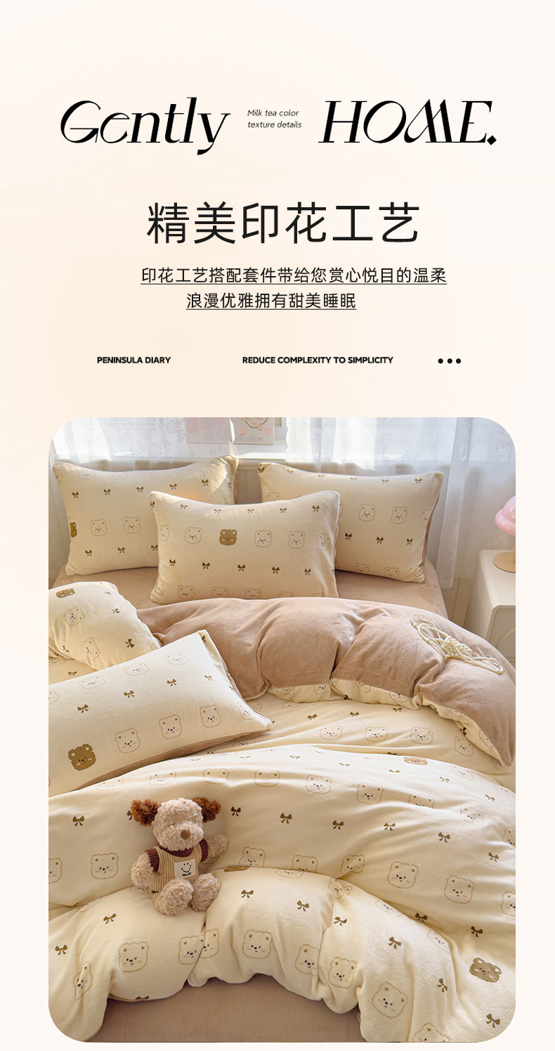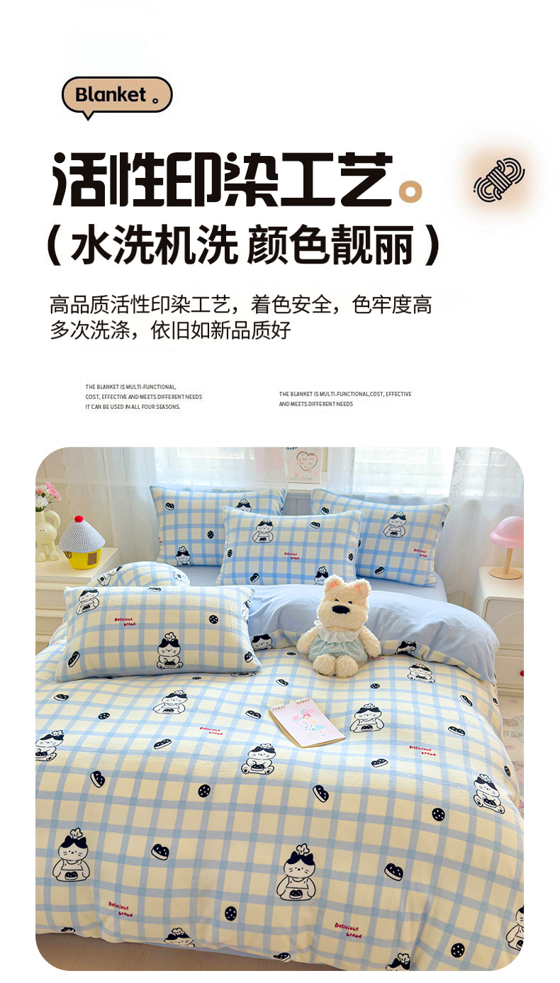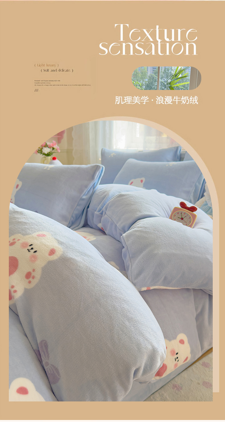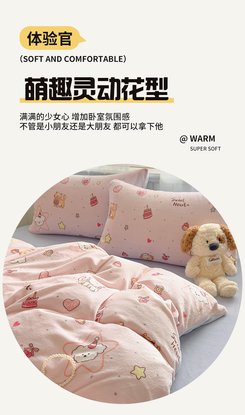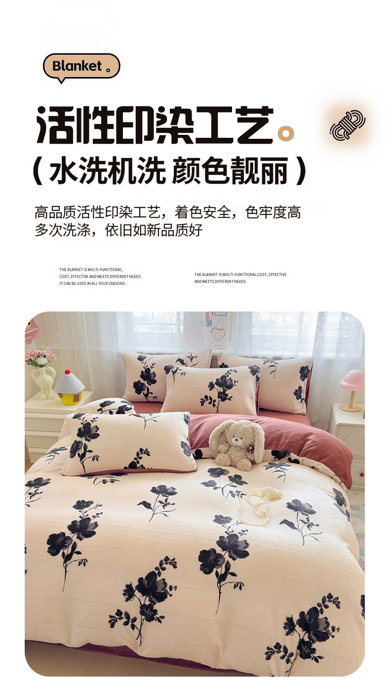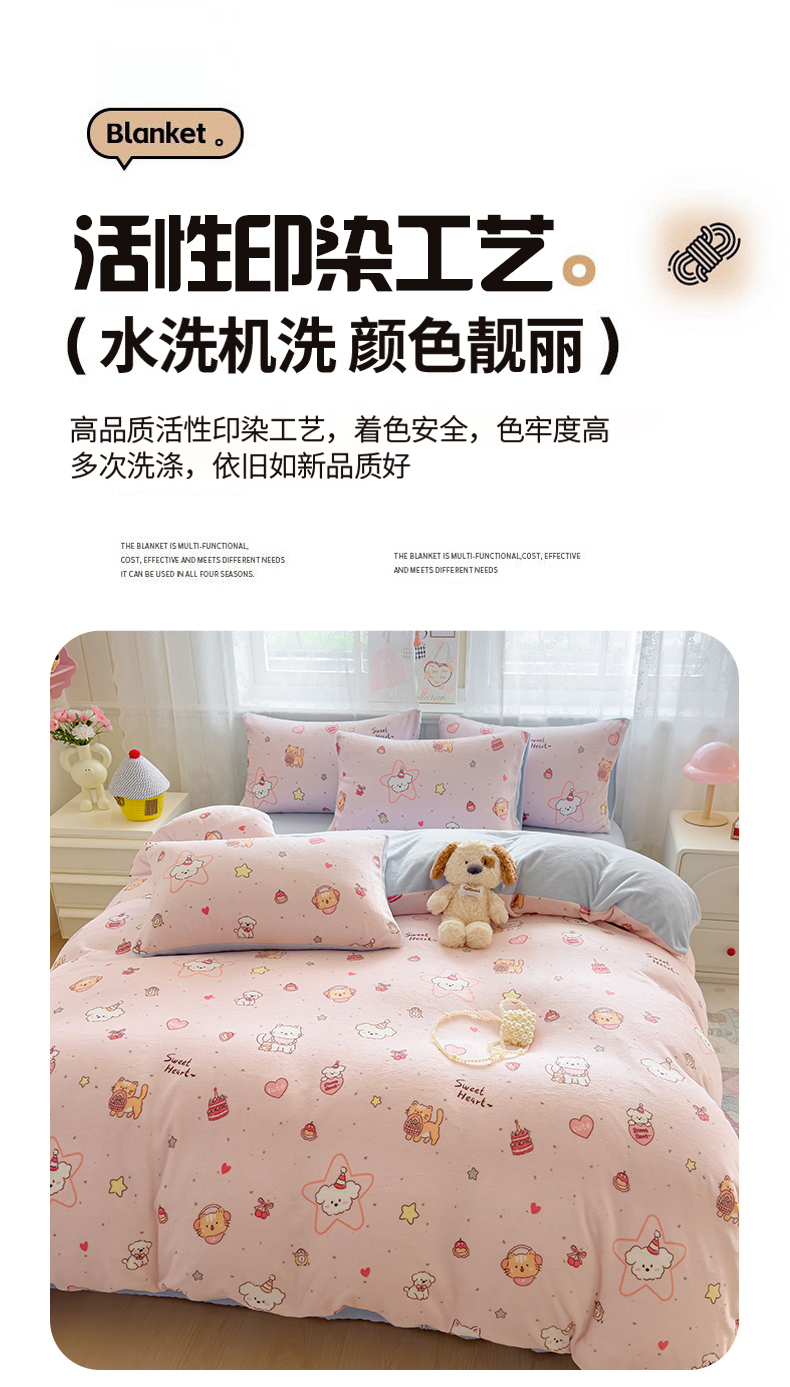 商品名称:灿哈家纺 2025新款200g加厚款小清新牛奶绒印花四件套