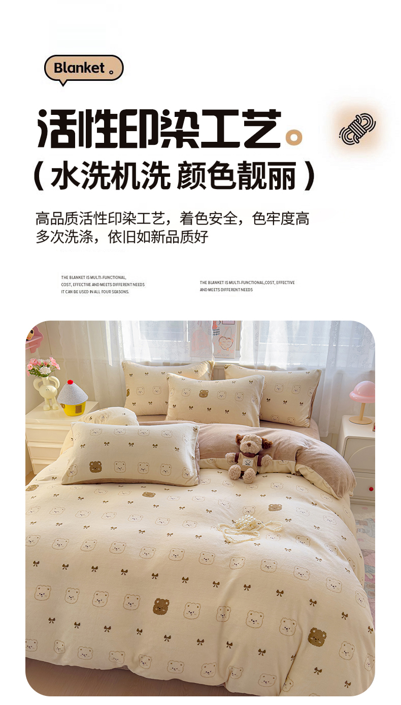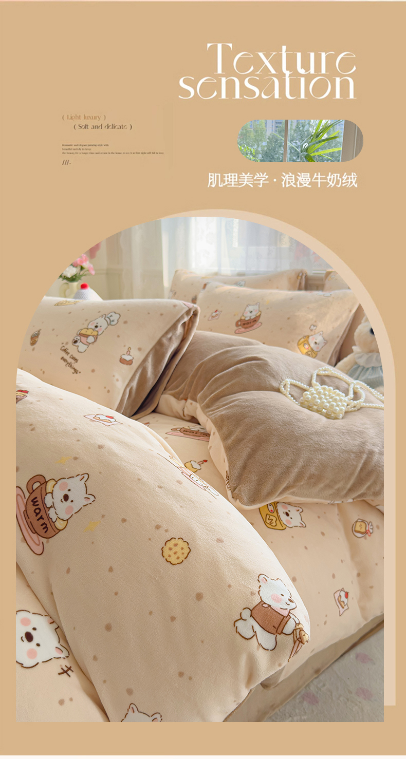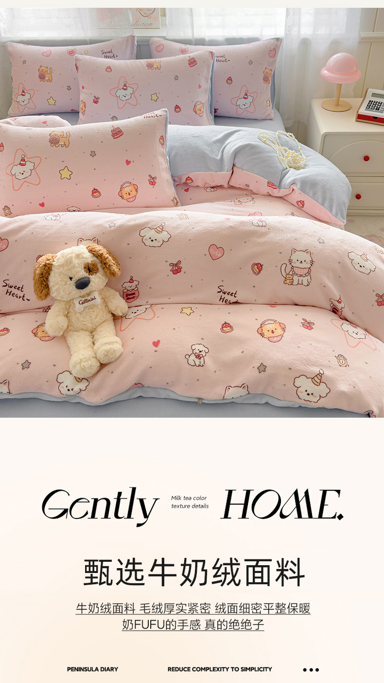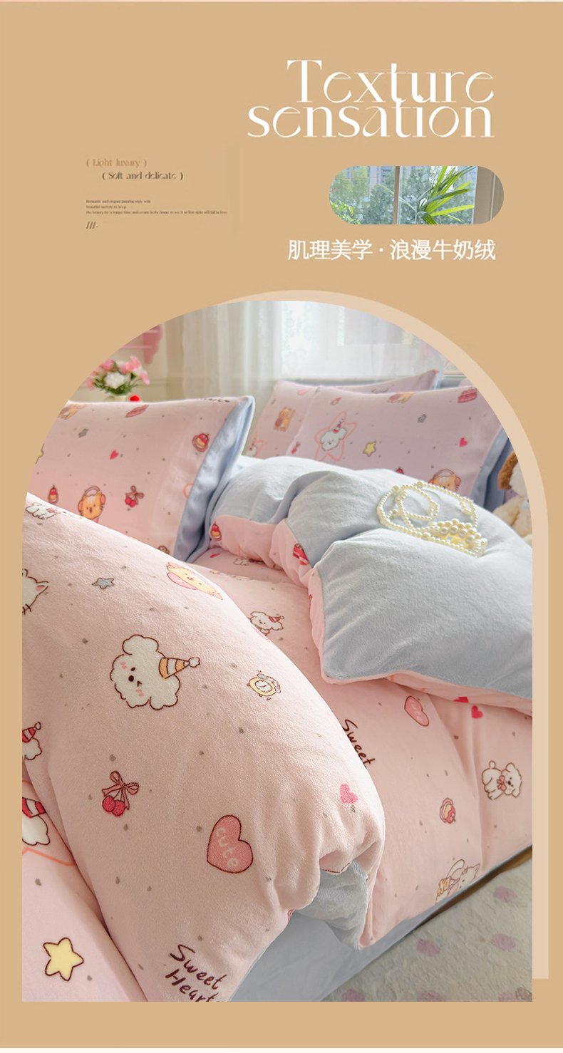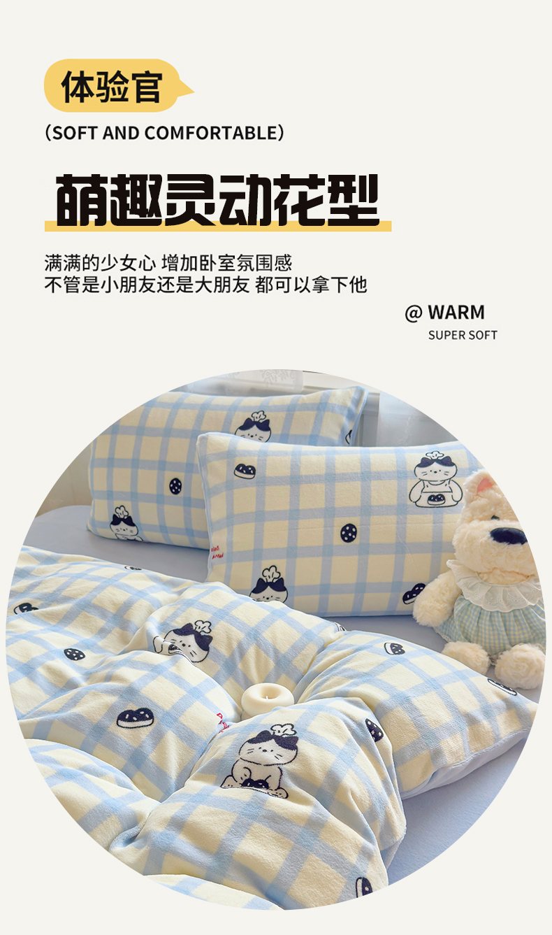 商品名称:灿哈家纺 2025新款200g加厚款小清新牛奶绒印花四件套
