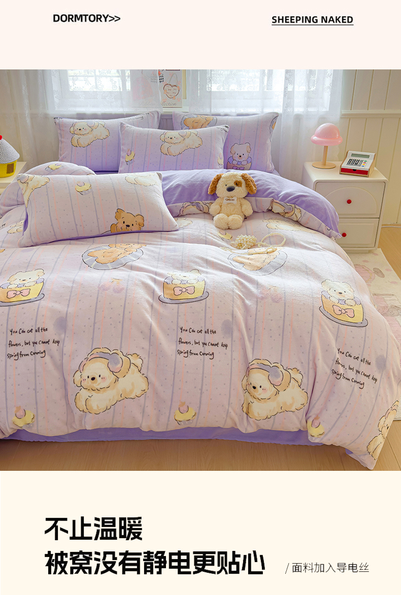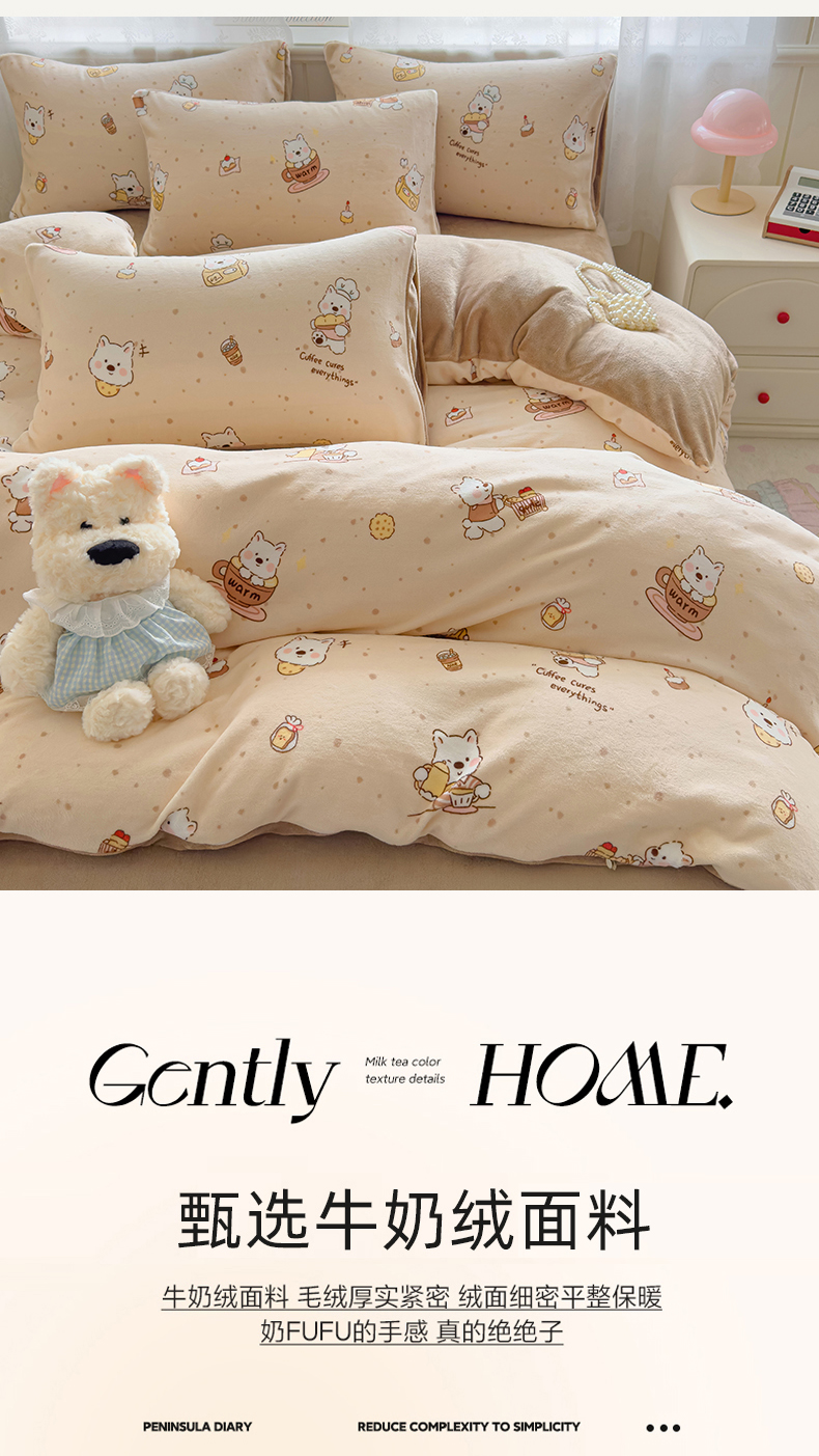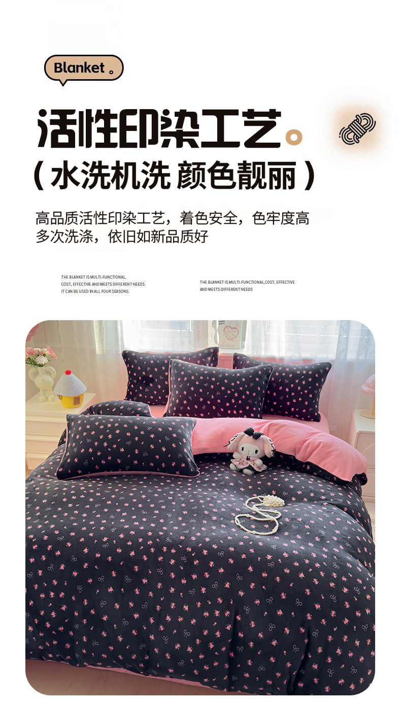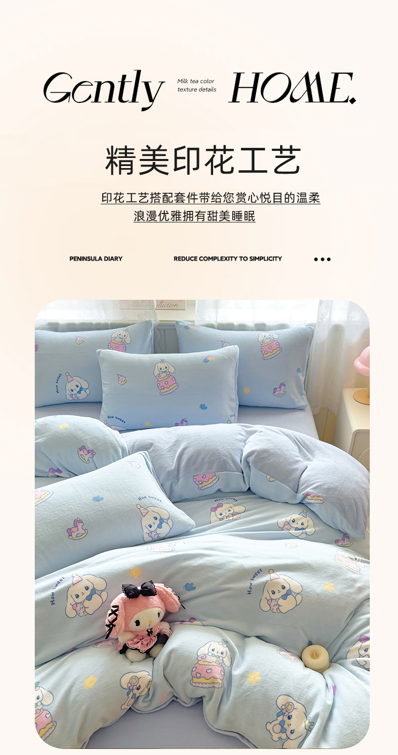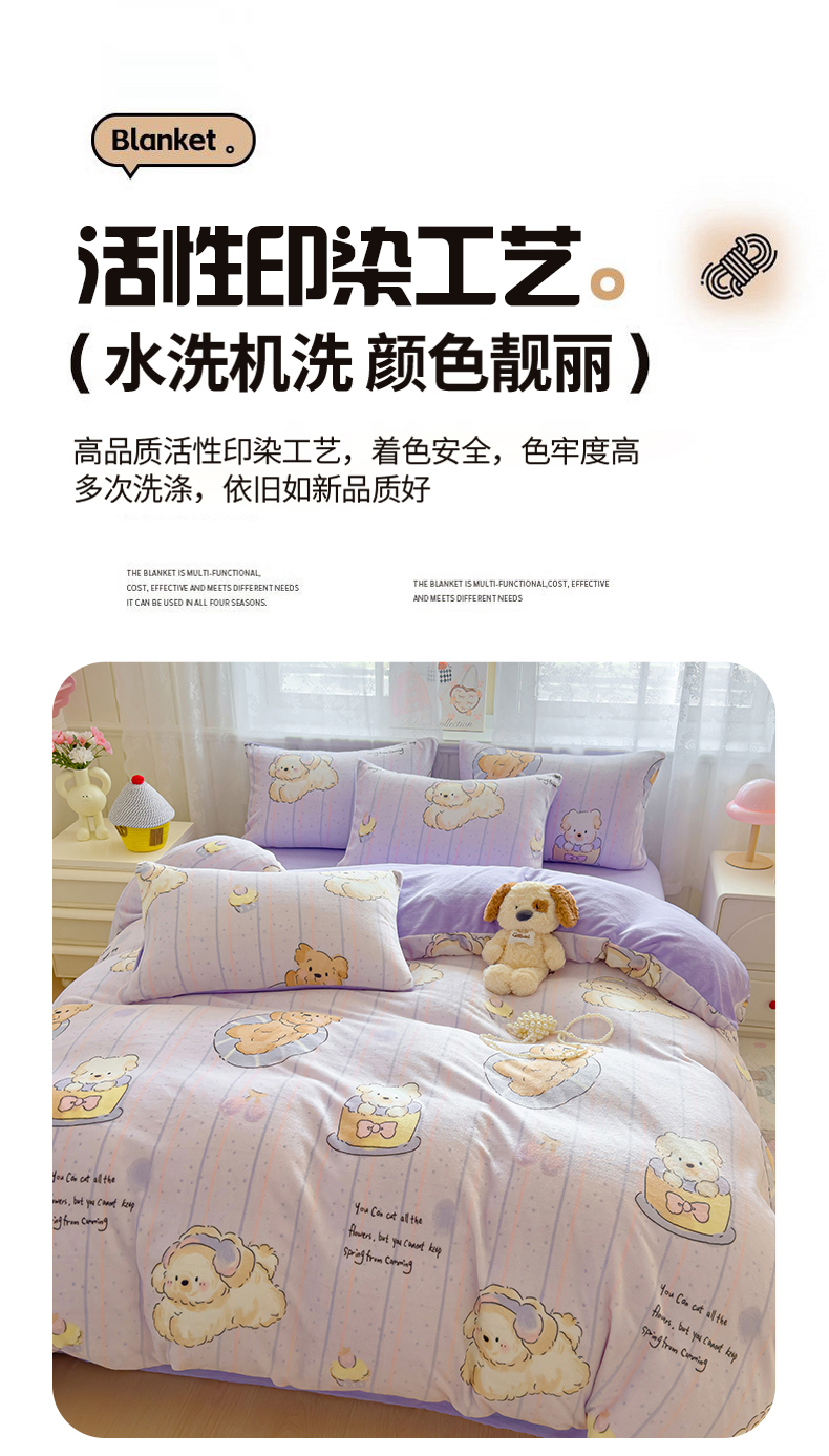商品名称:灿哈家纺 2025新款200g加厚款小清新牛奶绒印花四件套