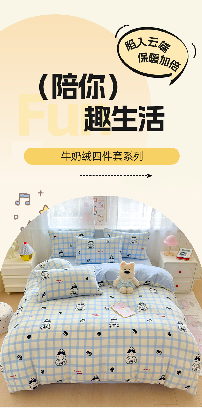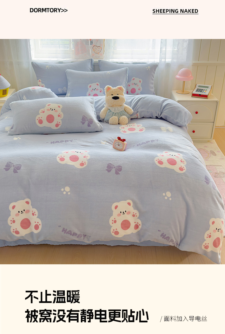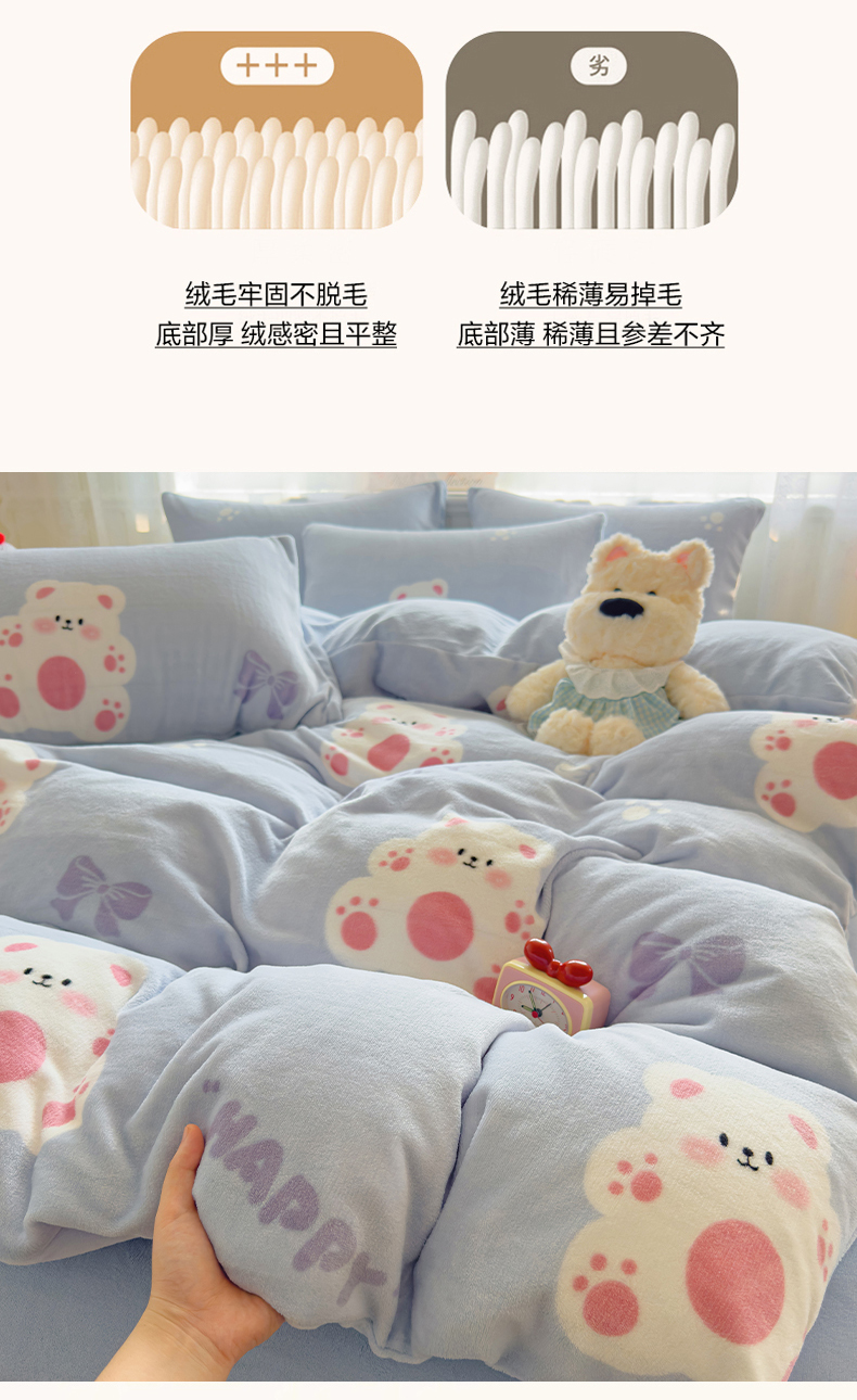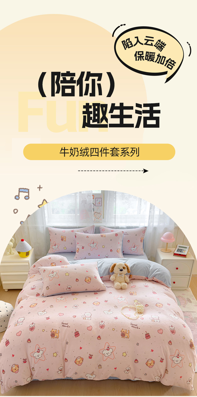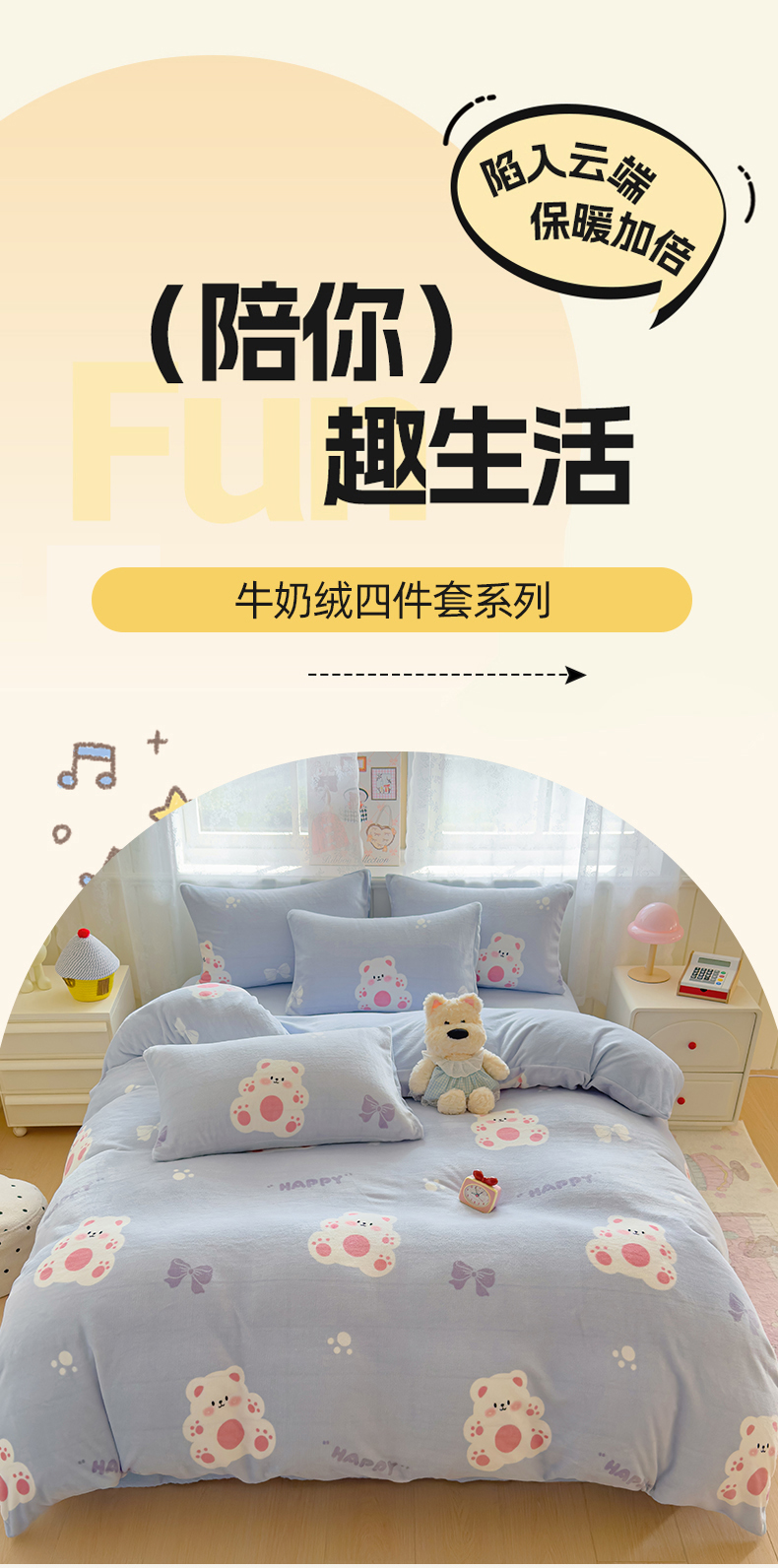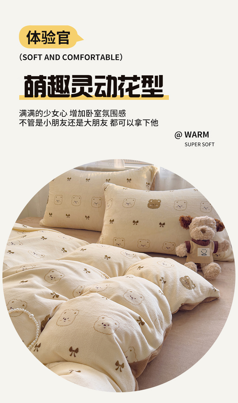 商品名称:灿哈家纺 2025新款200g加厚款小清新牛奶绒印花四件套
