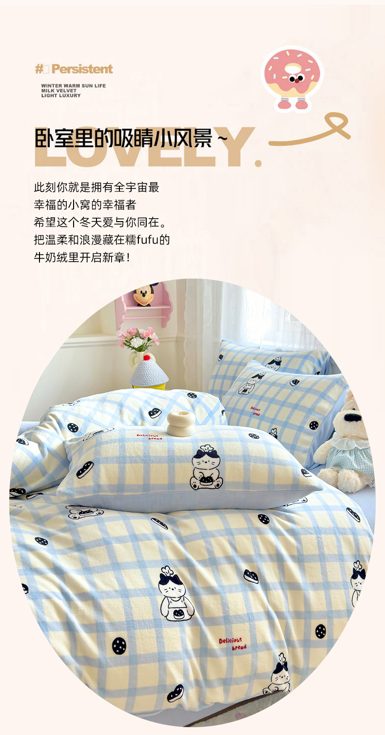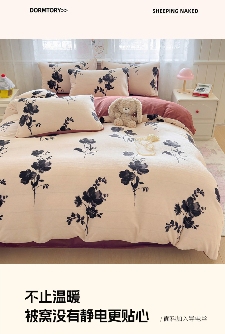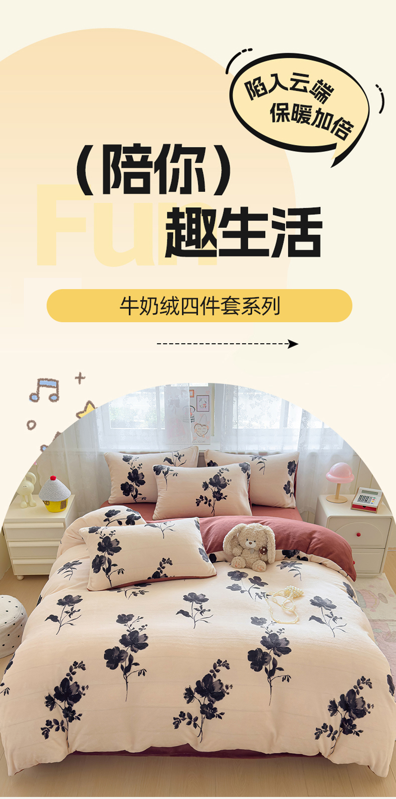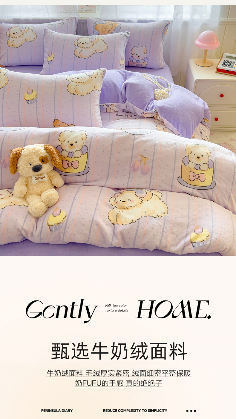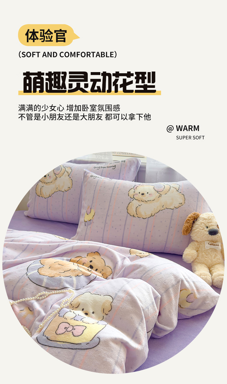 商品名称:灿哈家纺 2025新款200g加厚款小清新牛奶绒印花四件套