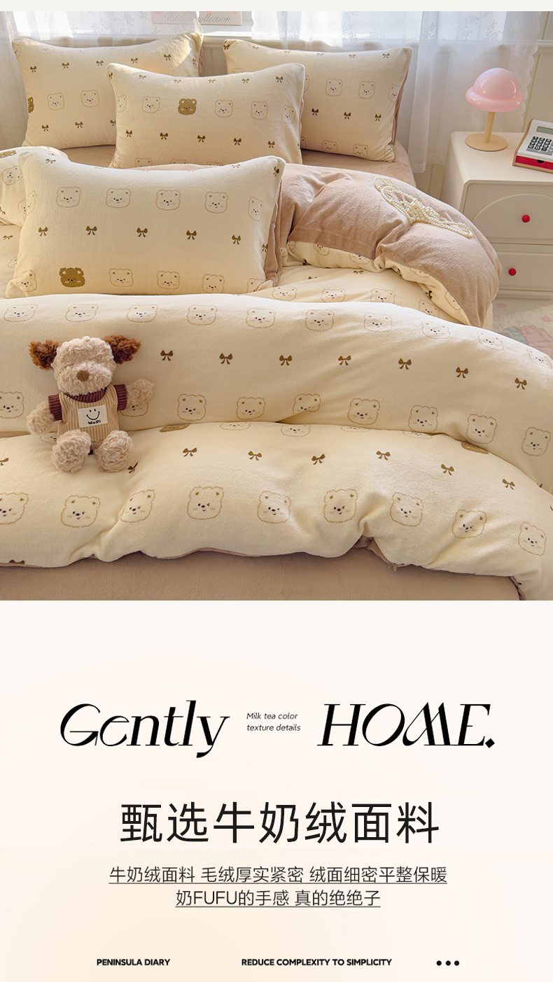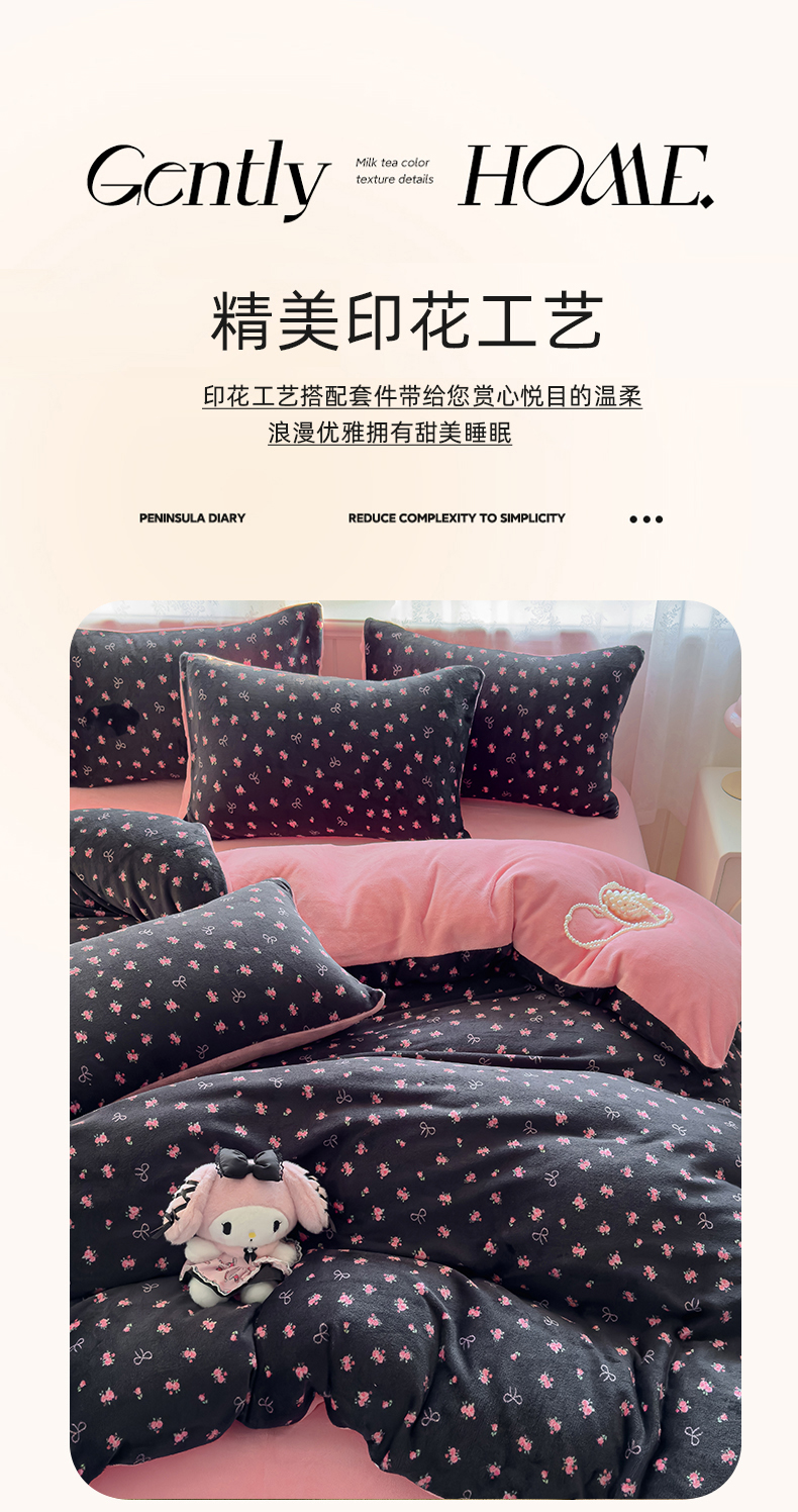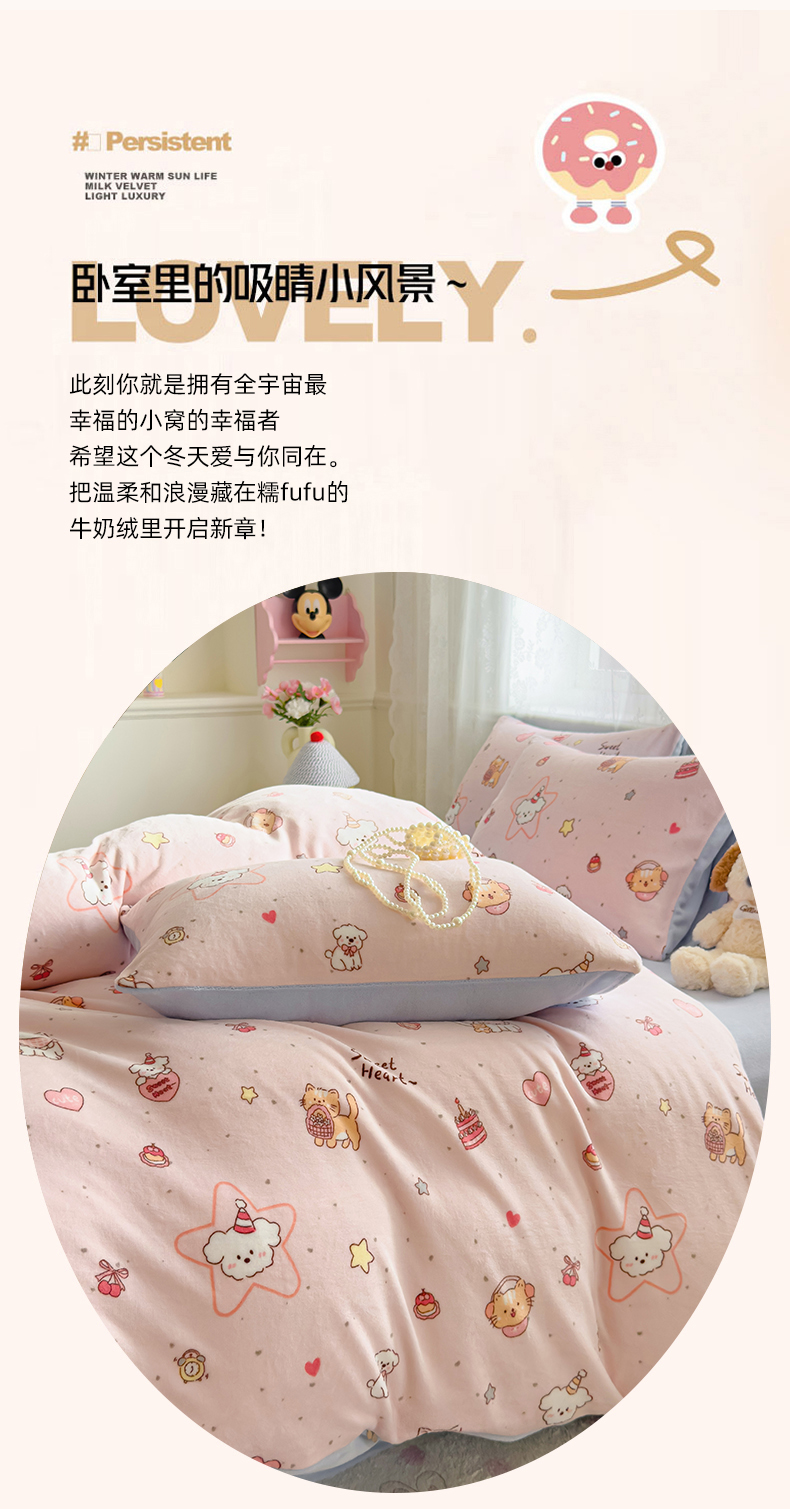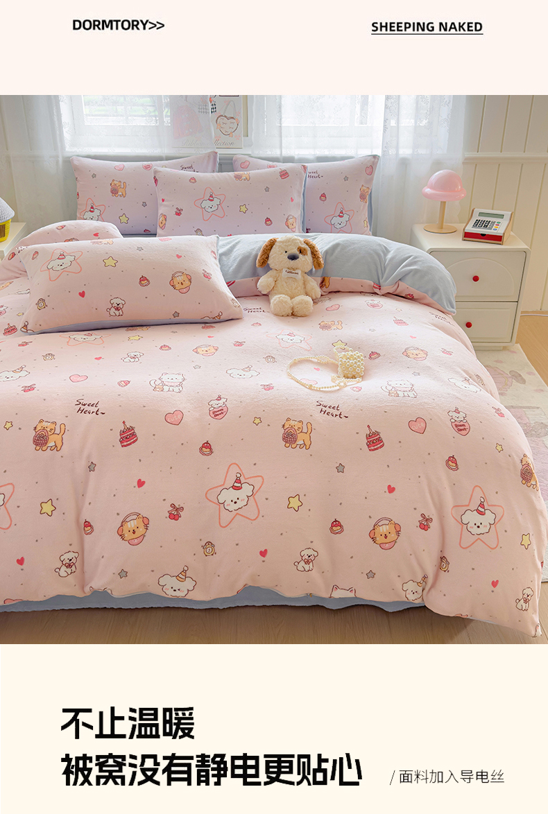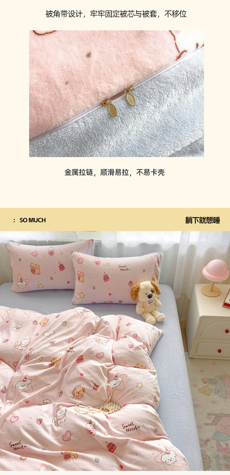 商品名称:灿哈家纺 2025新款200g加厚款小清新牛奶绒印花四件套