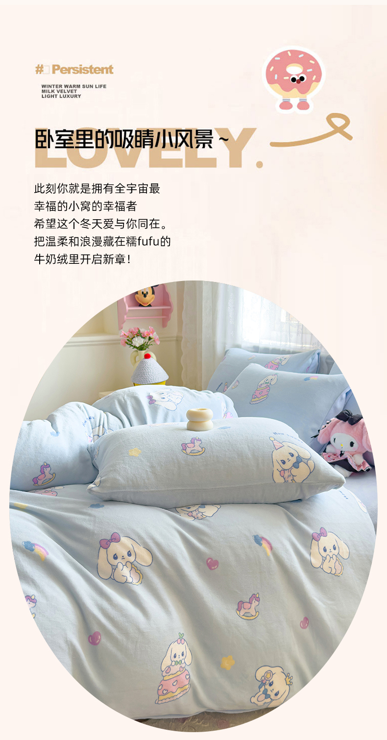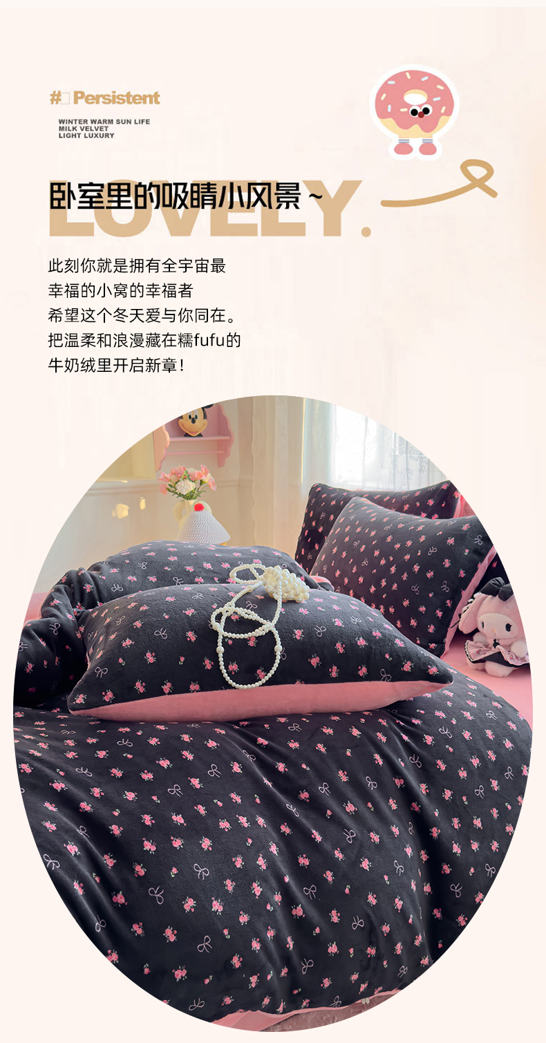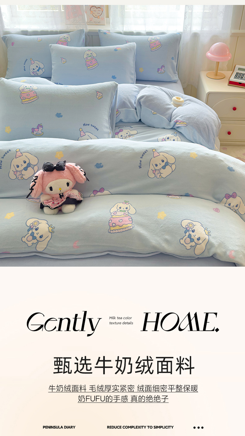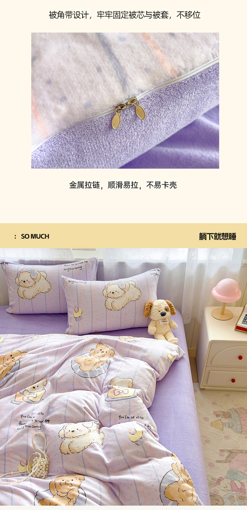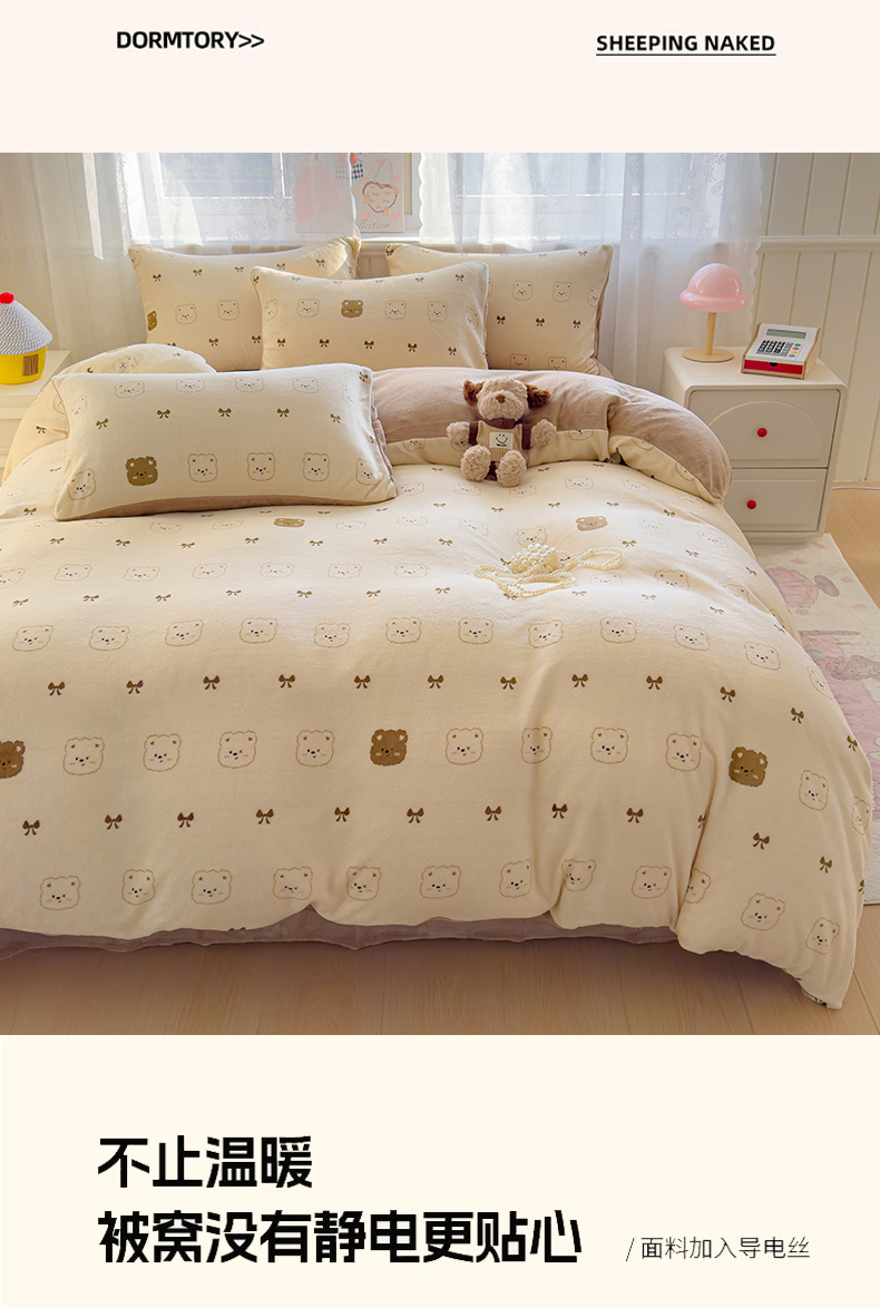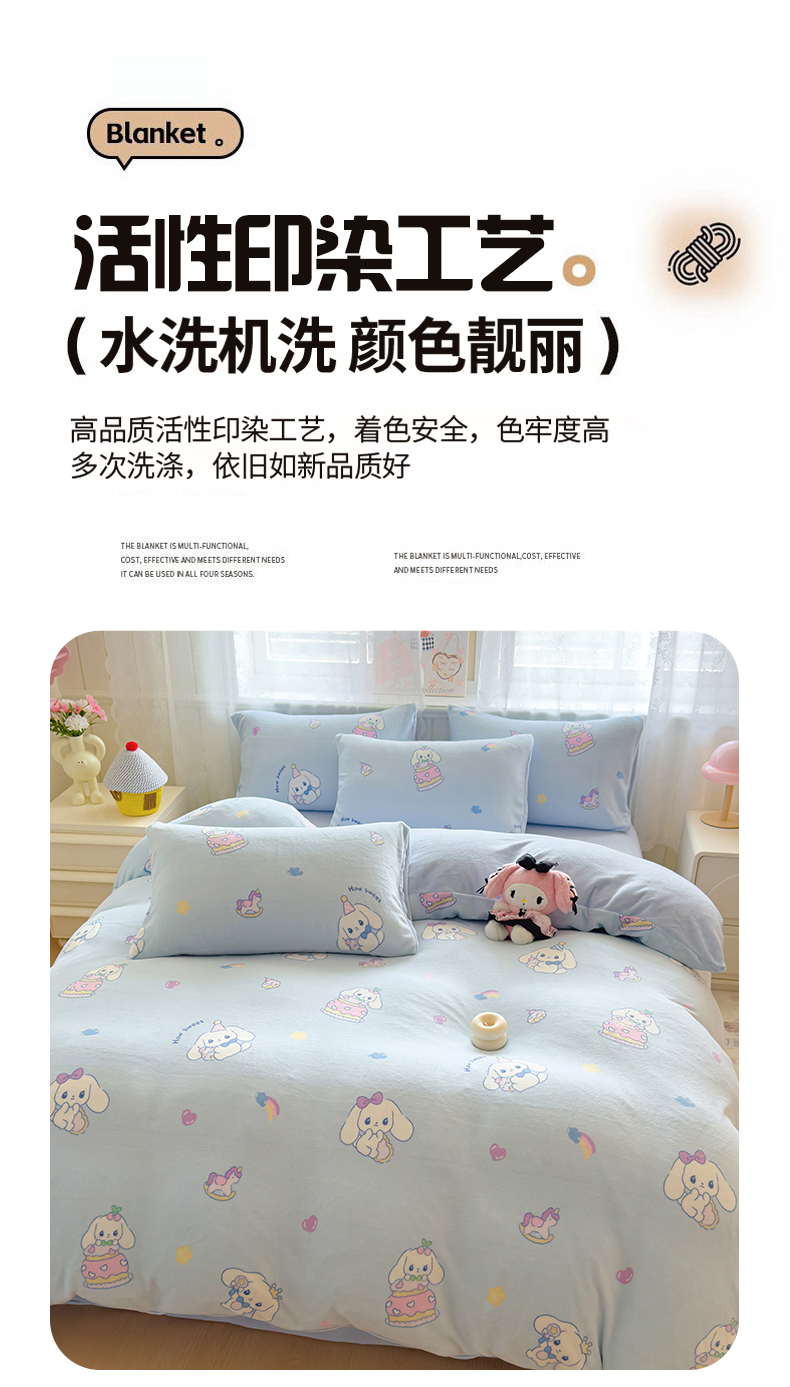 商品名称:灿哈家纺 2025新款200g加厚款小清新牛奶绒印花四件套