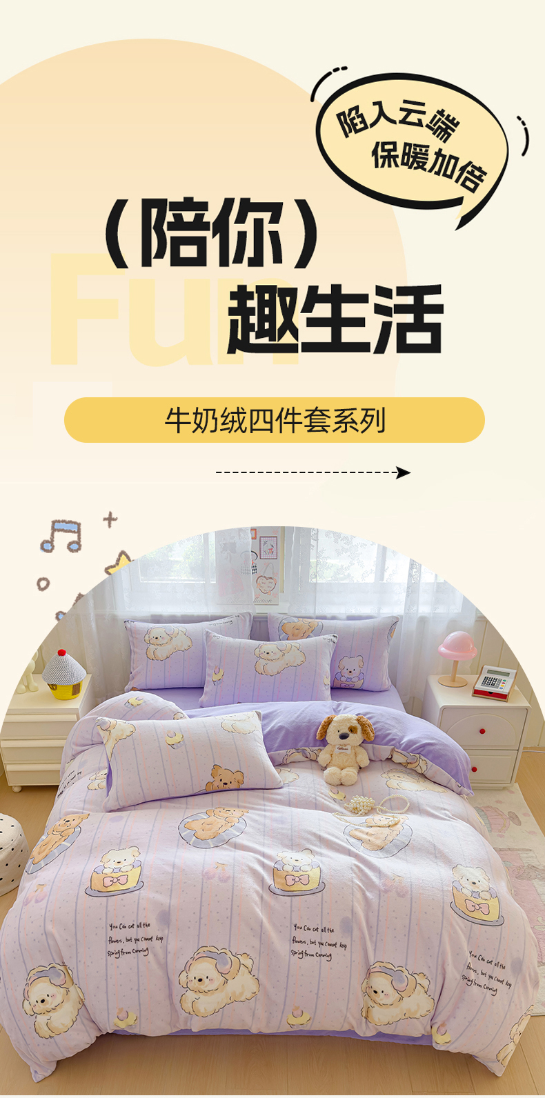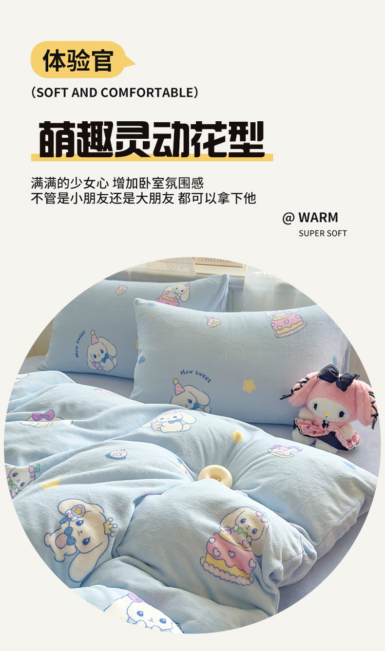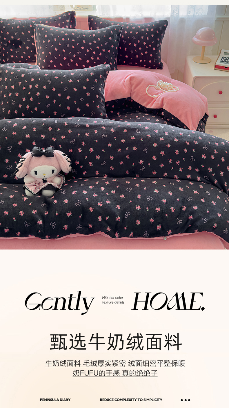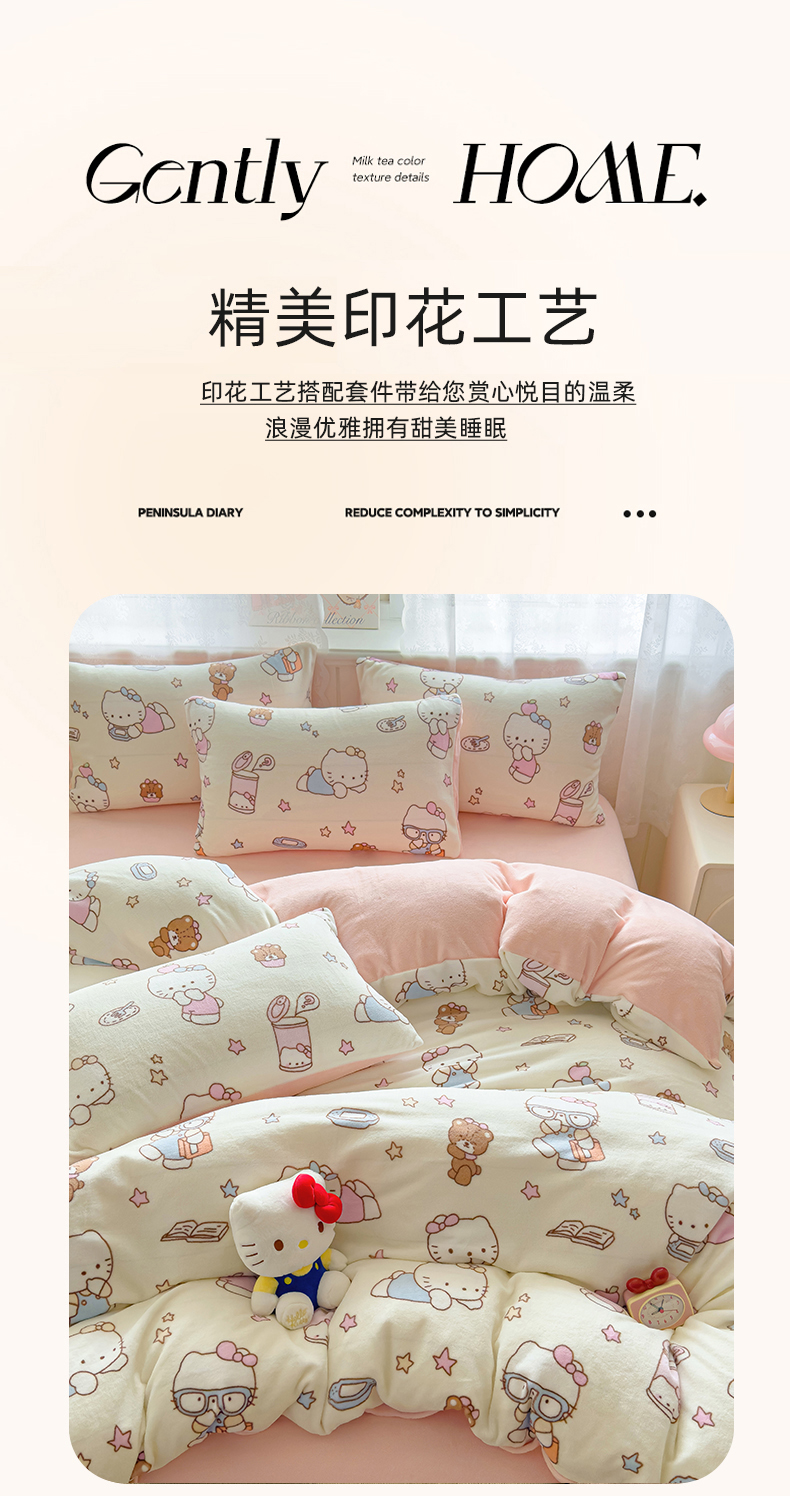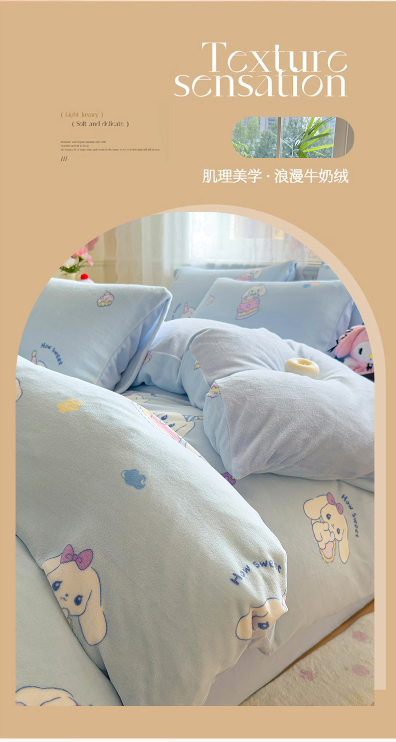 商品名称:灿哈家纺 2025新款200g加厚款小清新牛奶绒印花四件套