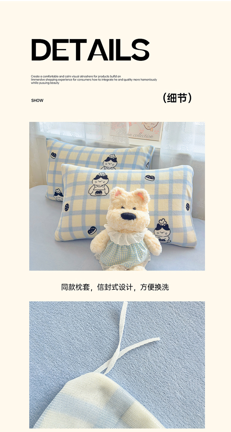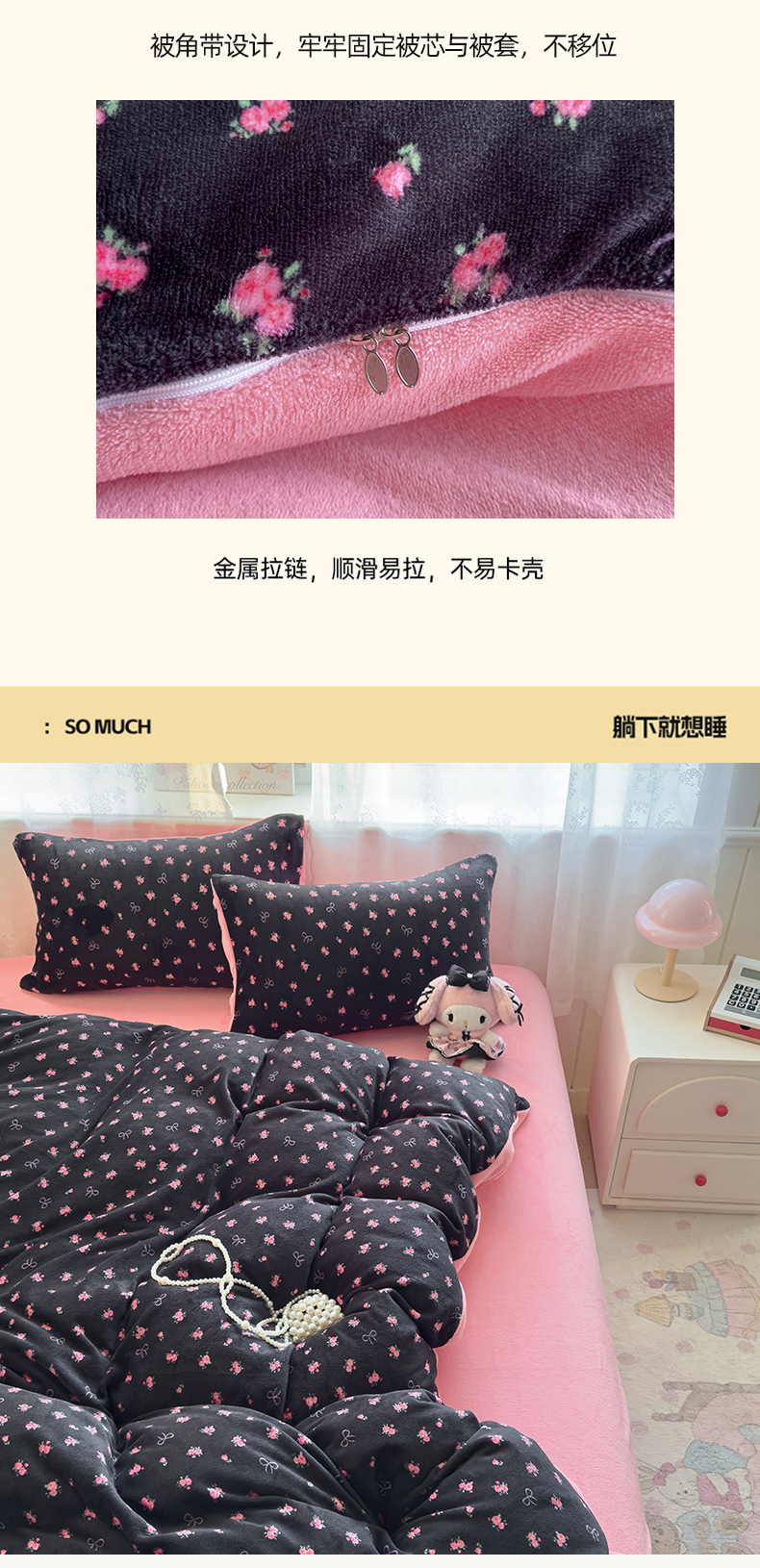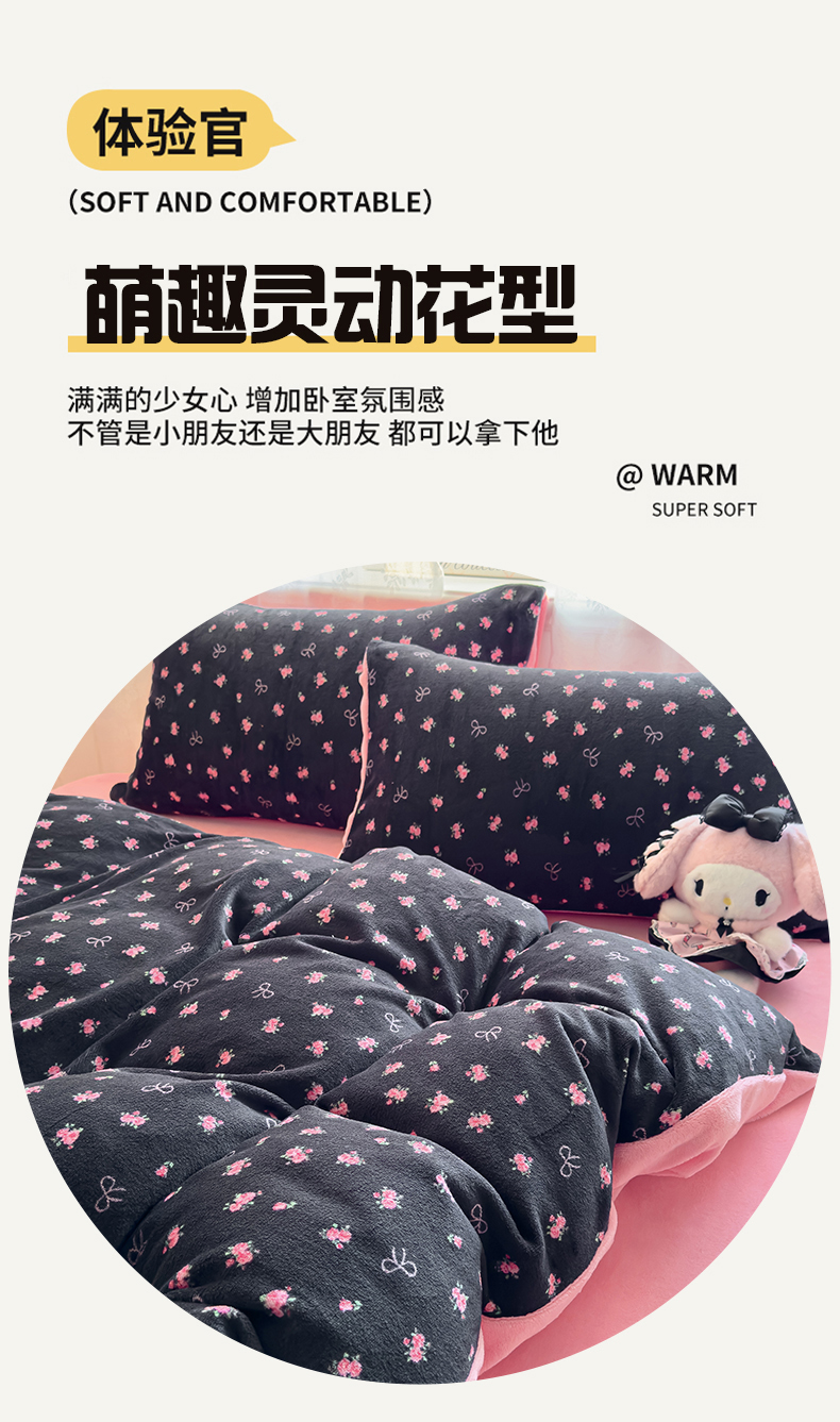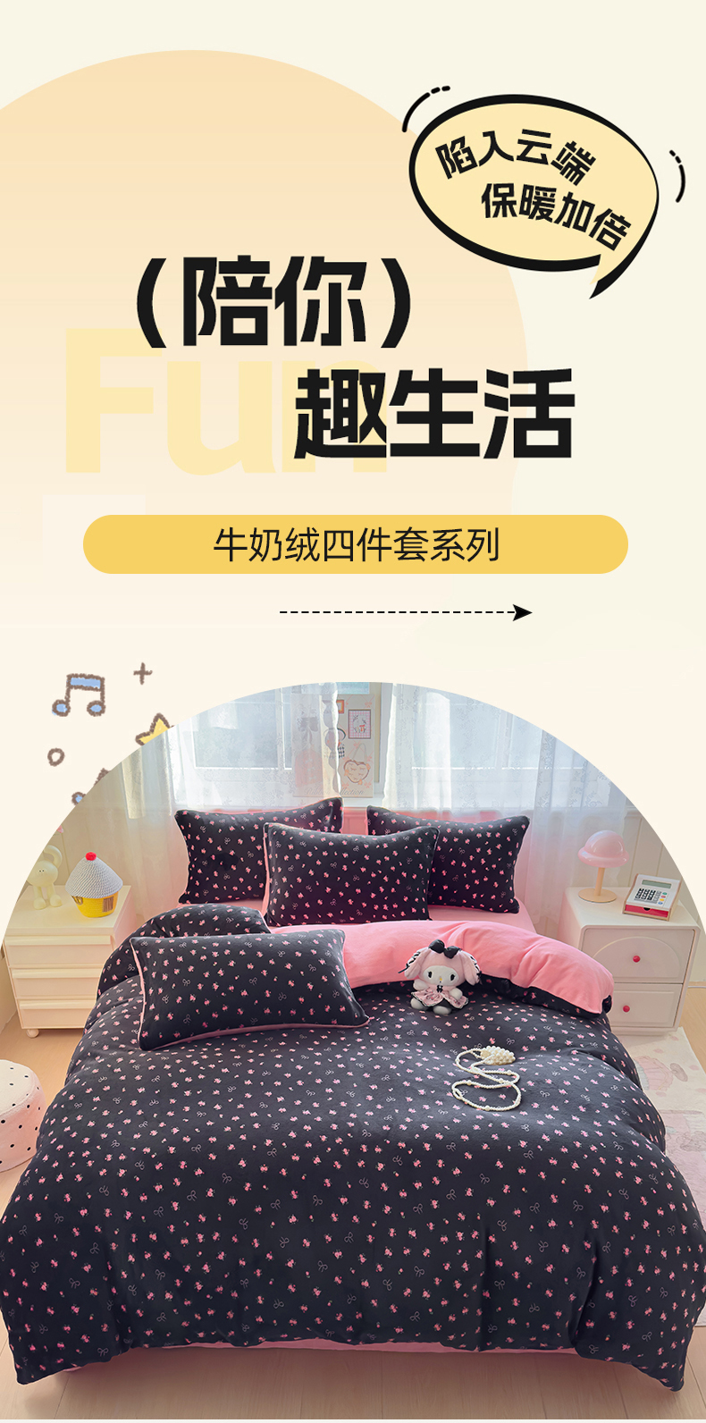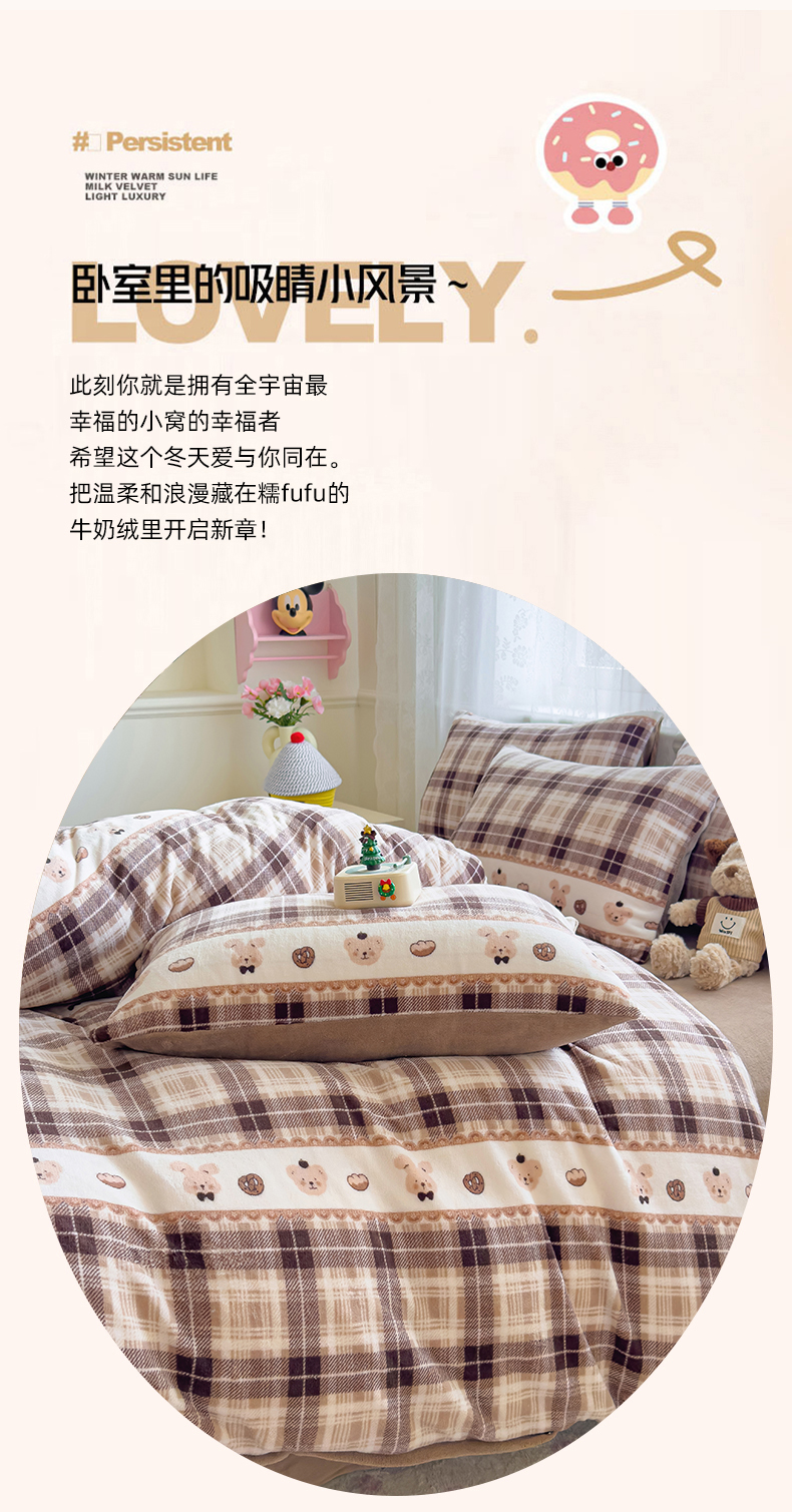 商品名称:灿哈家纺 2025新款200g加厚款小清新牛奶绒印花四件套