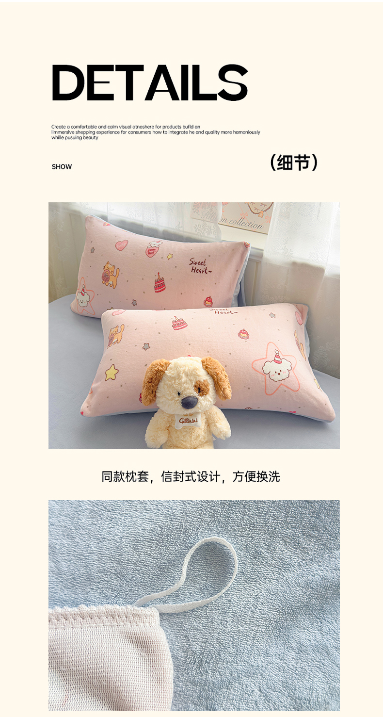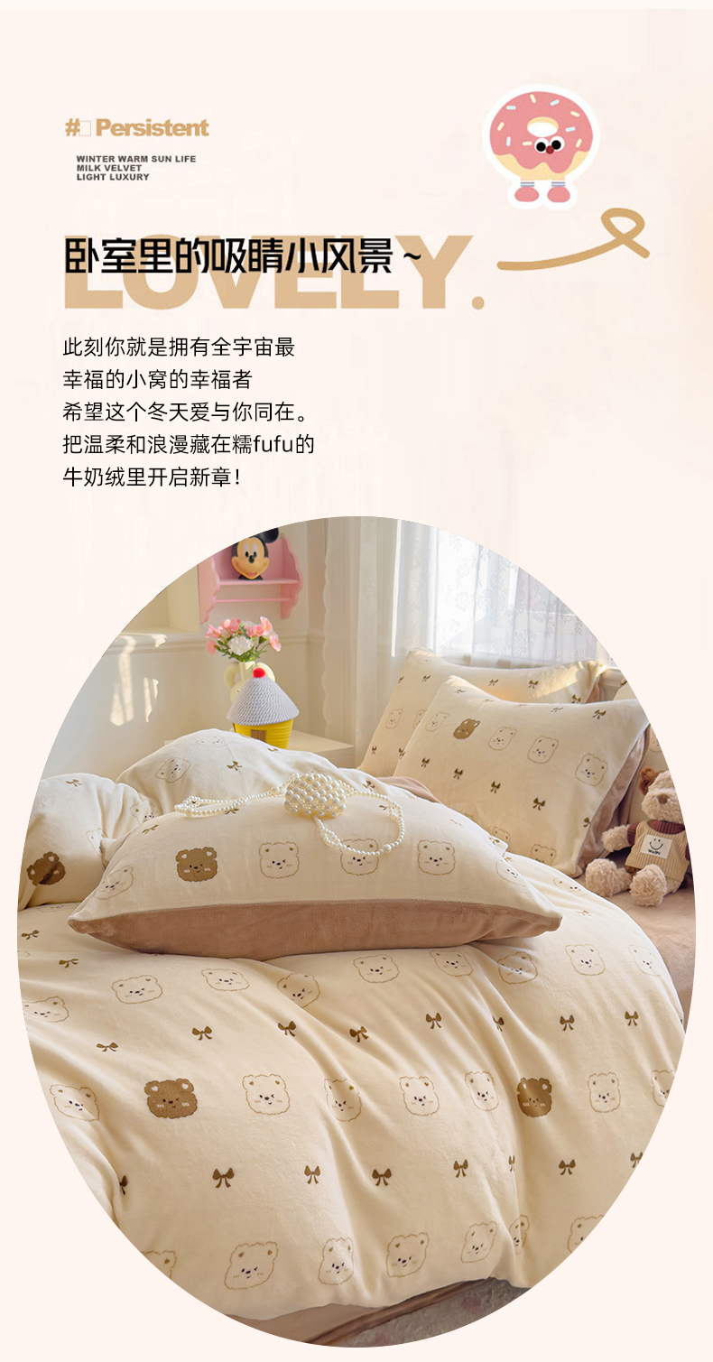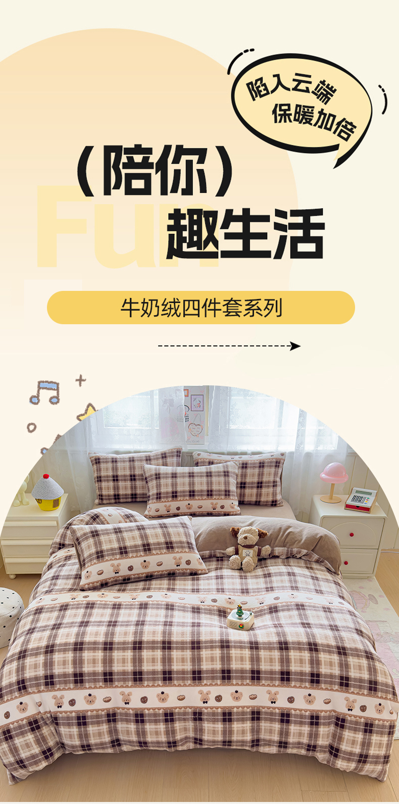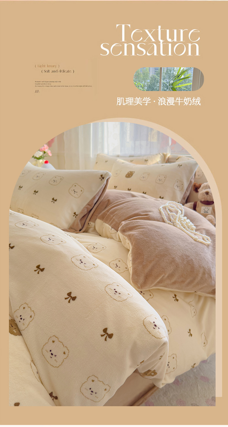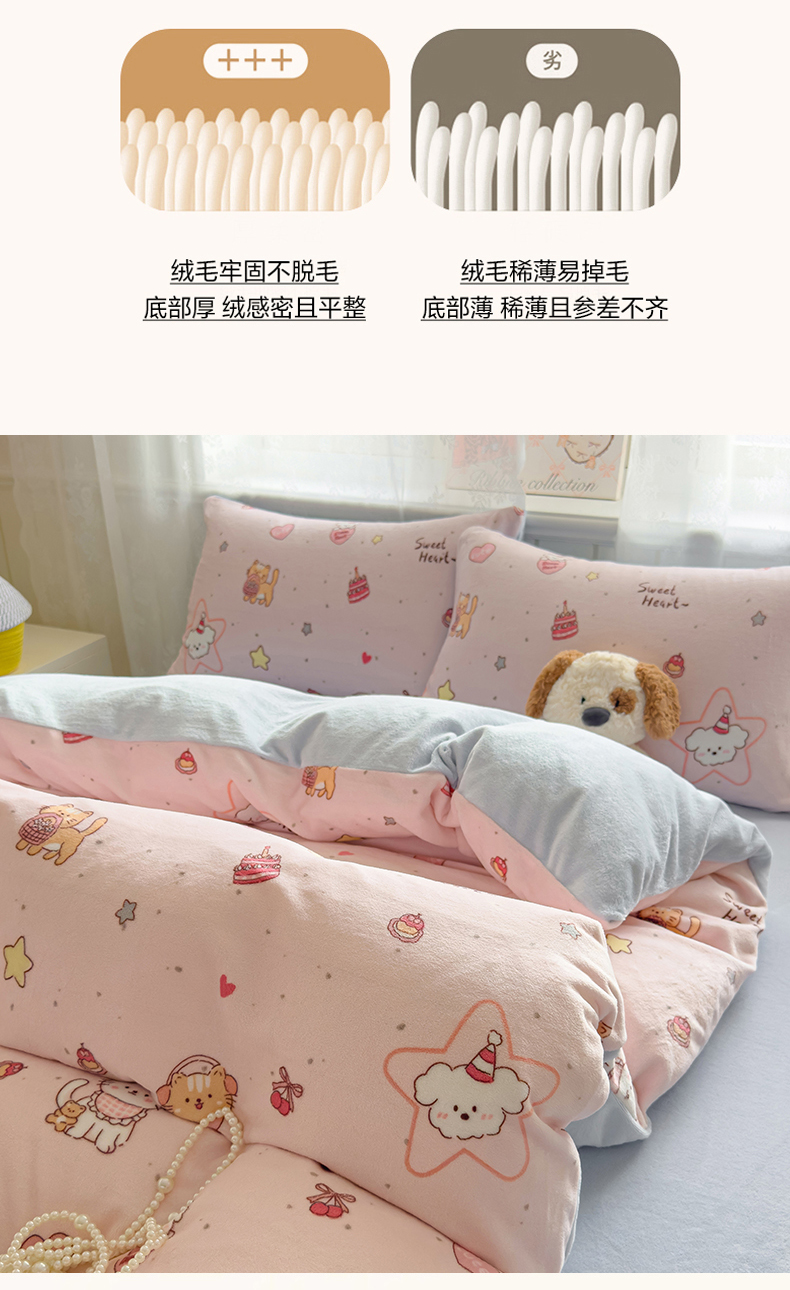 商品名称:灿哈家纺 2025新款200g加厚款小清新牛奶绒印花四件套