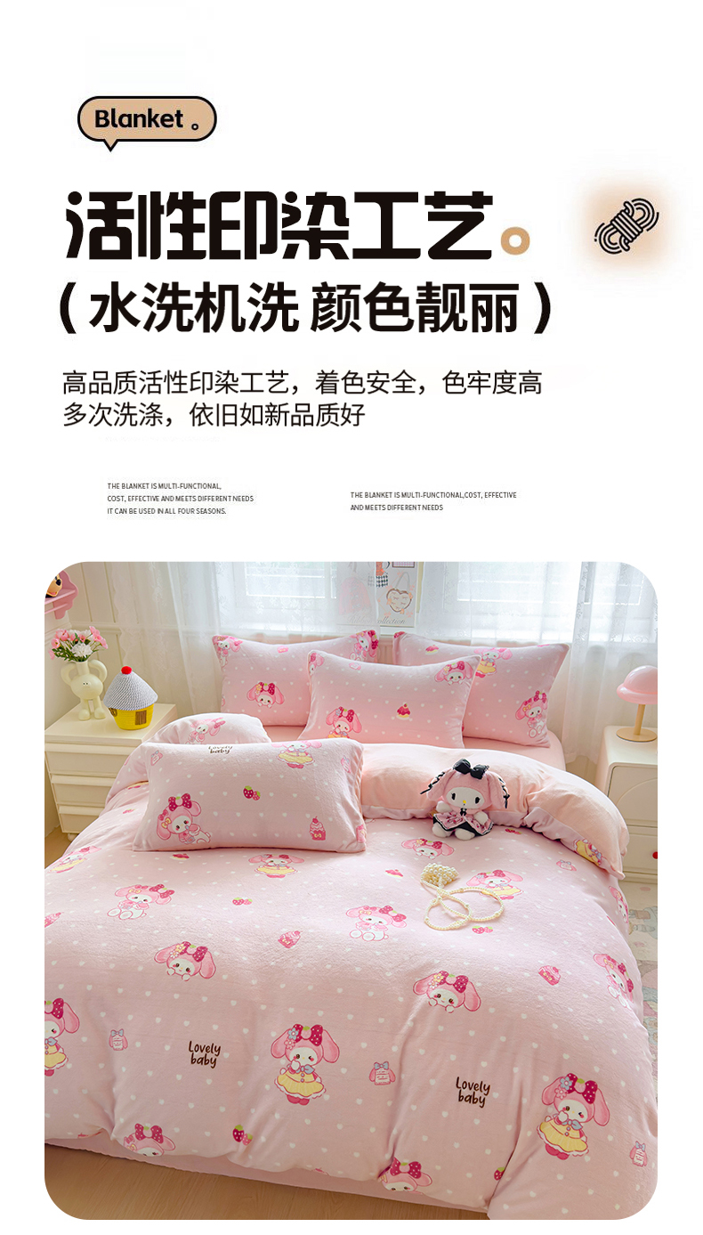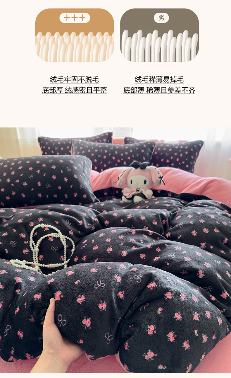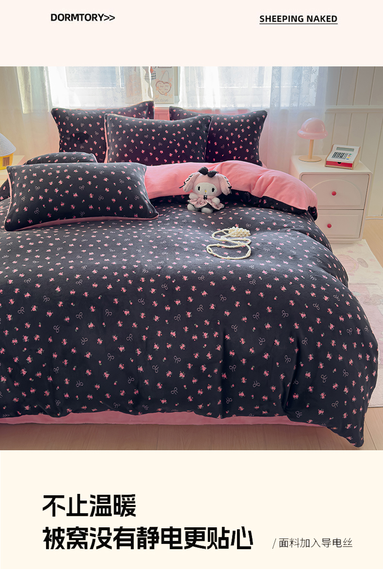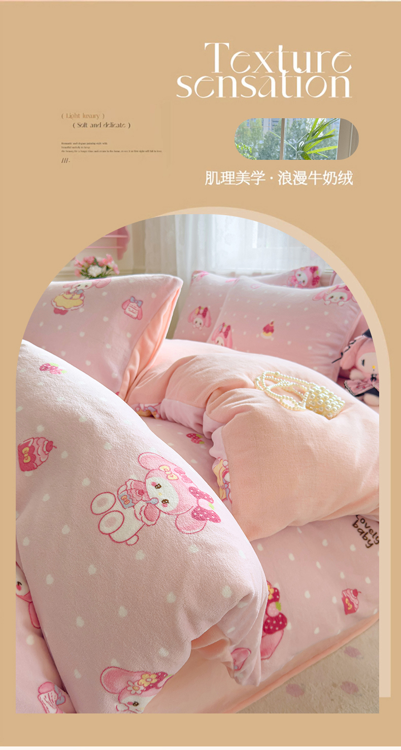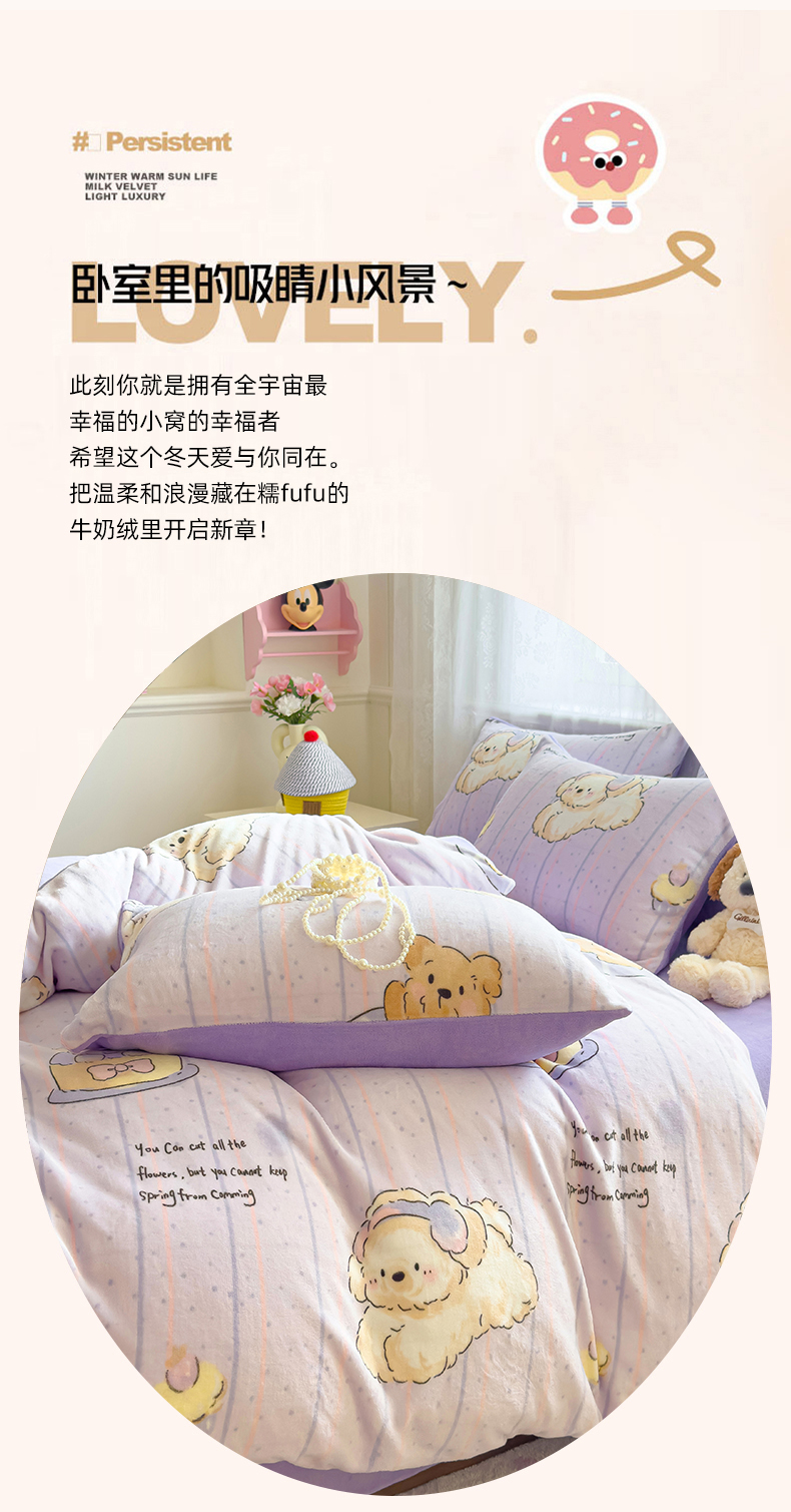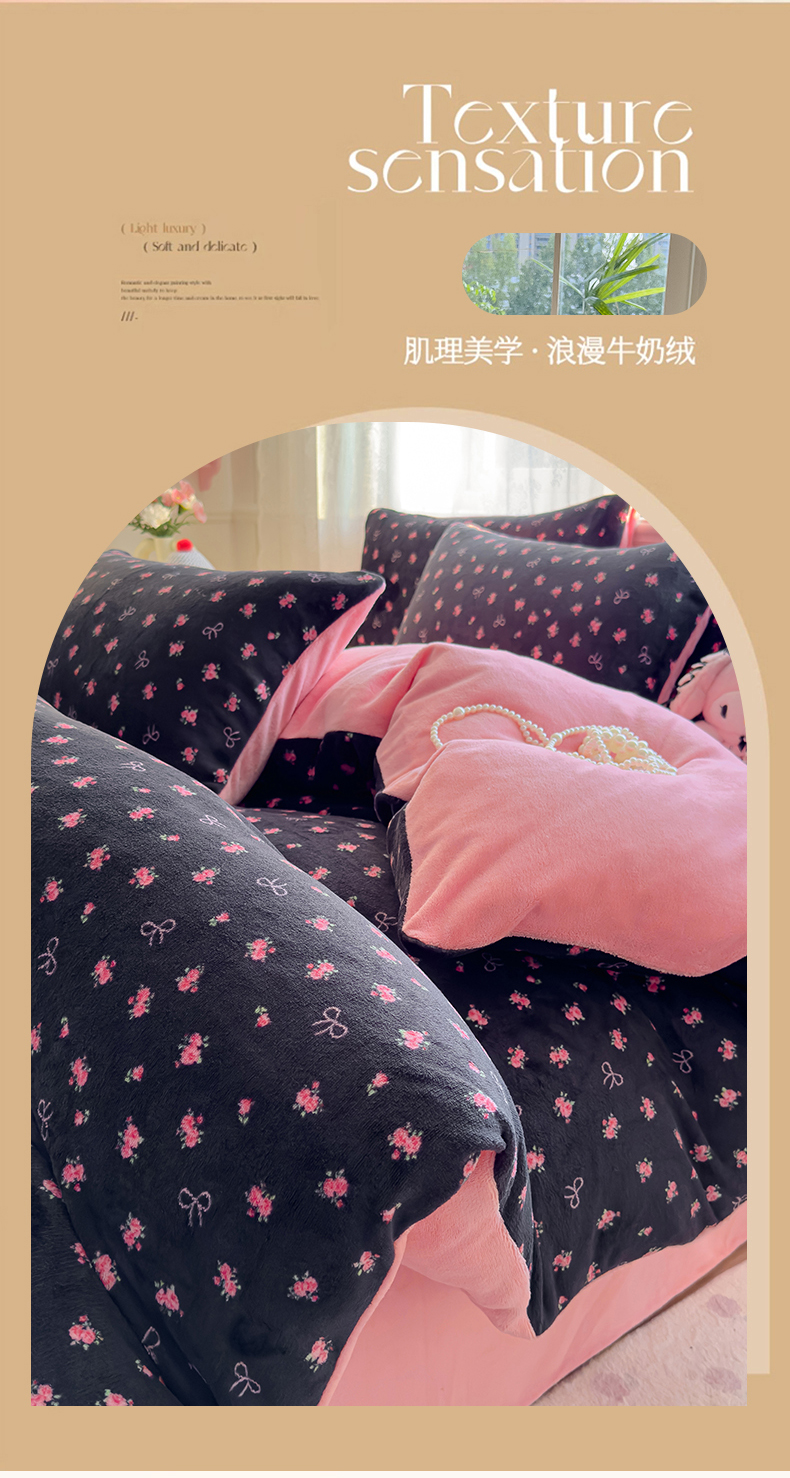 商品名称:灿哈家纺 2025新款200g加厚款小清新牛奶绒印花四件套