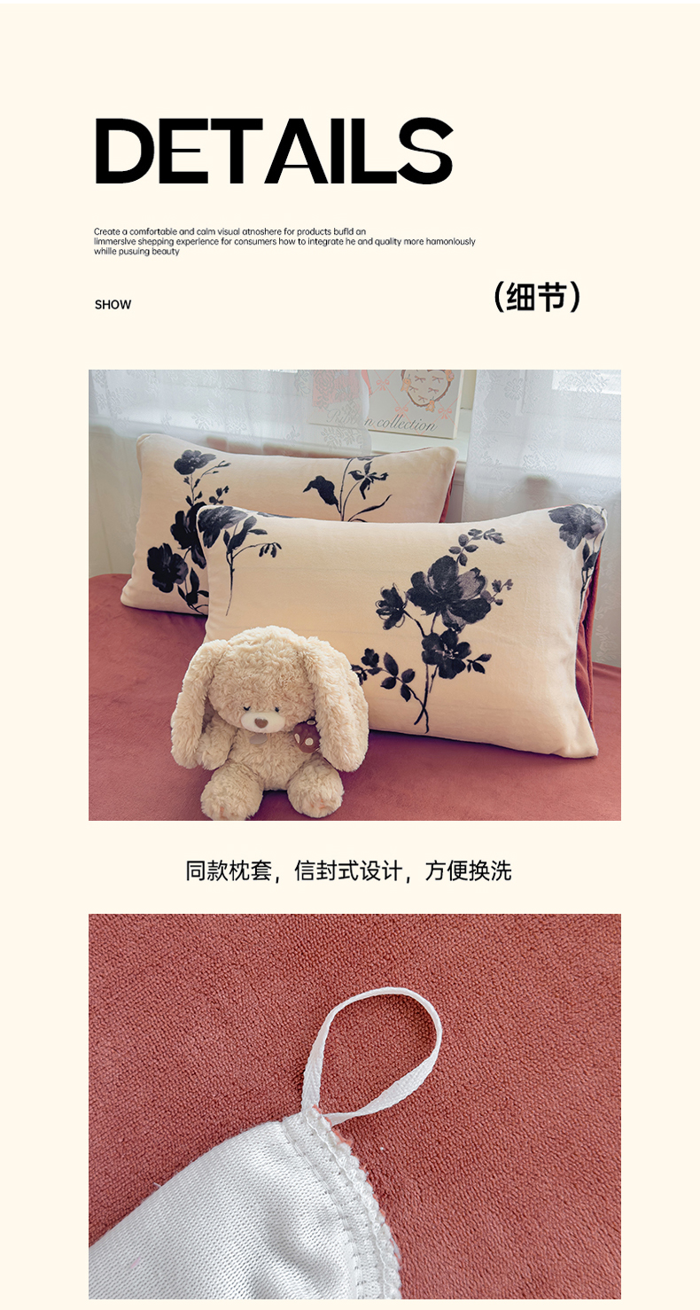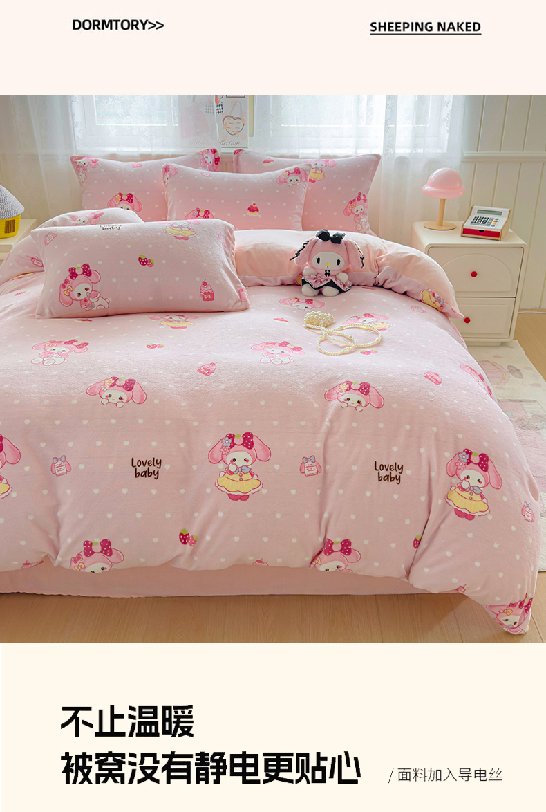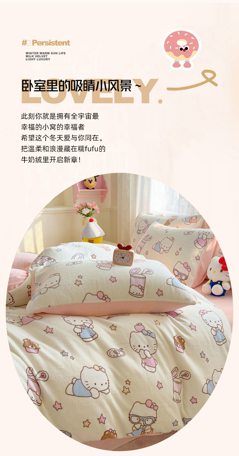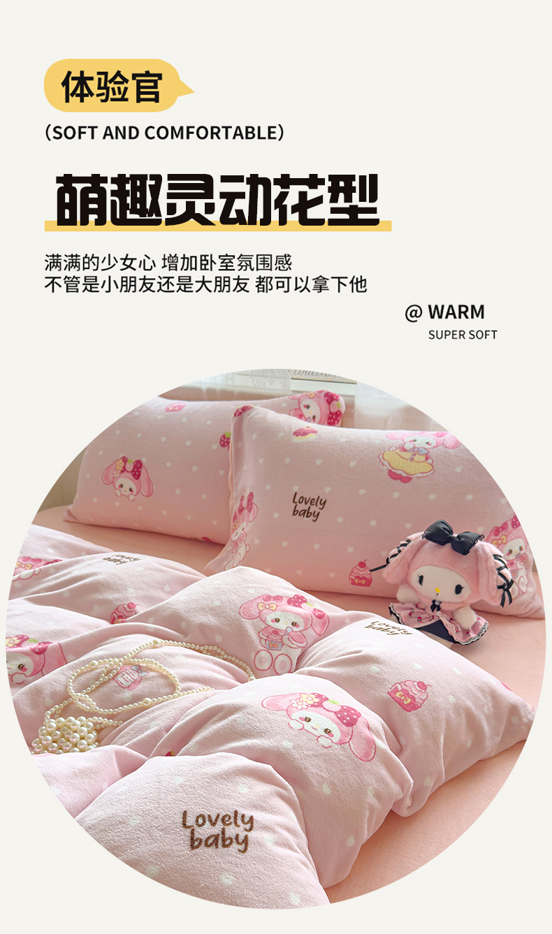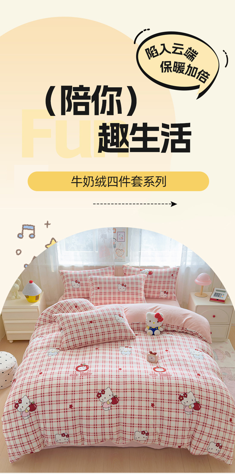商品名称:灿哈家纺 2025新款200g加厚款小清新牛奶绒印花四件套