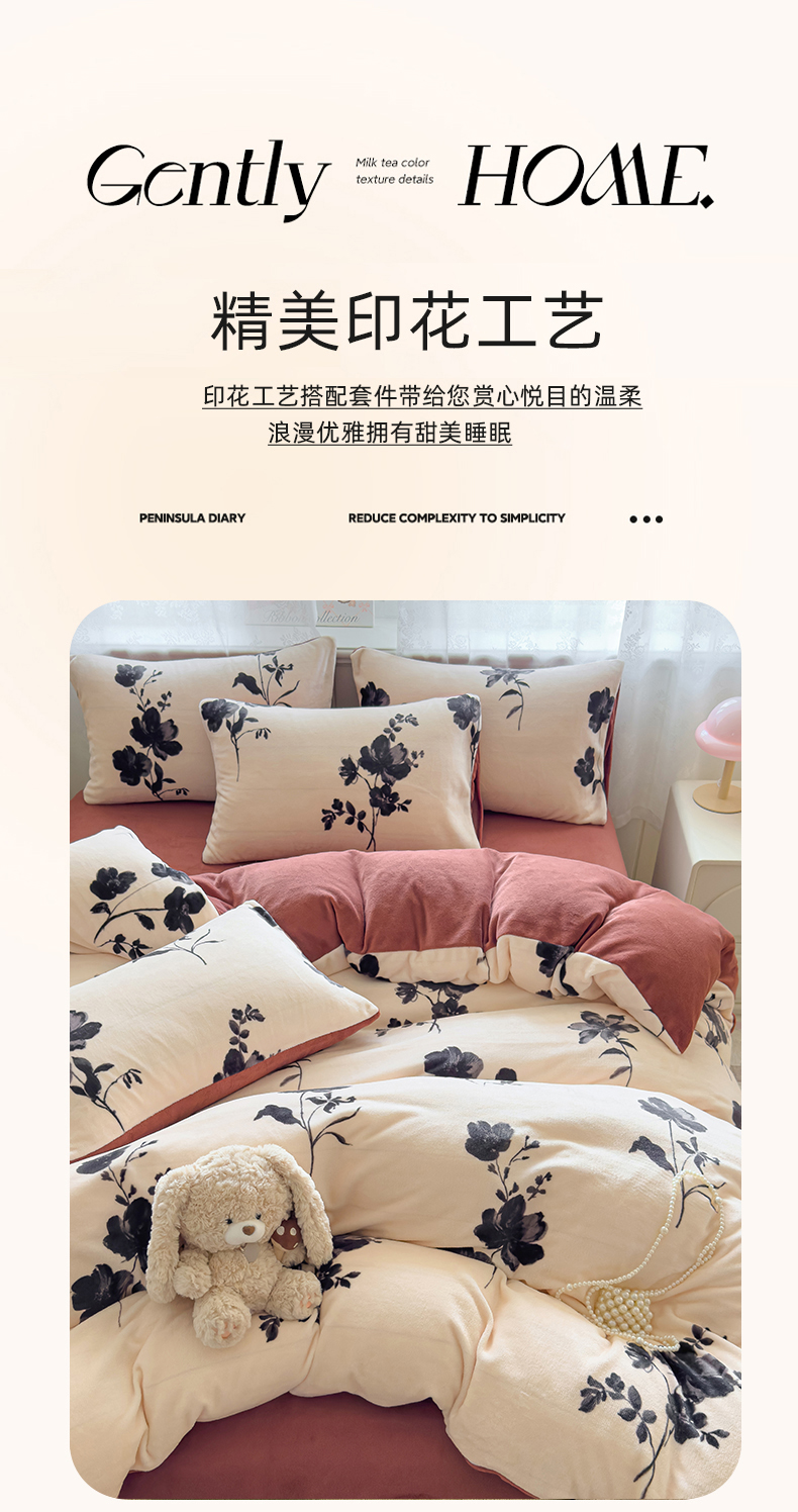 灿哈家纺 2025新款200g加厚款小清新牛奶绒印花四件套