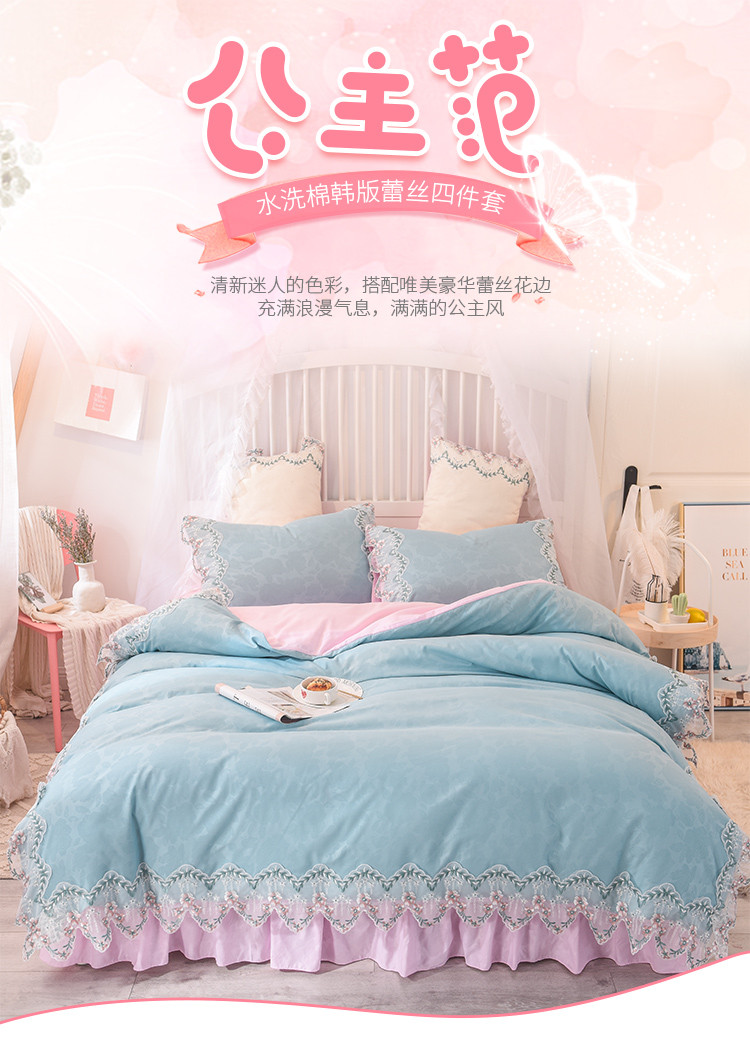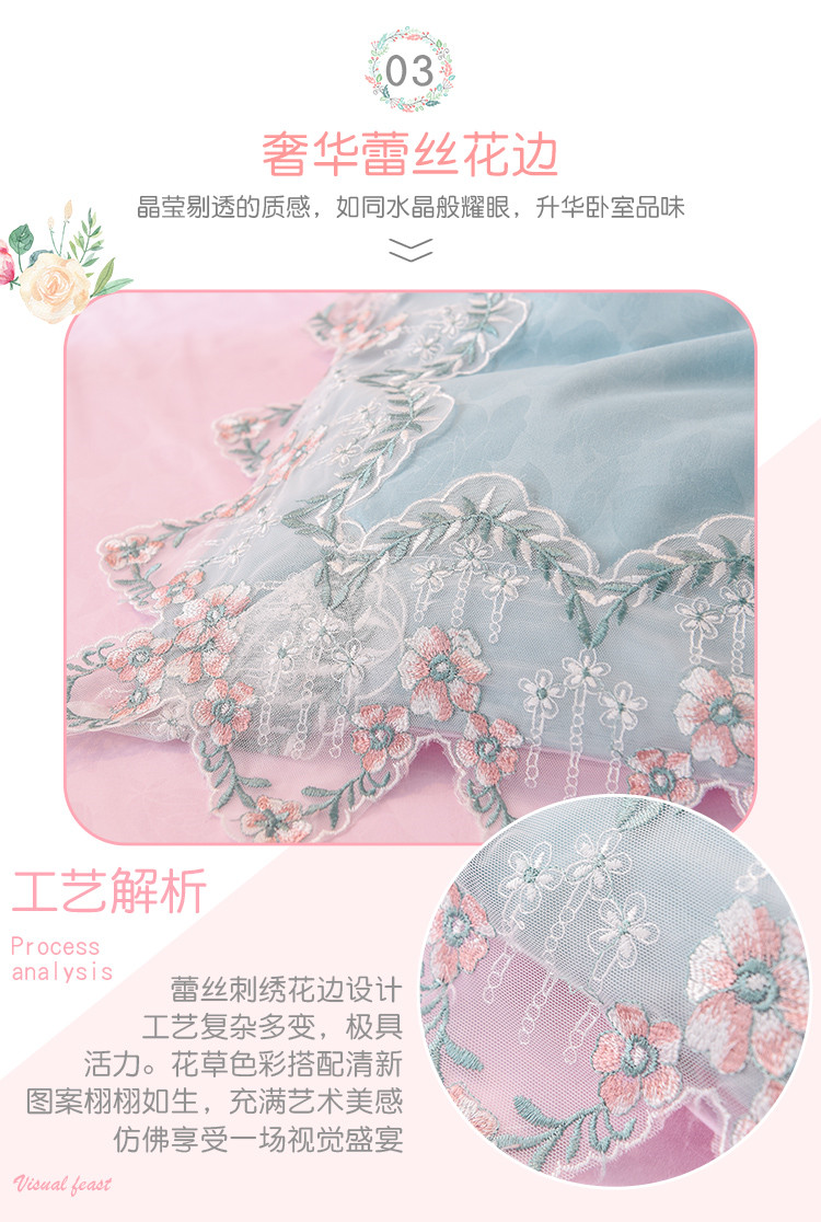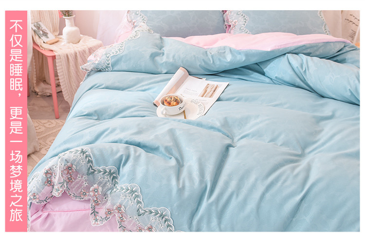 绒世界 2021新品玫瑰秘密系列四件套床裙款慕蓝+粉