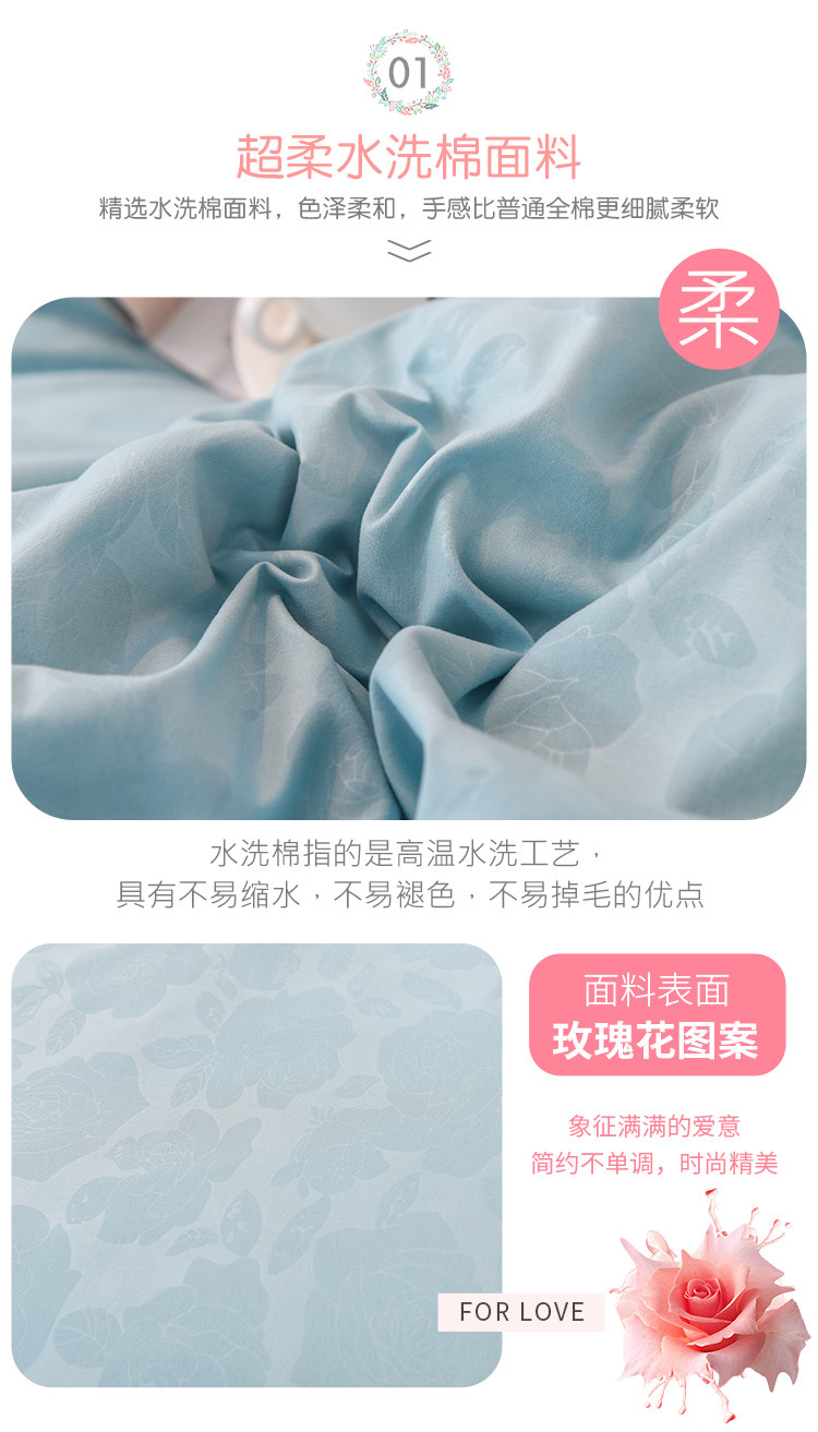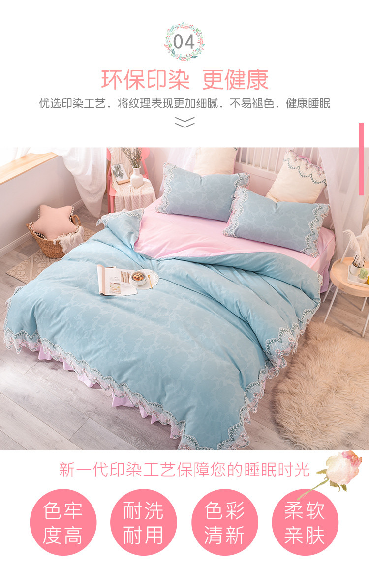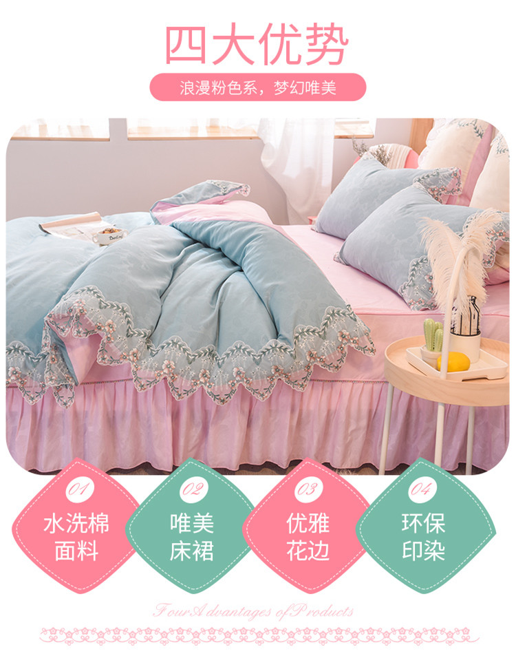 商品名称:绒世界 2021新品玫瑰秘密系列四件套床裙款慕蓝+粉